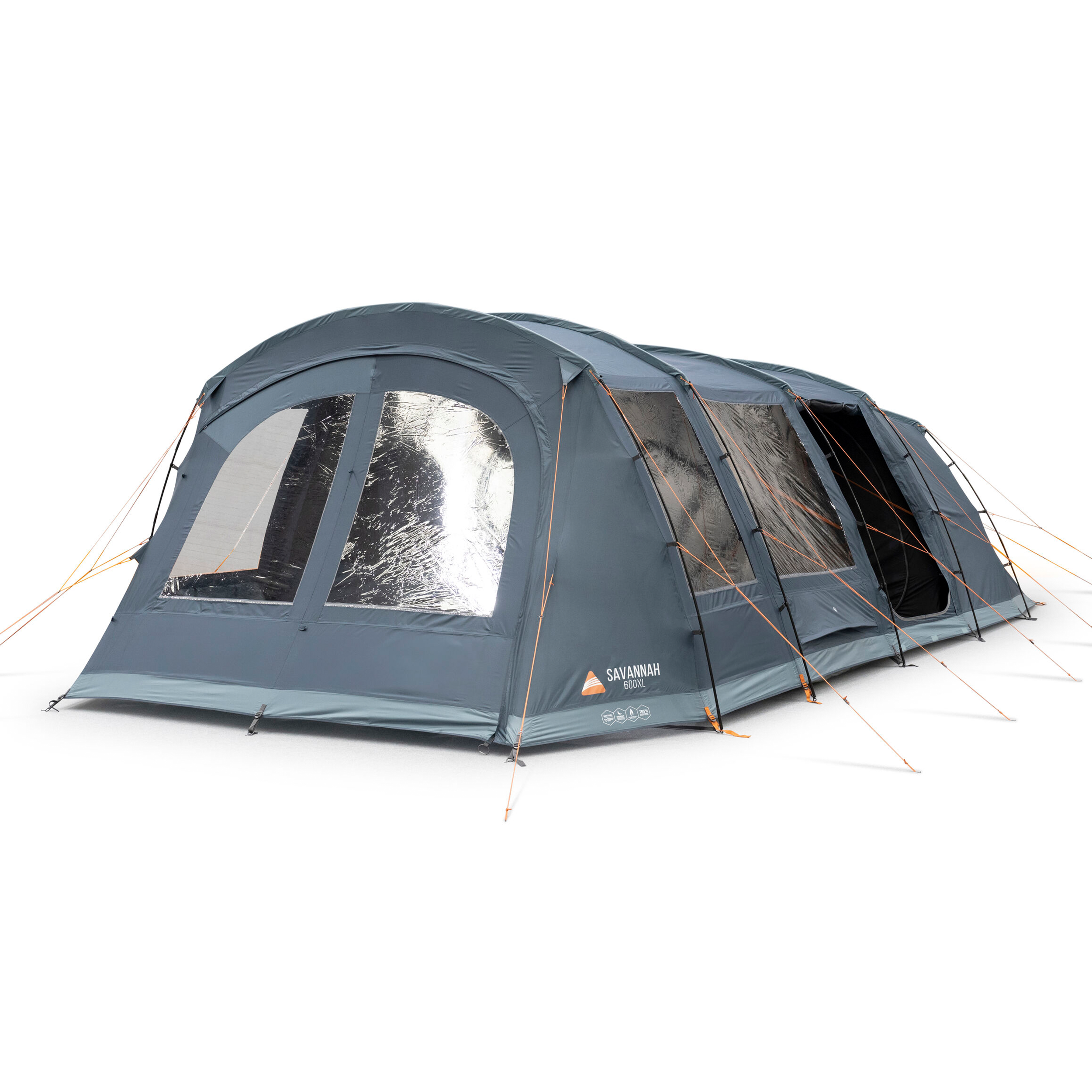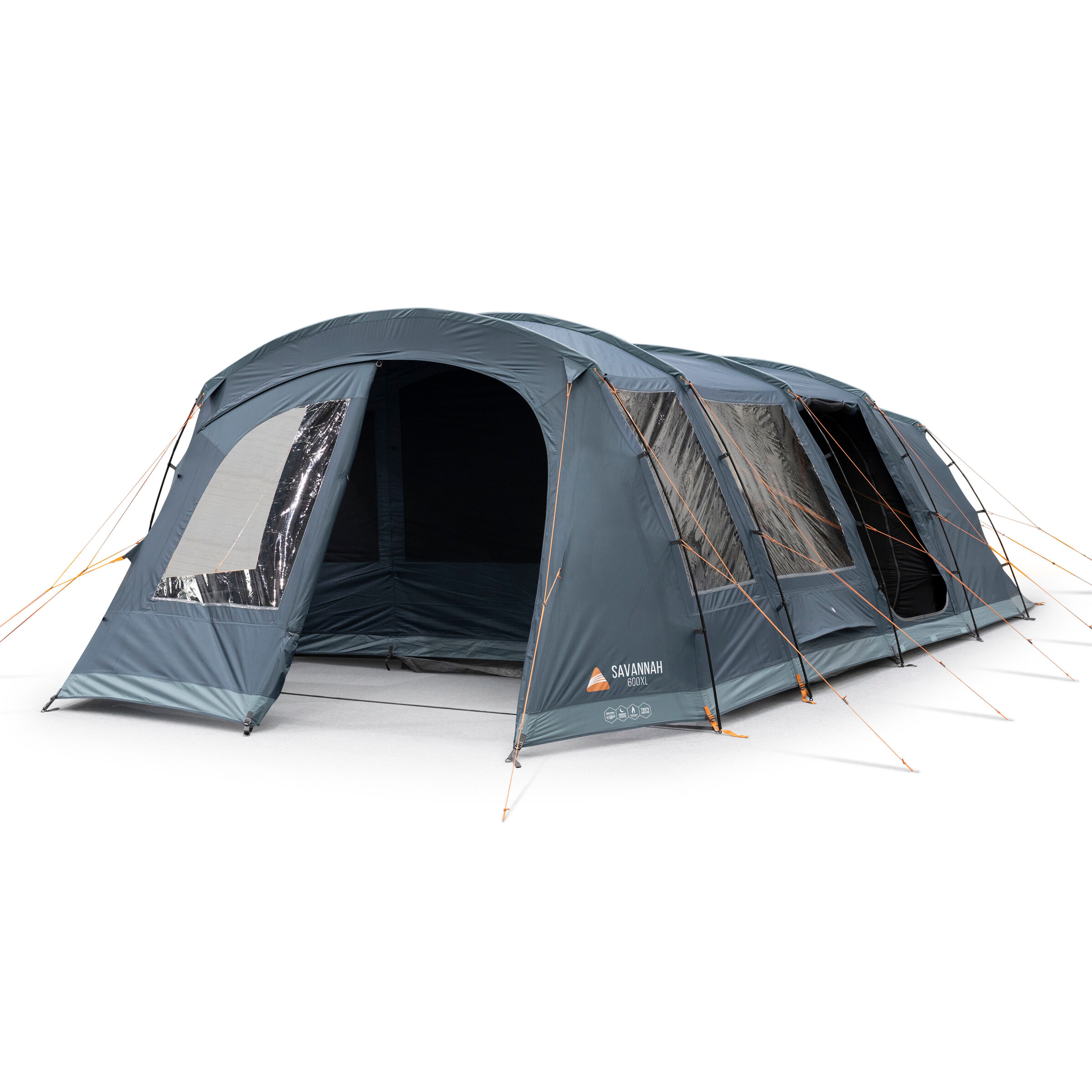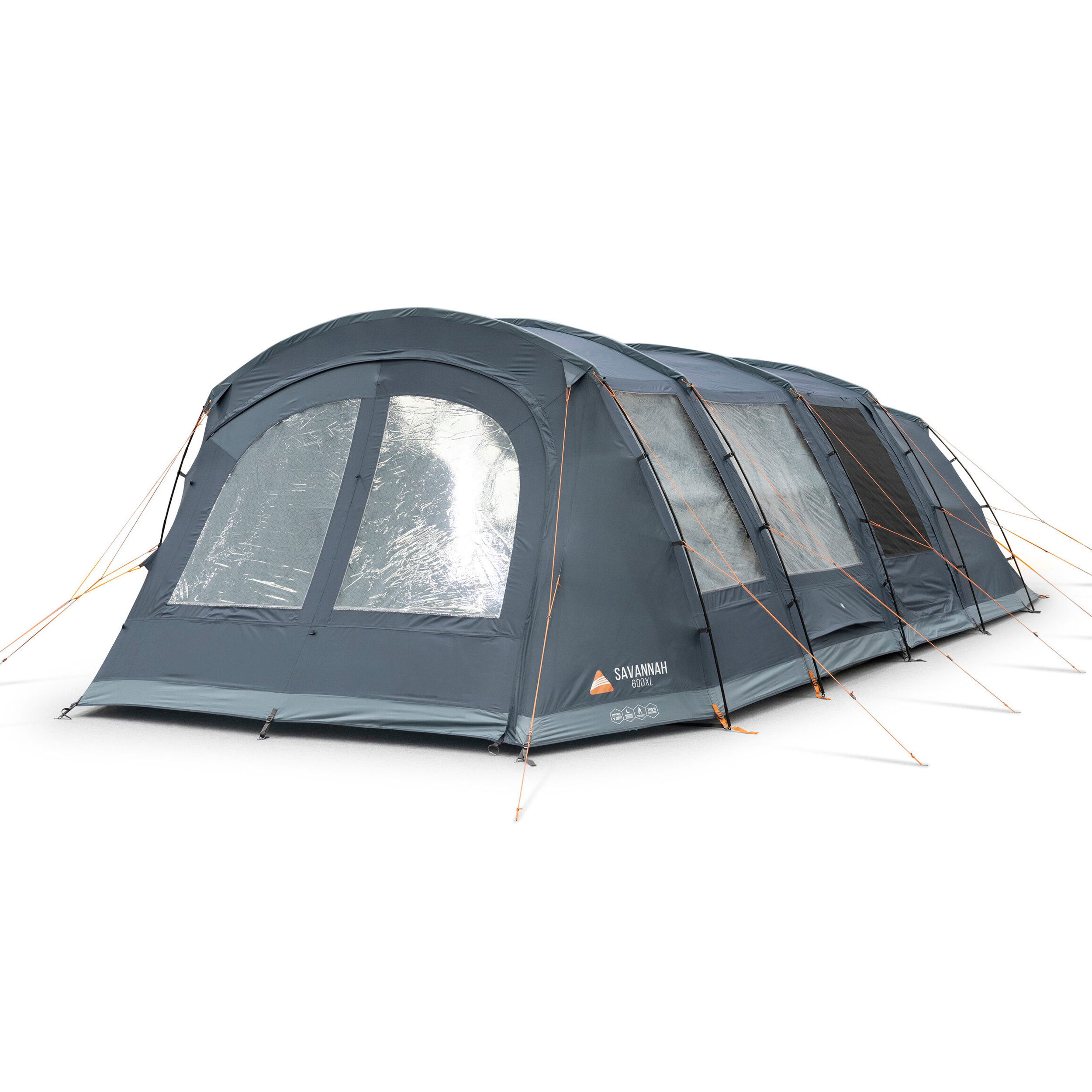 The Savannah 600XL is a 6-man poled tent with an integrated awning that provides additional living space. Dynamic Weave 100™ Fabric keeps pack size and weight low, while ensuring Vango quality and durability. The package includes a groundsheet protector which will protect and extend the life of your groundsheet and tent. The fully sewn-in groundsheet keeps out draughts and bugs, whilst ventilation can be managed using the mesh doors and AirZone panels. At over 2m tall, it is easy to stand-up and move around inside the tent. The large front door can be unzipped to the midpoint, or fully across, giving a good variety of options to suit different conditions and uses. Sleep-in longer thanks to Midnight Bedroom®, designed for a great and comfortable nights sleep. The large Diamond Clear windows let light pour into the living areas during the day and can be covered up with the roll-away toggled curtains at night.
