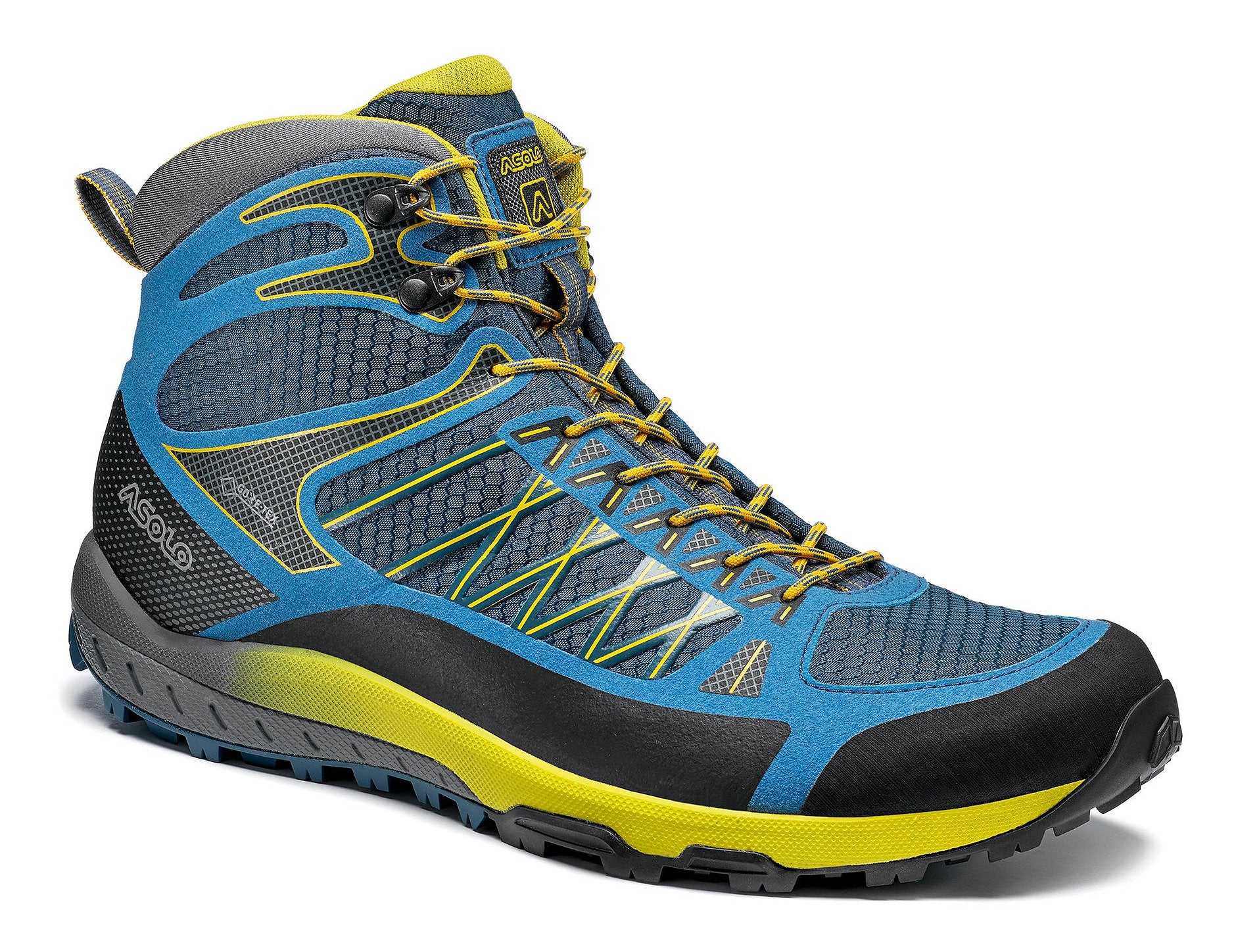 The Men's Grid GV Mid is the multi-sport shoe perfect for fast hiking and travelling. The upper is realized by a mix of polyester and microfiber which offer lightness, protection, comfort and performance. The midsole is engineered with a mono density eva which guarantee support, comfort and cushioning. The A-Sport outsole is born from the collaboration between Asolo and Vibram and uses the MegaGrip Compound that guarantees the maximum grip on wet and dried terrains. The holes lacing system is precise, fast and personalize lace up. The rubber toe cap gives an additional protection.