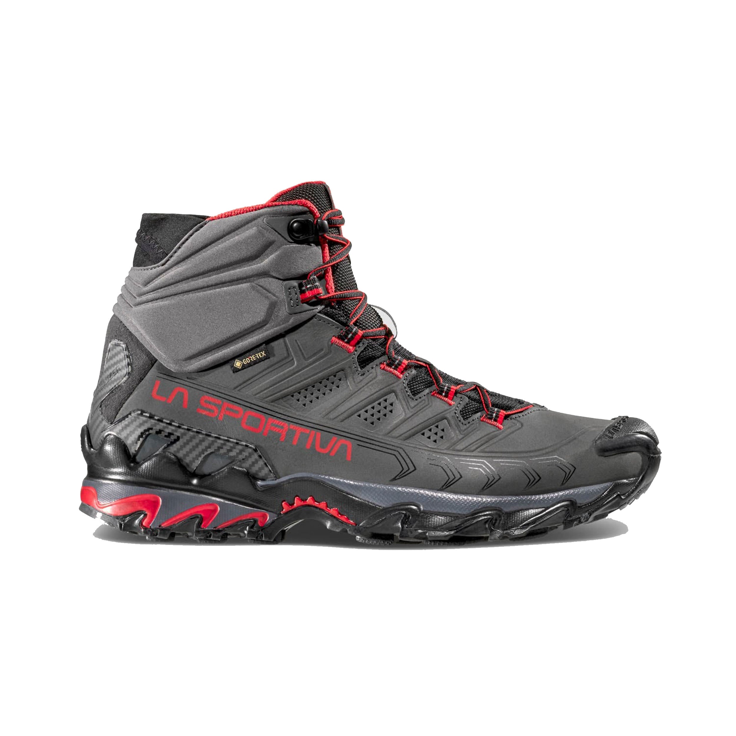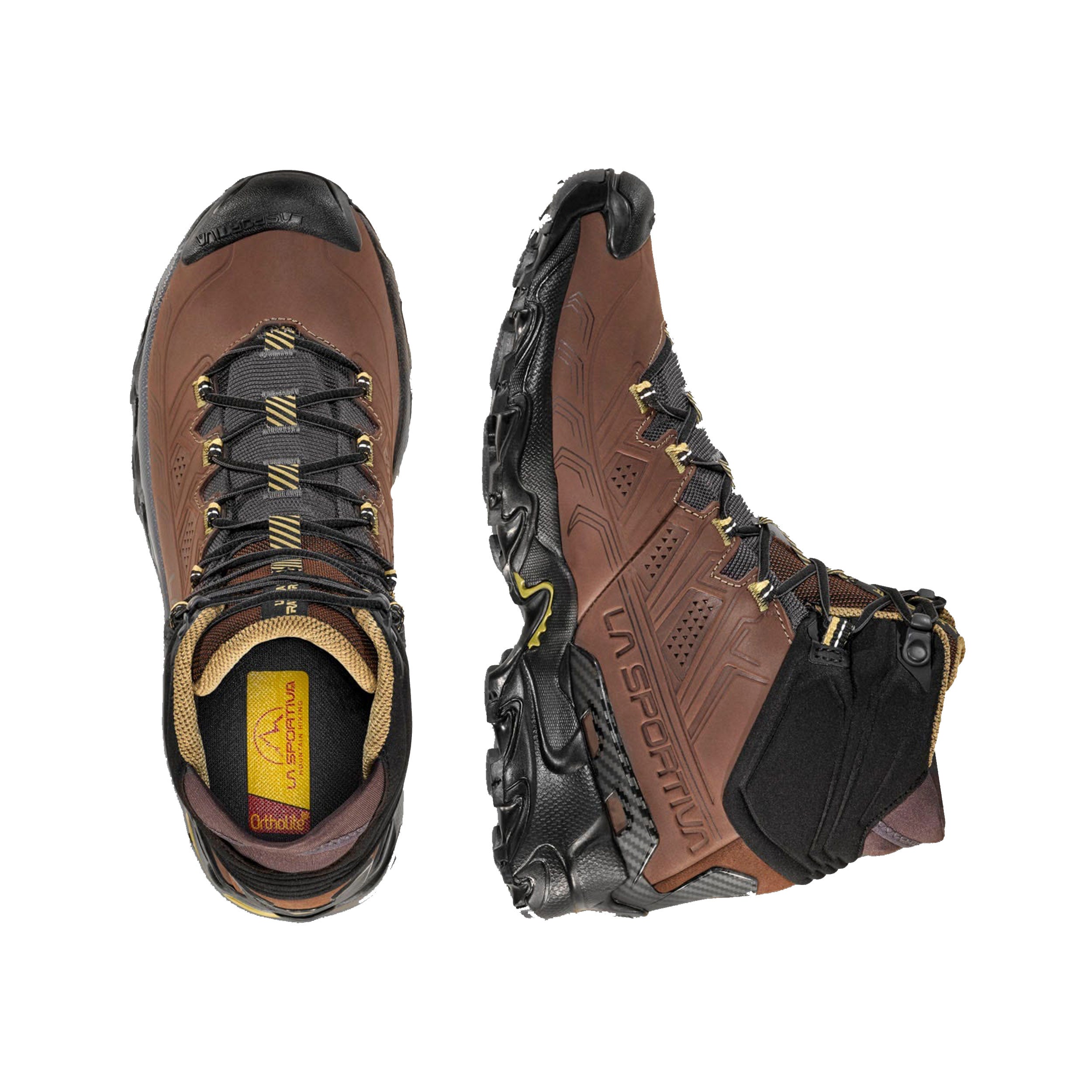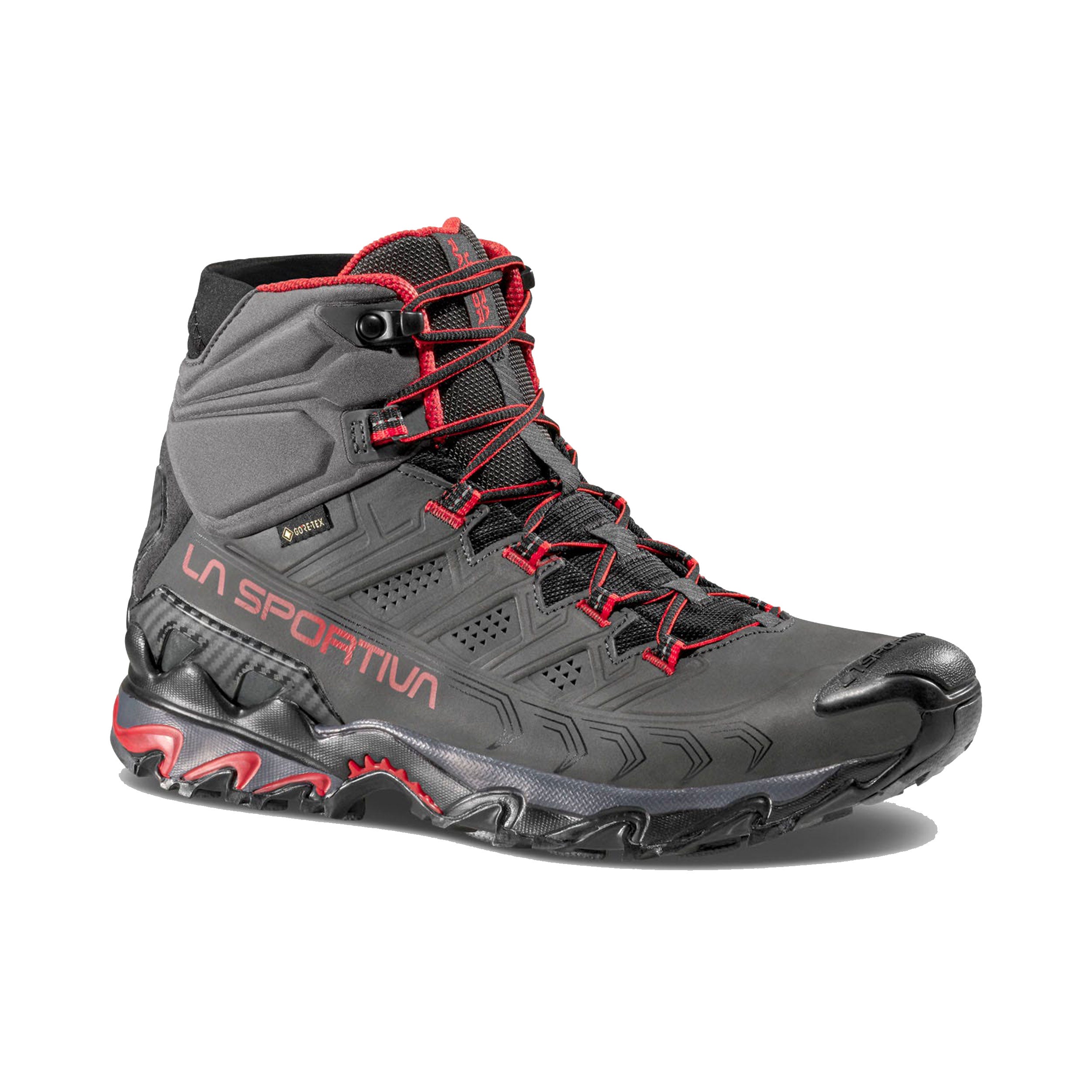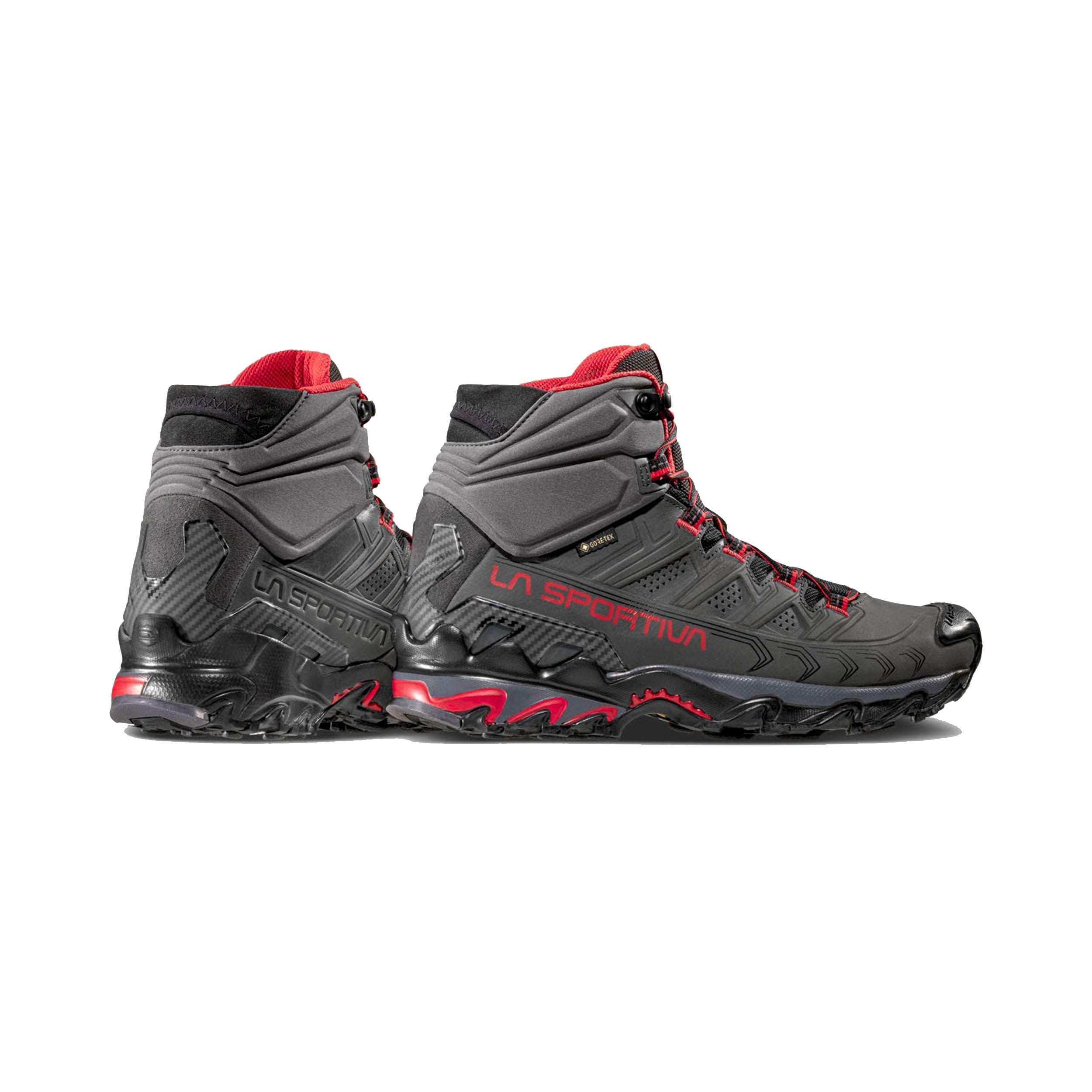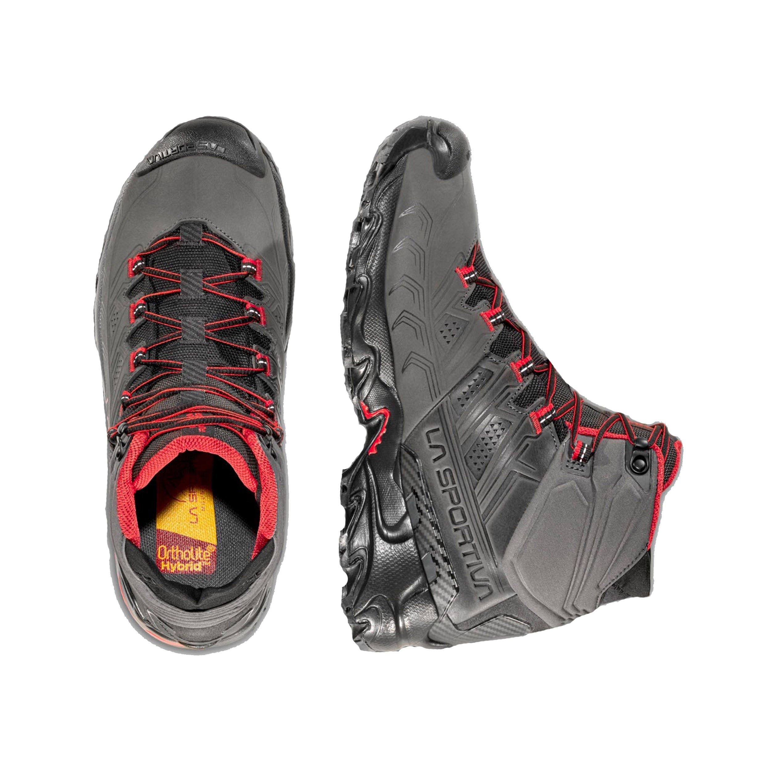 The Ultra Raptor II Mid Leather GTX is the leather upper version of the Ultra Raptor II Mid model, it is ideal for fast hiking and excursions with light loads. The Nubuck leather uppers are reinforced with compression lines that guarantee foot wrapping and high stability. Abrasion resistant and breathable, it is perfect for hiking use. Waterproof and breathable thanks to the GORE-TEX Extended Comfort membrane. The soft Comfort Collar protects the ankle from the entry of stones or mud and integrates the easy-fit spoiler for maximum ease of fit. The rear stabilizing heel allows perfect control on the crossbeams. Ultra Raptor II Mid Leather GTX is also available in a wide-fit comfort version dedicated to hikers with wide feet. The result is a shoe that can be worn for many consecutive hours and is suitable for off-road use on any type of terrain. Raptorize yourself, again.