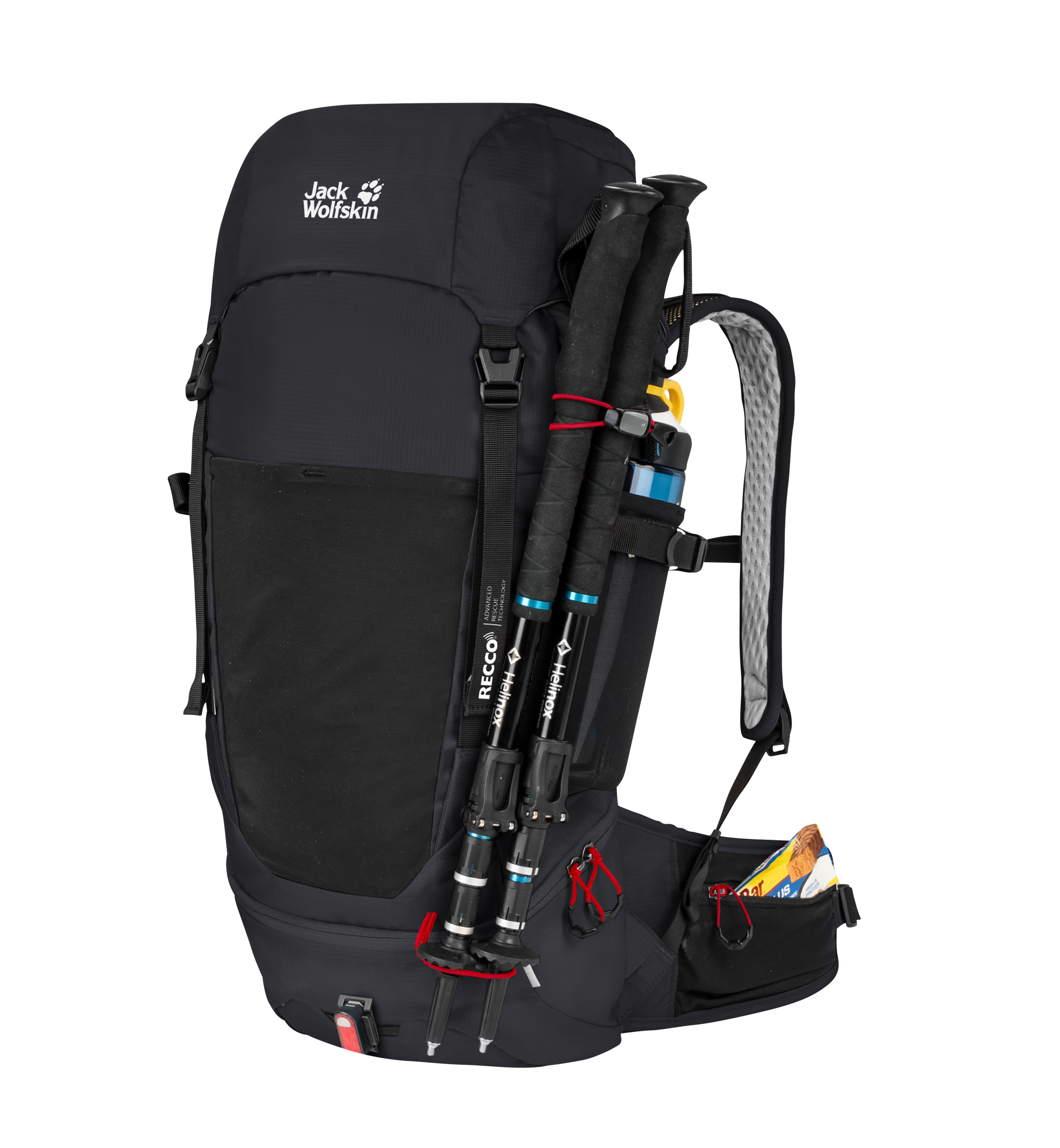 There's plenty of room for your kit in the main compartment and the two zipped pockets in the lid. The zipped internal divider can be used to create a separate space at the bottom of the pack for your sleeping bag. The two elasticated mesh side pockets keep your water bottles easily accessible. And you can stow your wet rain jacket in the mesh front pocket. The mesh pocket on the waist belt is the perfect place to keep small items handy.