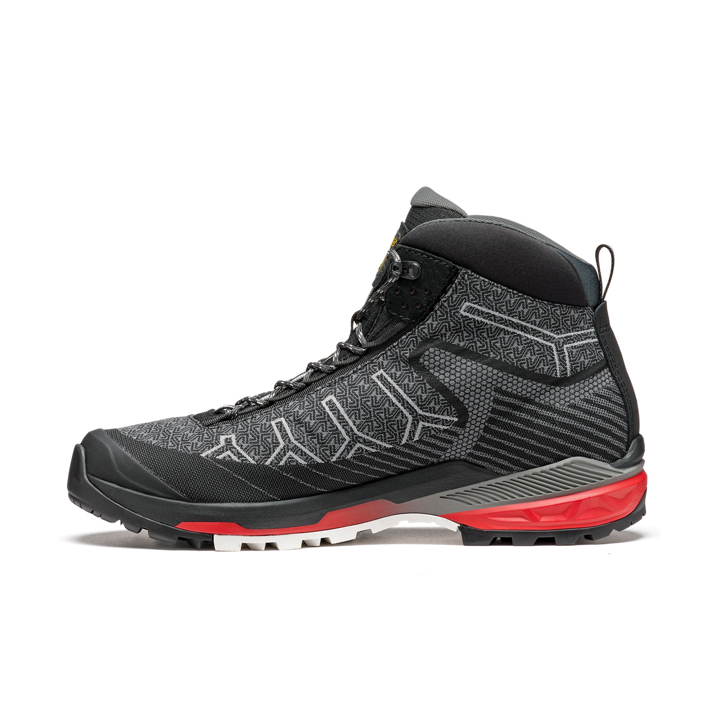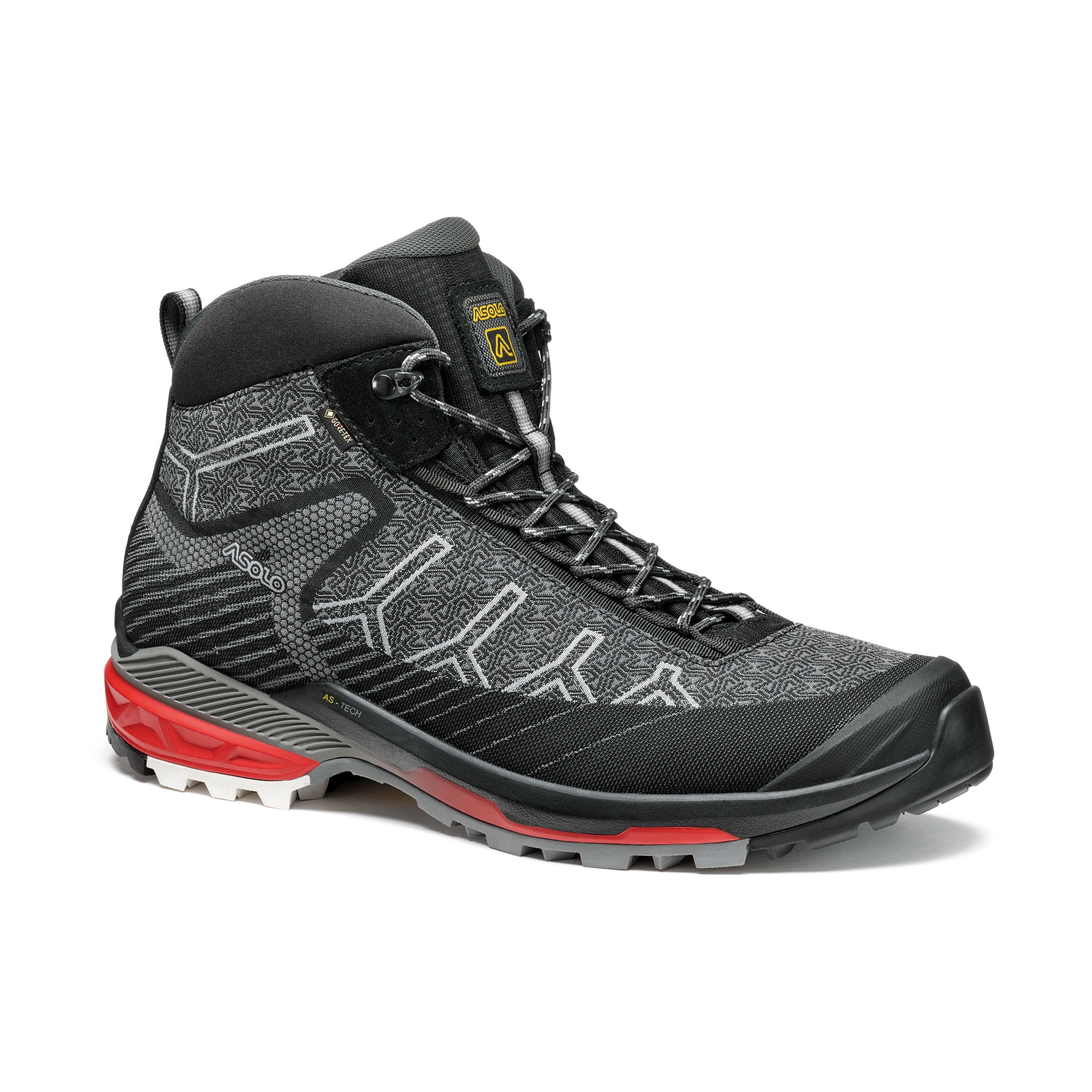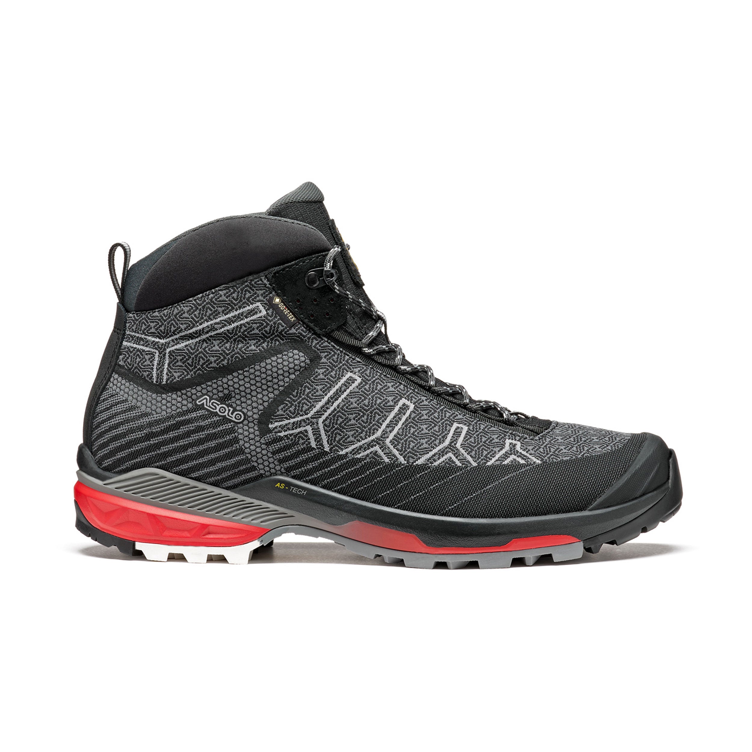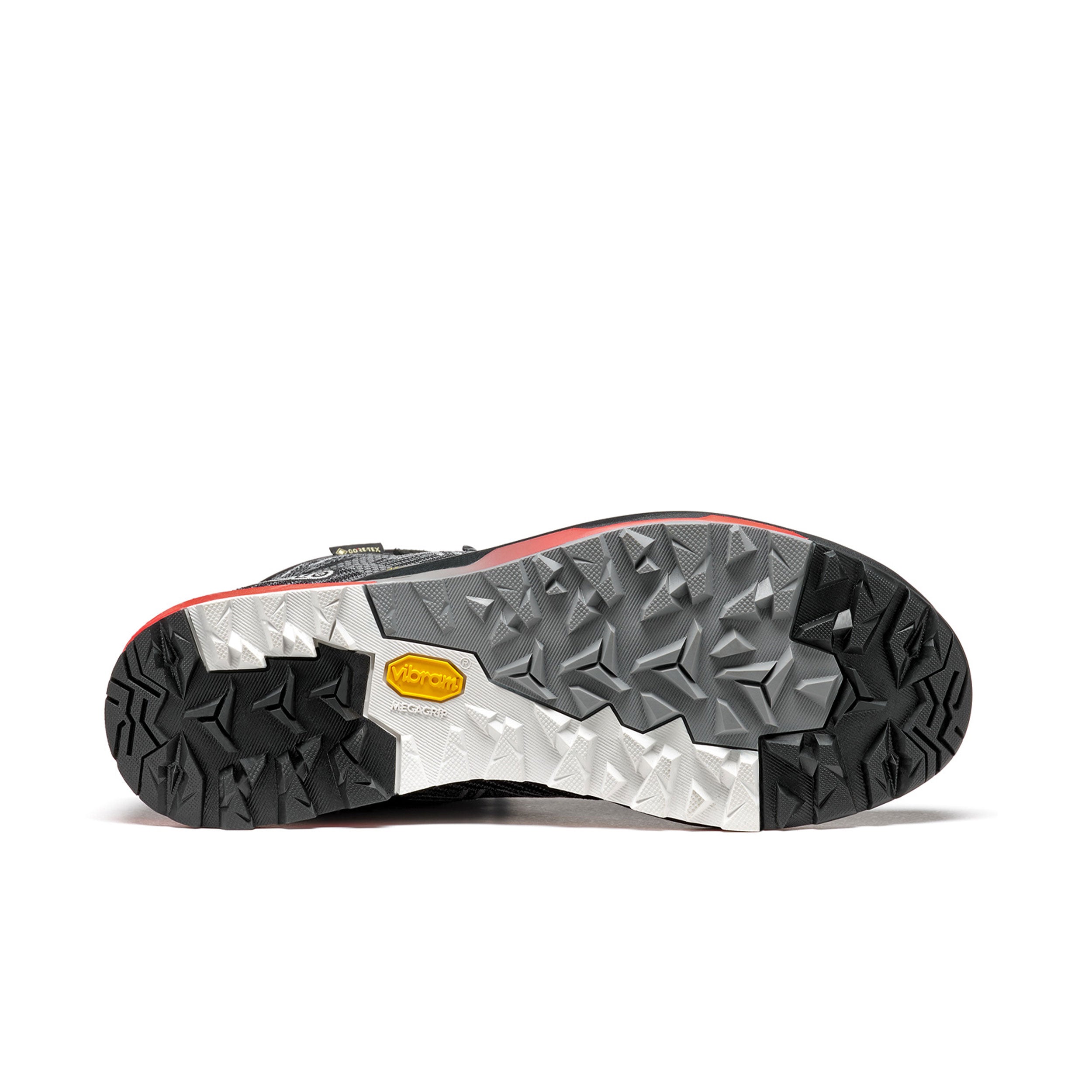 The Jacquard woven textile upper offers protection and comfort while the Gore-Tex Extended Comfort Footwear lining guarantees waterproofness and breathability. Dual density Eva midsole: the first density is harder for giving support and stability while the second is softer and assures comfort and cushioning. The Asolo/Vibram outsole has a self cleaning design and it uses the MegaGrip compound which gives amazing grip, traction and performance on wet and dried terrains. To complete the model a tpu cap for protection and a new lacing system for a fast and precise lace up.