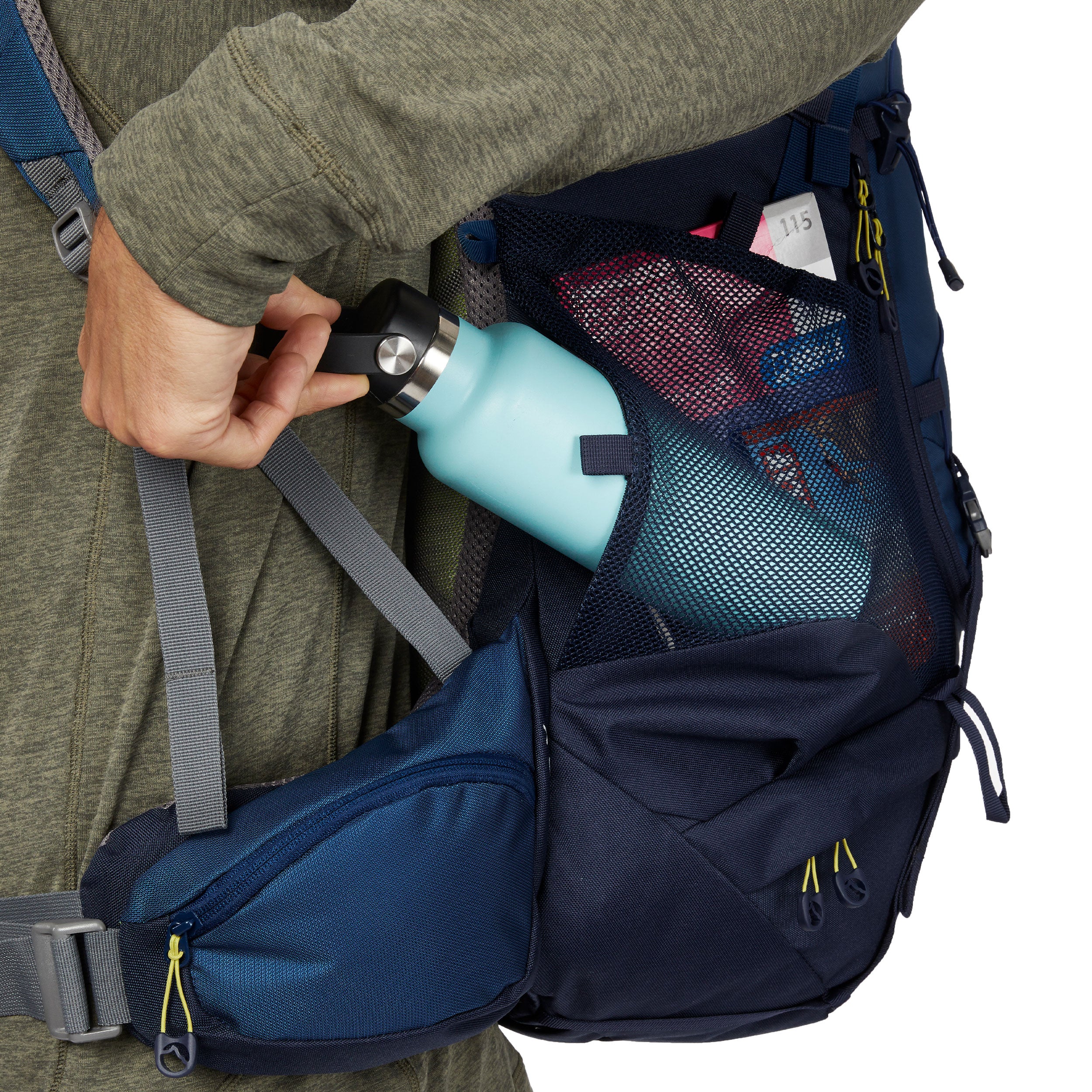 Stay hydrated and fueled on-the-go with the two dual side stretch mesh pockets designed for water bottles and snacks.