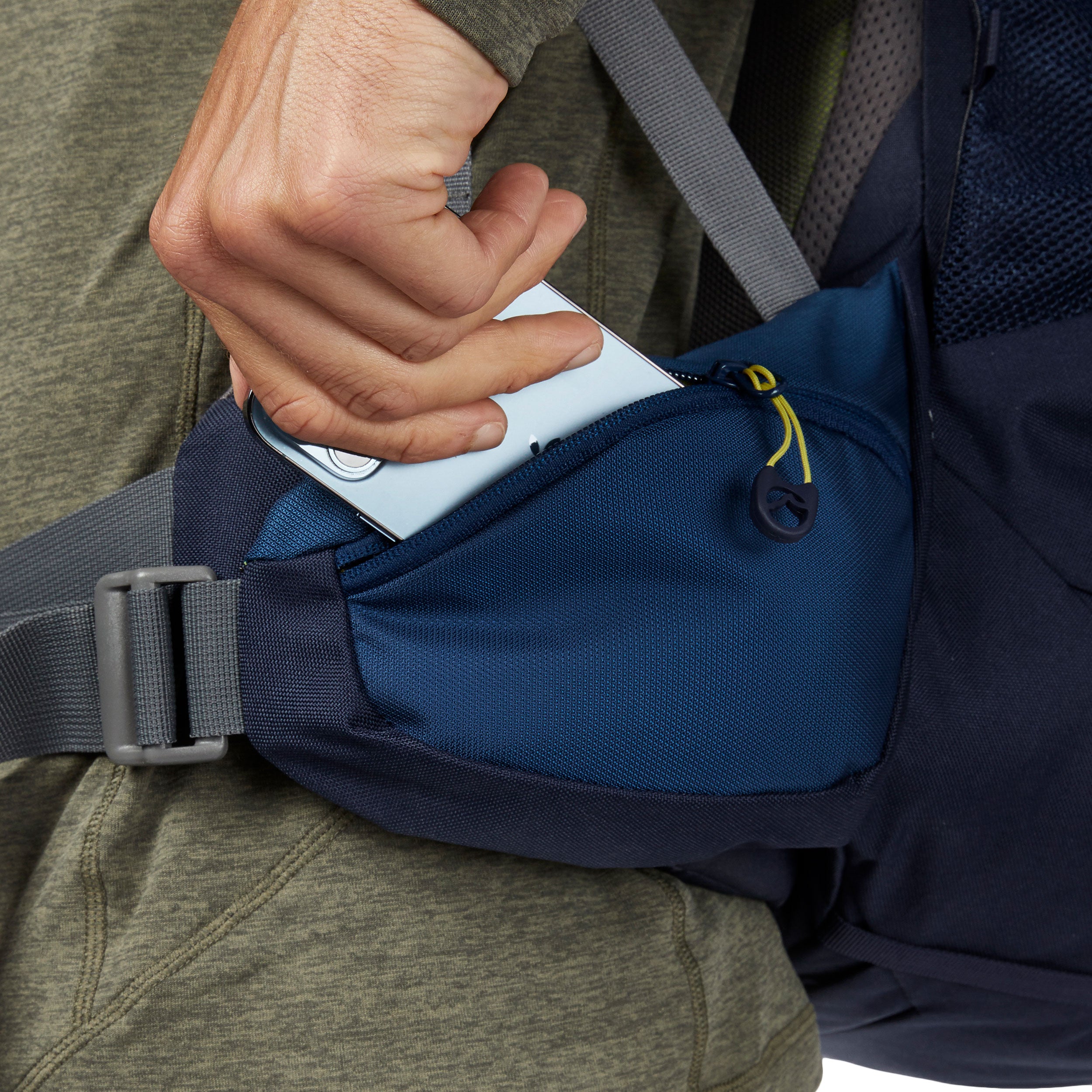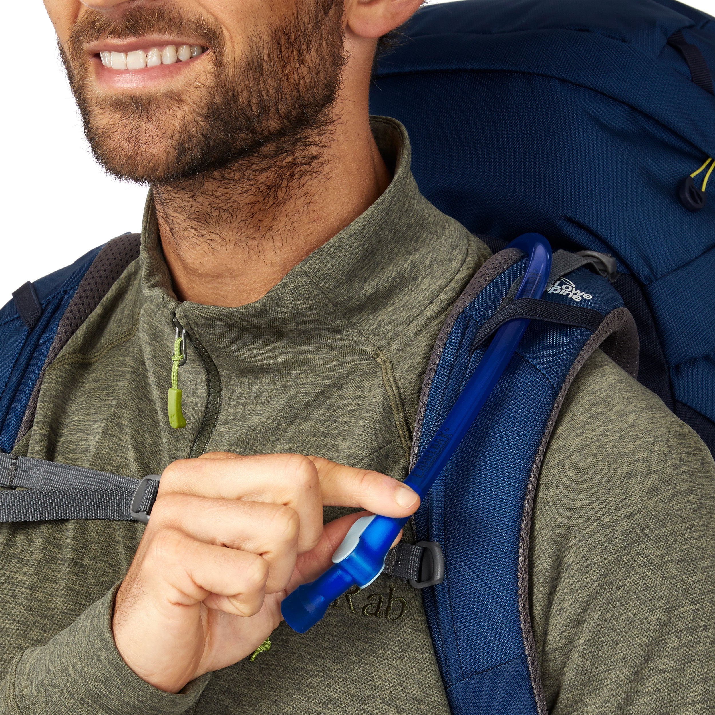 The pack offers easy access to all your kit using the zipped front and lower entry, with an internal divider panel to keep everything organised. The padded hip belt has easy-access pockets which are perfect for keeping snacks or a compass close to hand, while the elastic front bungee is the ideal place for stashing your wet gear. On extended trips you’ll be glad of the base and side compression, which you can cinch to secure your carry as supplies decrease. The pack is compatible with a 3L water bladder, allowing you to stay hydrated on the move, and features a detachable rain cover which can be quickly deployed when the weather rolls in.