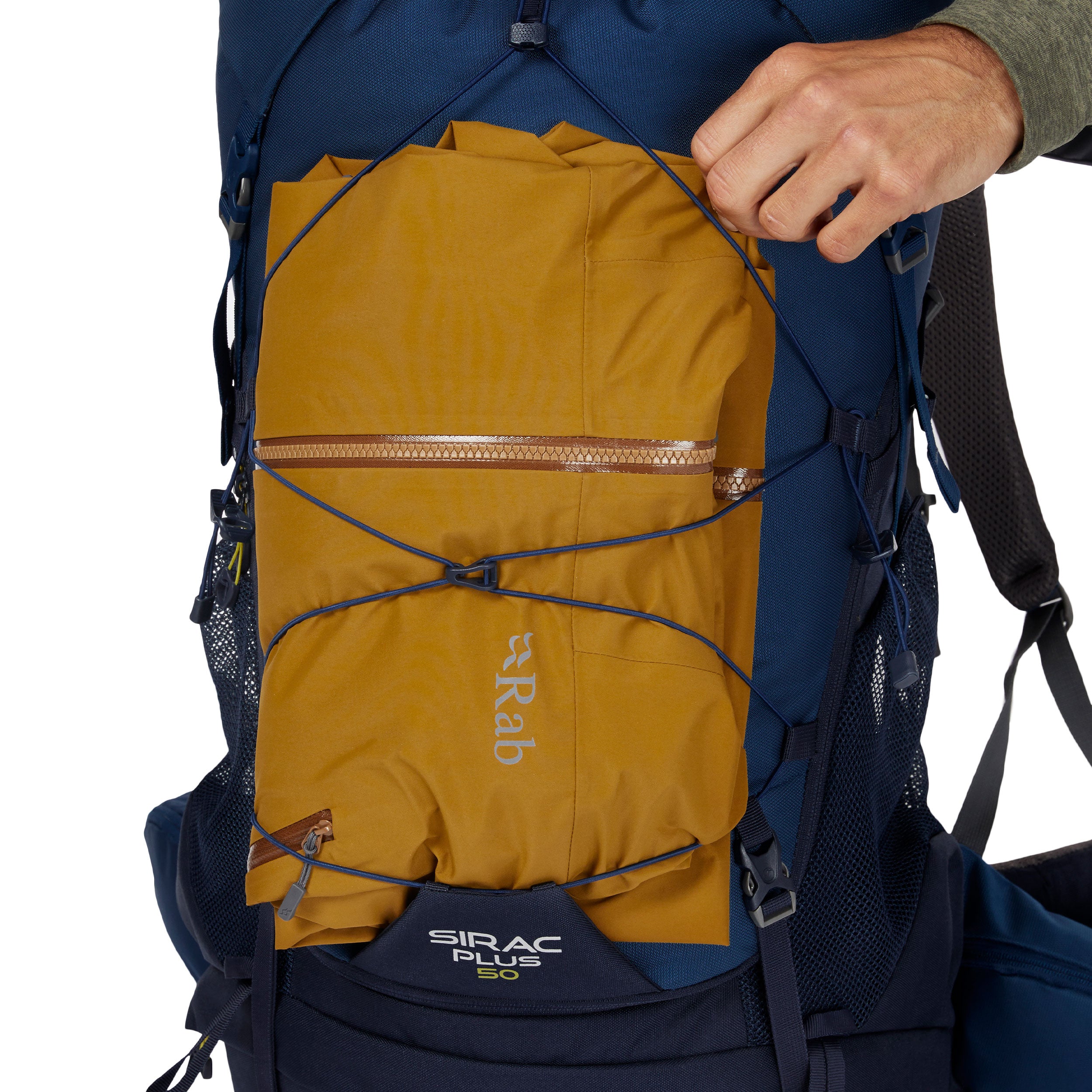 The pack offers easy access to all your kit using the zipped front and lower entry, with an internal divider panel to keep everything organised. The padded hip belt has easy-access pockets which are perfect for keeping snacks or a compass close to hand, while the elastic front bungee is the ideal place for stashing your wet gear. On extended trips you’ll be glad of the base and side compression, which you can cinch to secure your carry as supplies decrease.