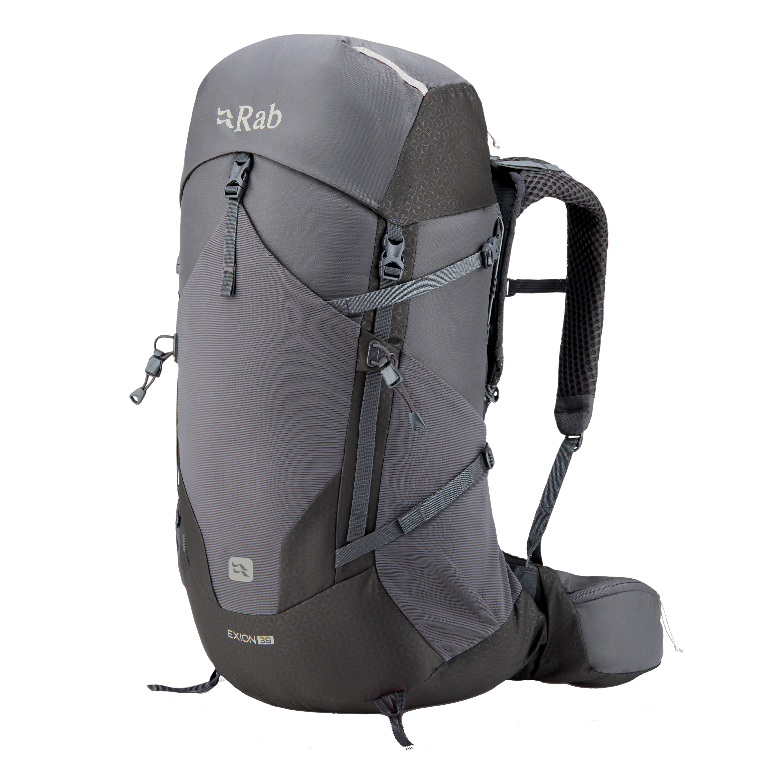The Exion 38 backpack offers a clean, versatile design for demanding day hikes, light overnights, and wild camping in any season. Its adjustable V-TRAX™ carry system features a thermoformed harness with dual-density foam for optimal back contact, targeted cushioning, and reduced bulk—resulting in lightweight performance, heavy-load capacity, and enduring comfort. Enhanced by an embossed pattern and practical ergonomics, it's perfect for extended trails.