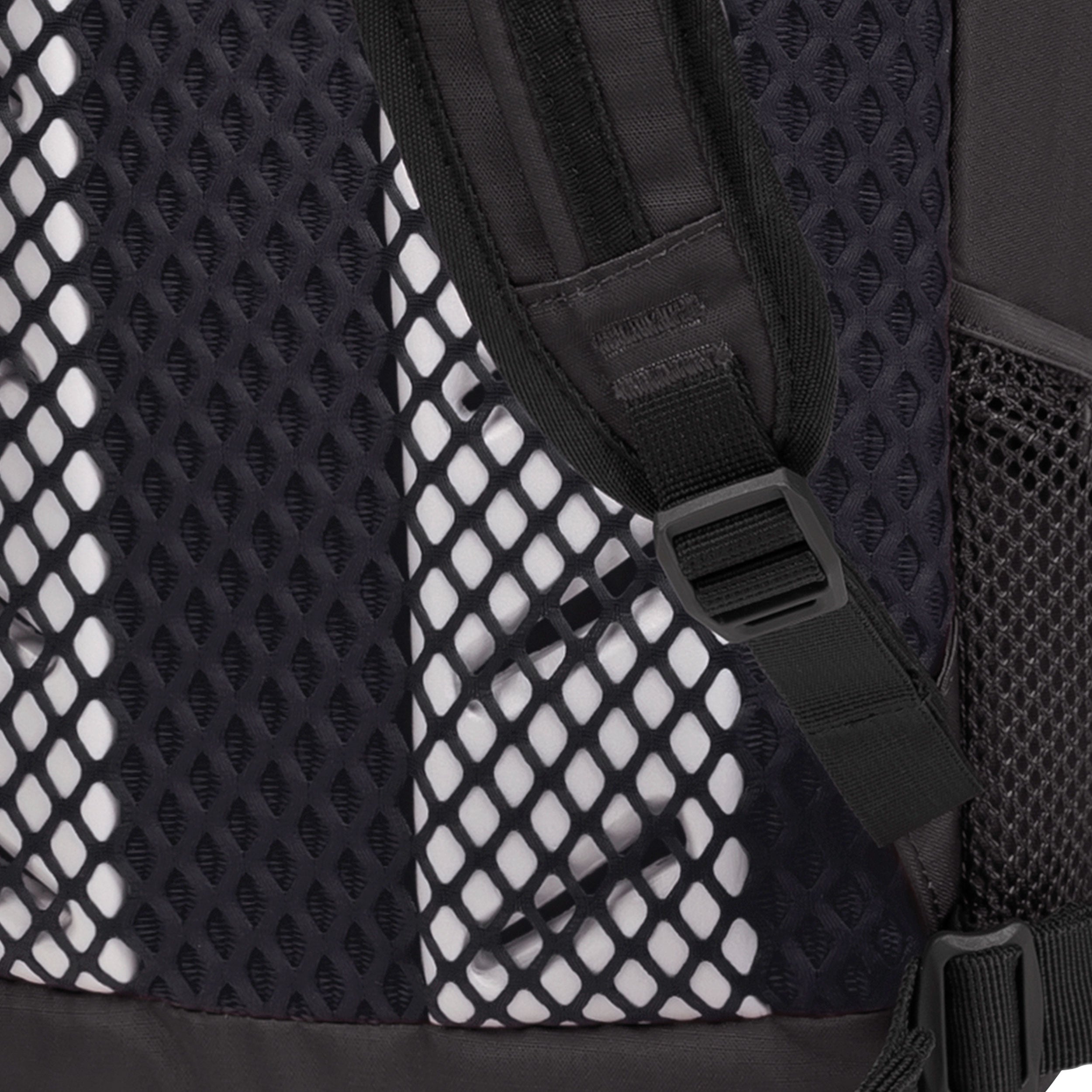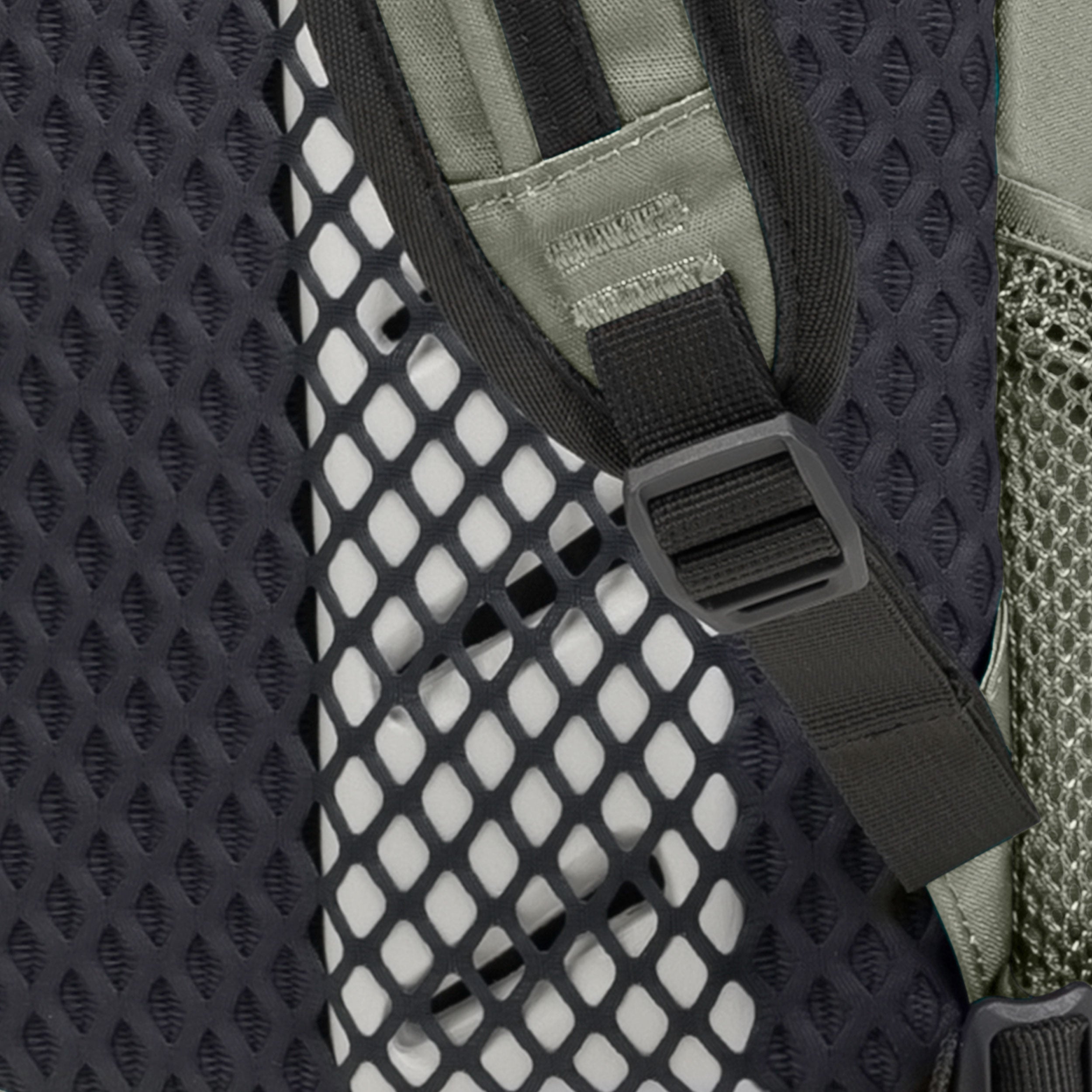 The AEROSHAPE CORE back system offers a close-fitting, highly ventilated design, featuring an innovative one-piece construction that minimizes production waste. Furthermore, both the mesh fabric and main material, along with the lining, are made from fully recycled materials, reflecting a strong commitment to sustainability.