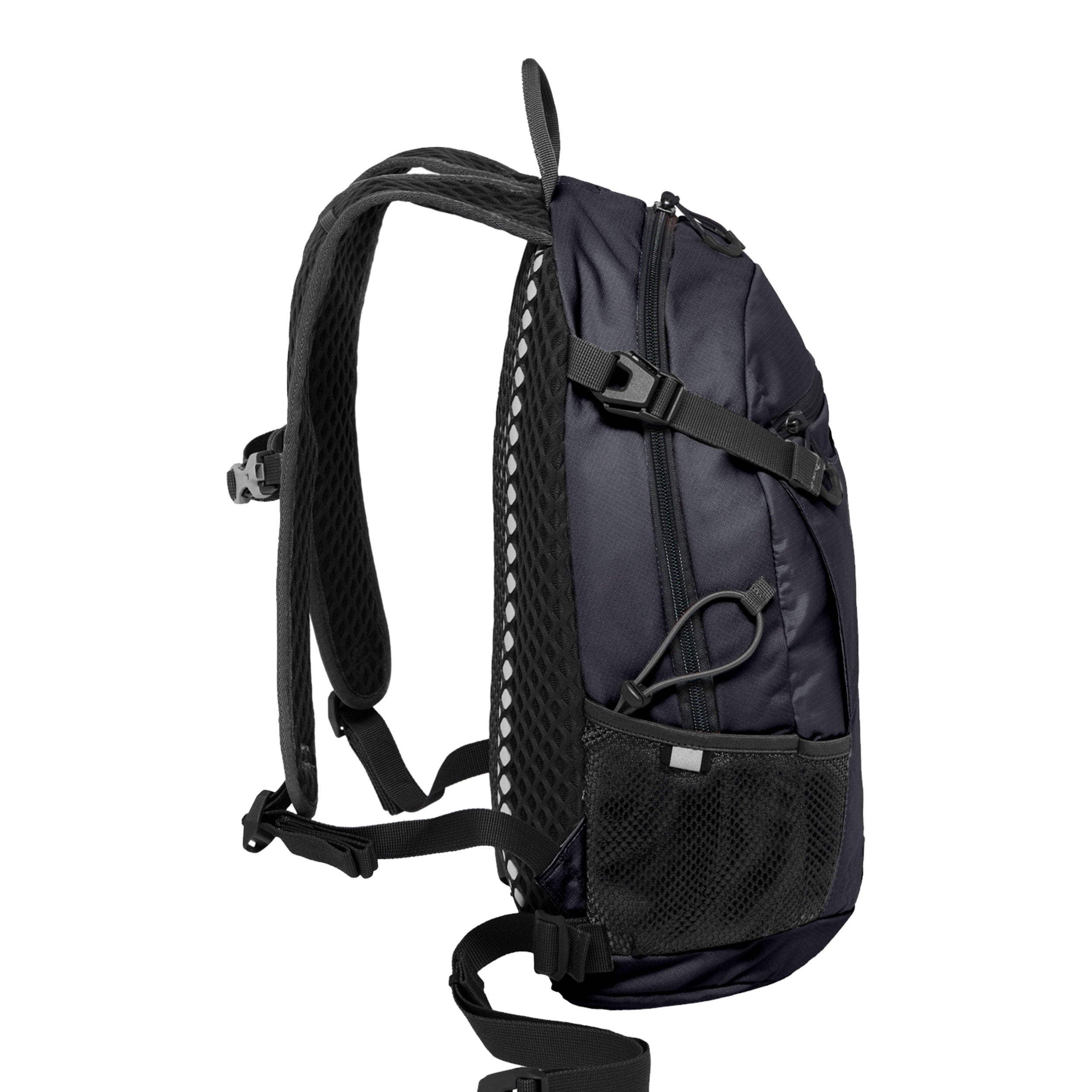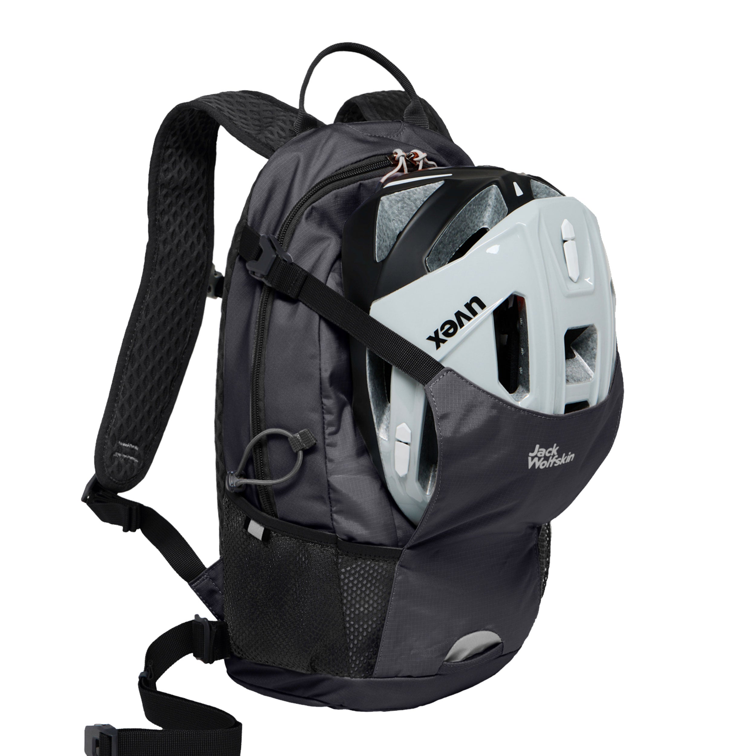 The VELOCITY 12L pack is a versatile and eco-friendly choice for hiking, biking, and multi-sports, crafted from recycled materials with a thoughtfully designed back system. Its AEROSHAPE CORE back system sits close to the body, providing excellent ventilation through a central ventilation channel and air vents in the back padding, keeping you cool on the move. The innovative one-piece construction minimizes production waste, and both the mesh fabric and lining are fully recycled. Ergonomically shaped shoulder straps add to the carrying comfort, while bike-specific features, such as a helmet carrier, LED light attachment, and integrated rain cover, enhance functionality. Additional mesh side pockets offer convenient storage for a water bottle and energy bars.