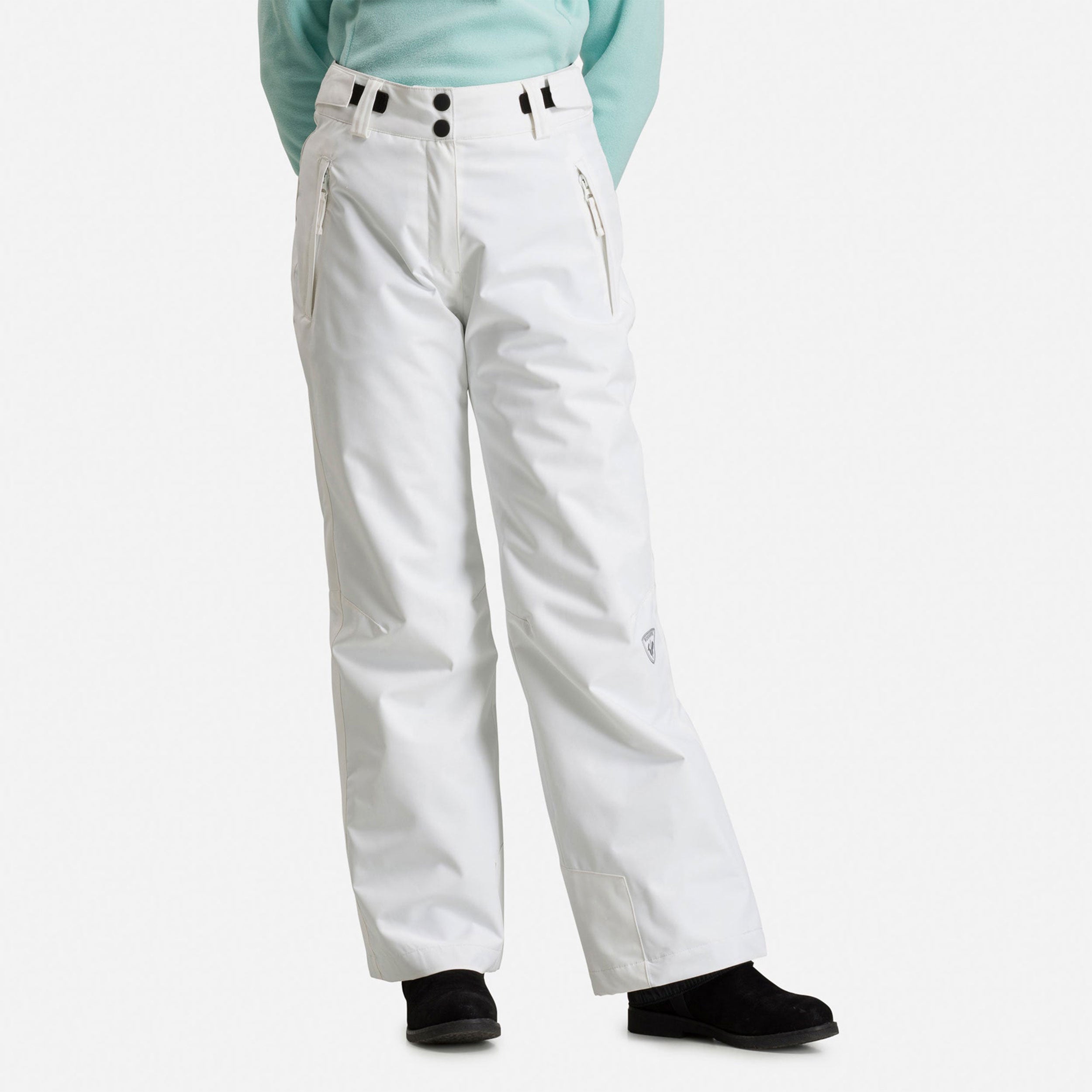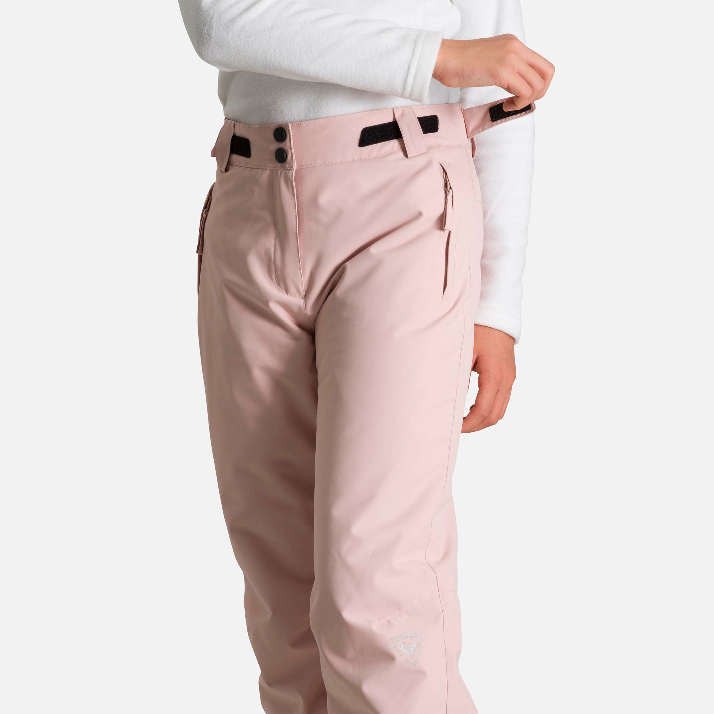 Adventure on the mountain starts with staying warm and dry. The girls' Rossignol Ski Pants feature a waterproof-breathable build to shed stormy conditions and lightweight insulation throughout for added warmth. Built-in gaiters seal out snow, and reinforced cuffs stand up to abuse from ski edges. An extra fleece layer in the seat adds insulation on the chairlift, while a hook-and-loop-adjustable waist helps dial in the fit.
