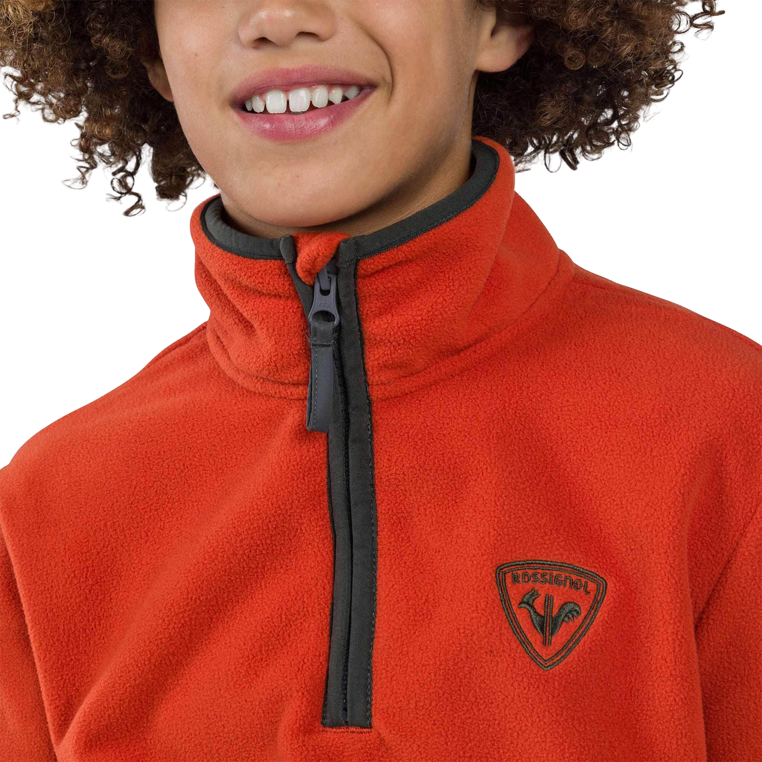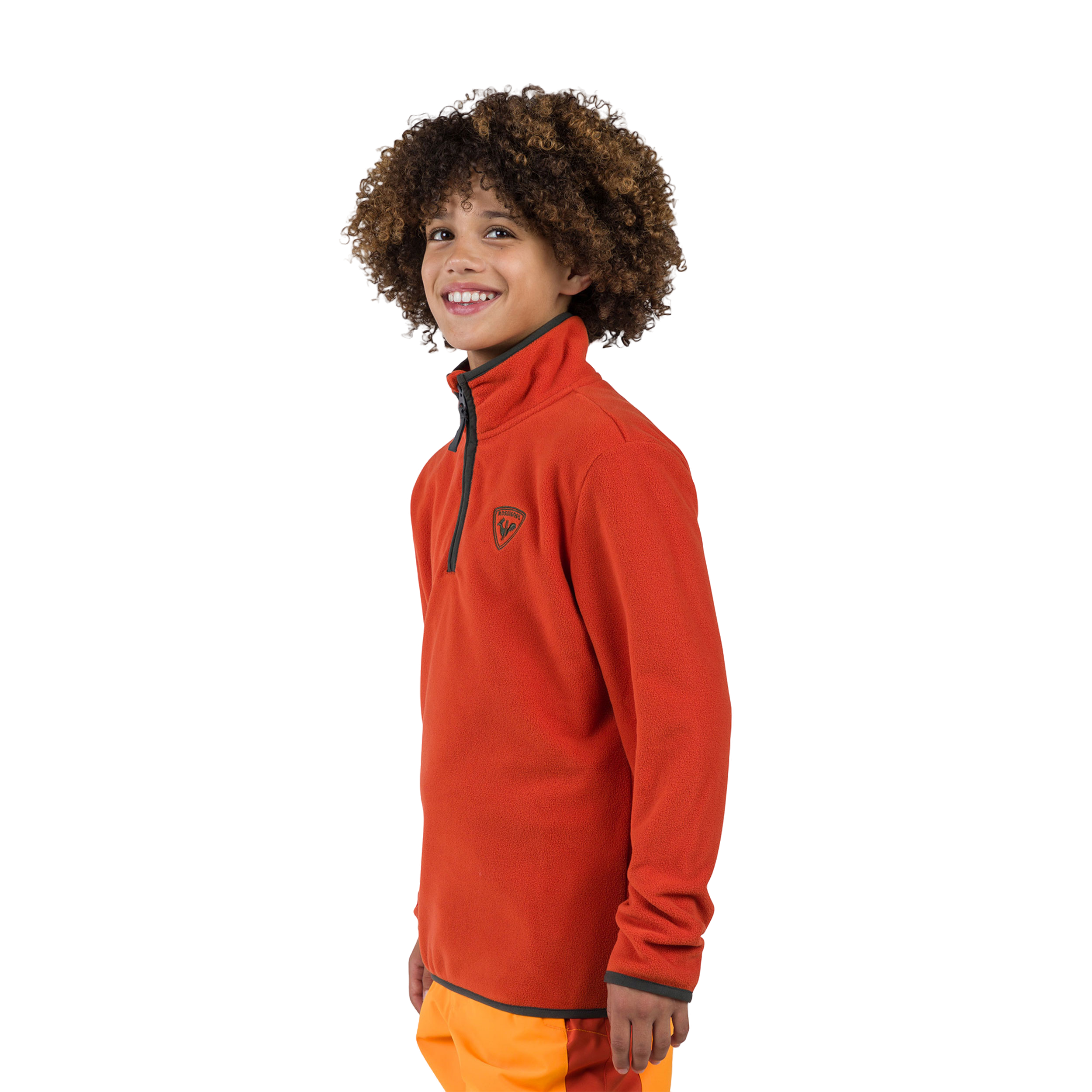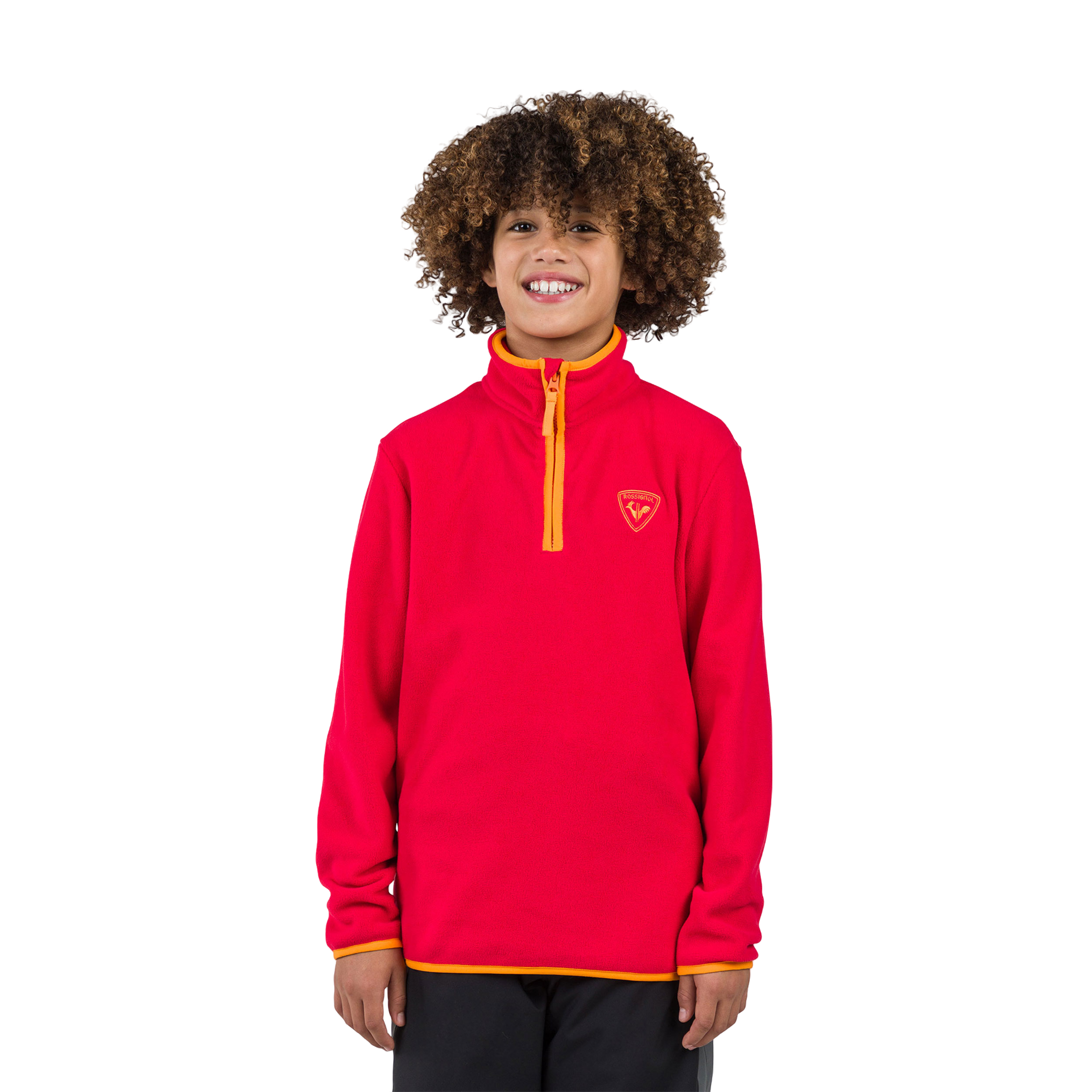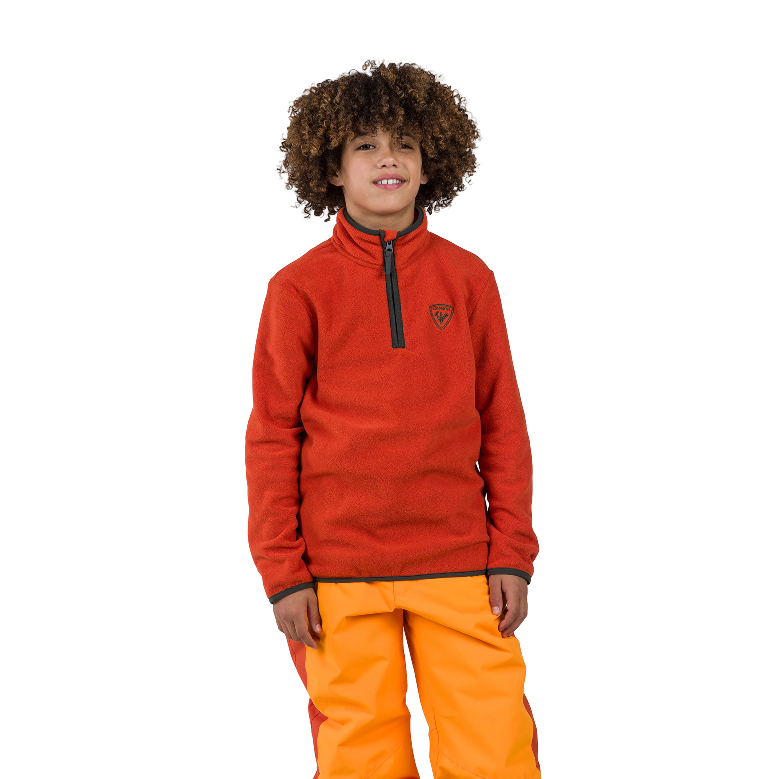 Layering helps kids stay warm and focused on skiing. The juniors' Rossignol Strawpile Half-Zip Fleece top works as a mid-layer under a ski jacket on the mountain and a versatile fleece for the everyday. It offers the familiar warmth of fleece and all-around versatility for active kids. Pair it with the Strawpile ski jacket for a complete color-matched look.