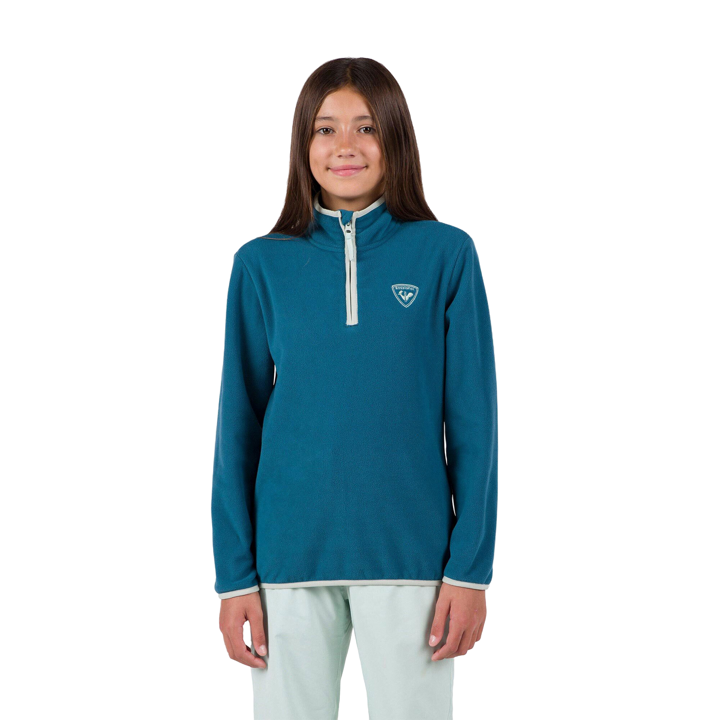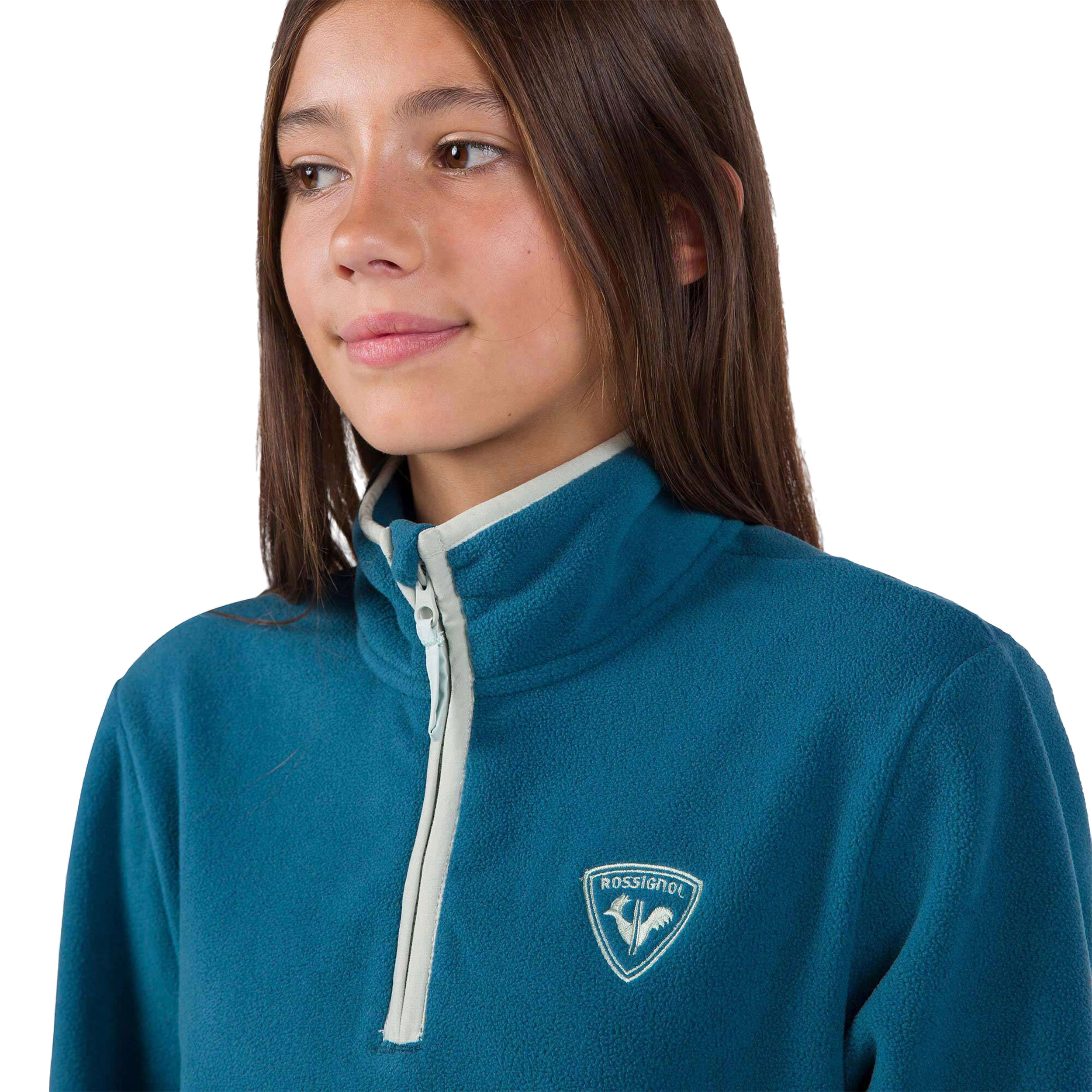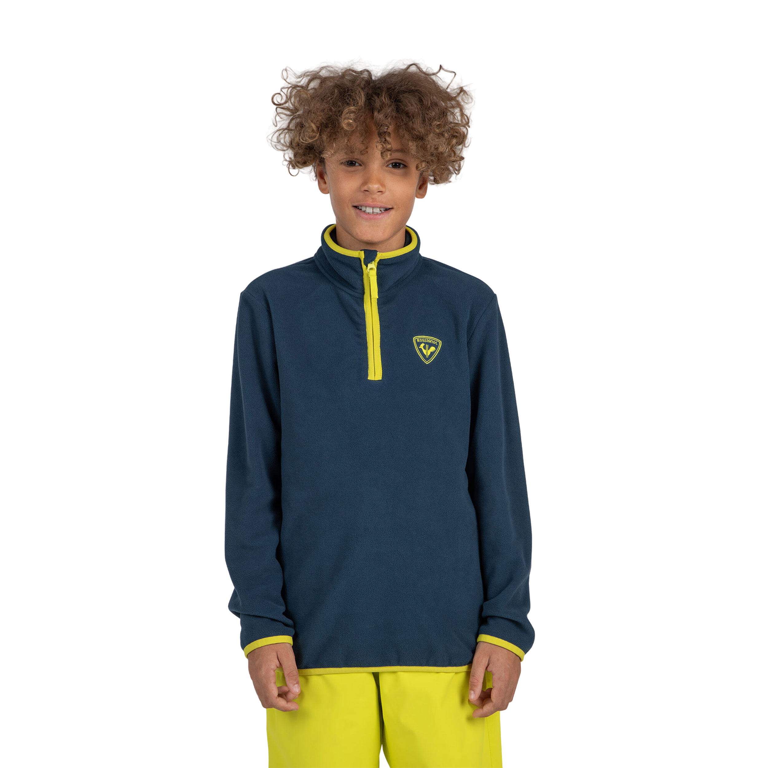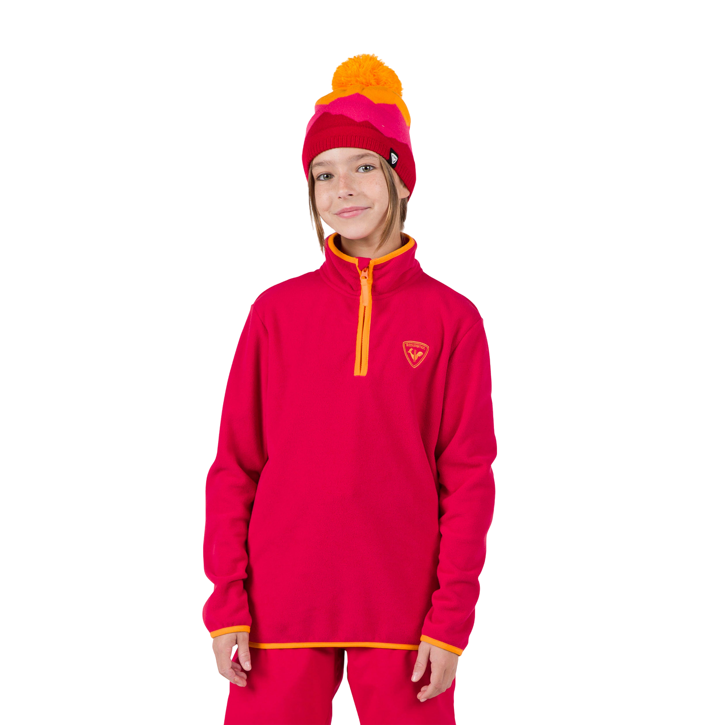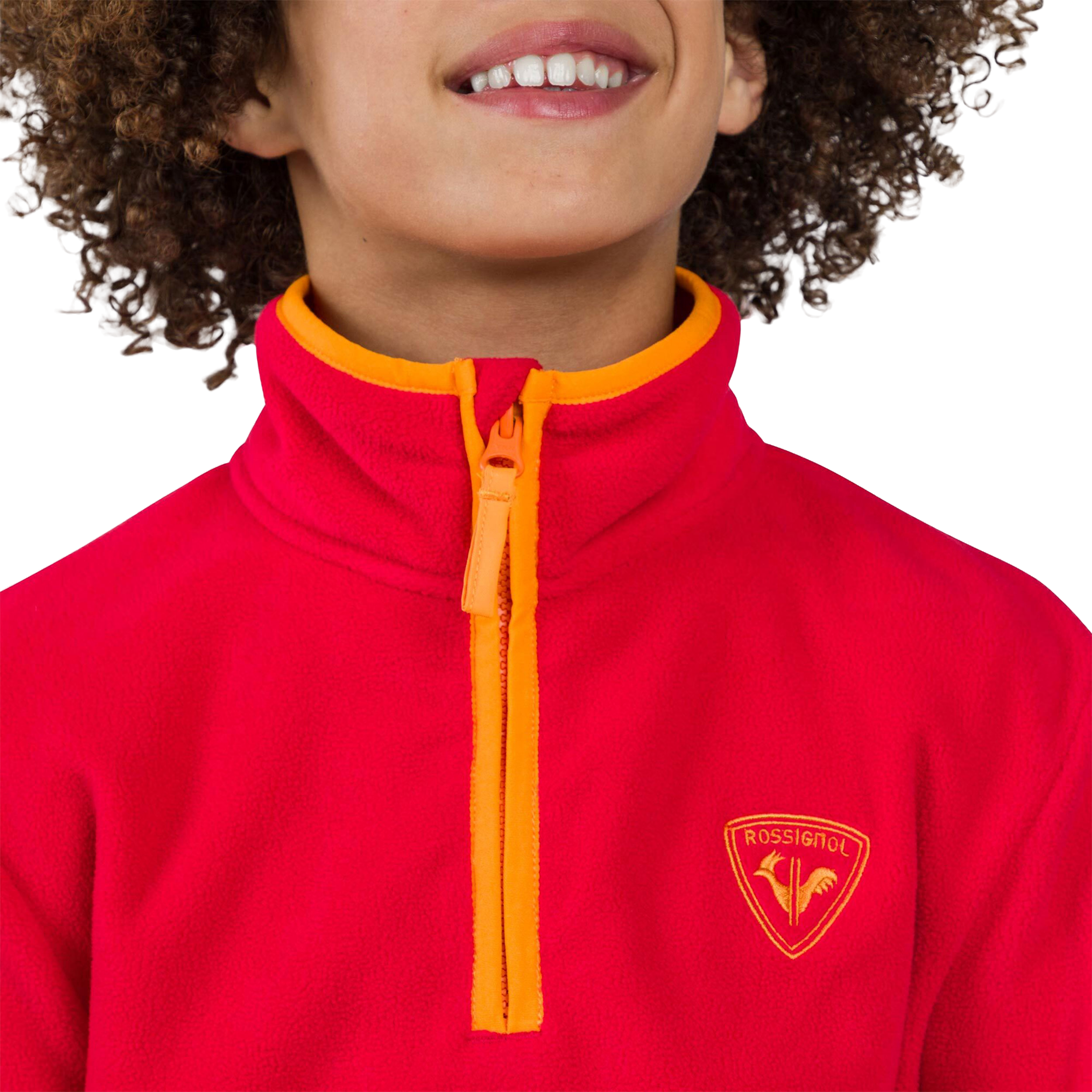 Layering helps kids stay warm and focused on skiing. The juniors' Rossignol Strawpile Half-Zip Fleece top works as a mid-layer under a ski jacket on the mountain and a versatile fleece for the everyday. It offers the familiar warmth of fleece and all-around versatility for active kids. Pair it with the Strawpile ski jacket for a complete color-matched look.