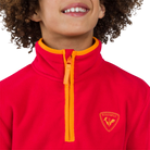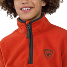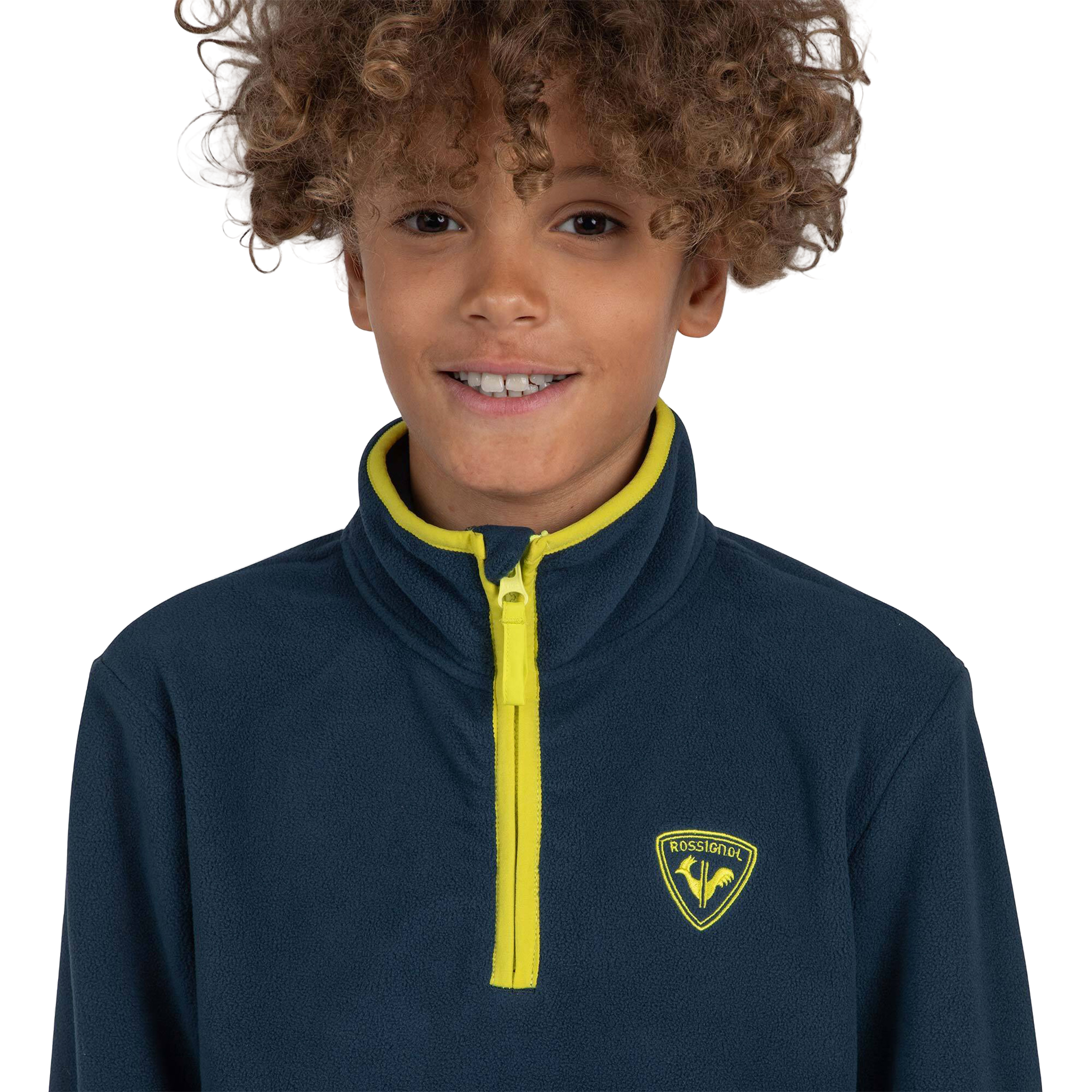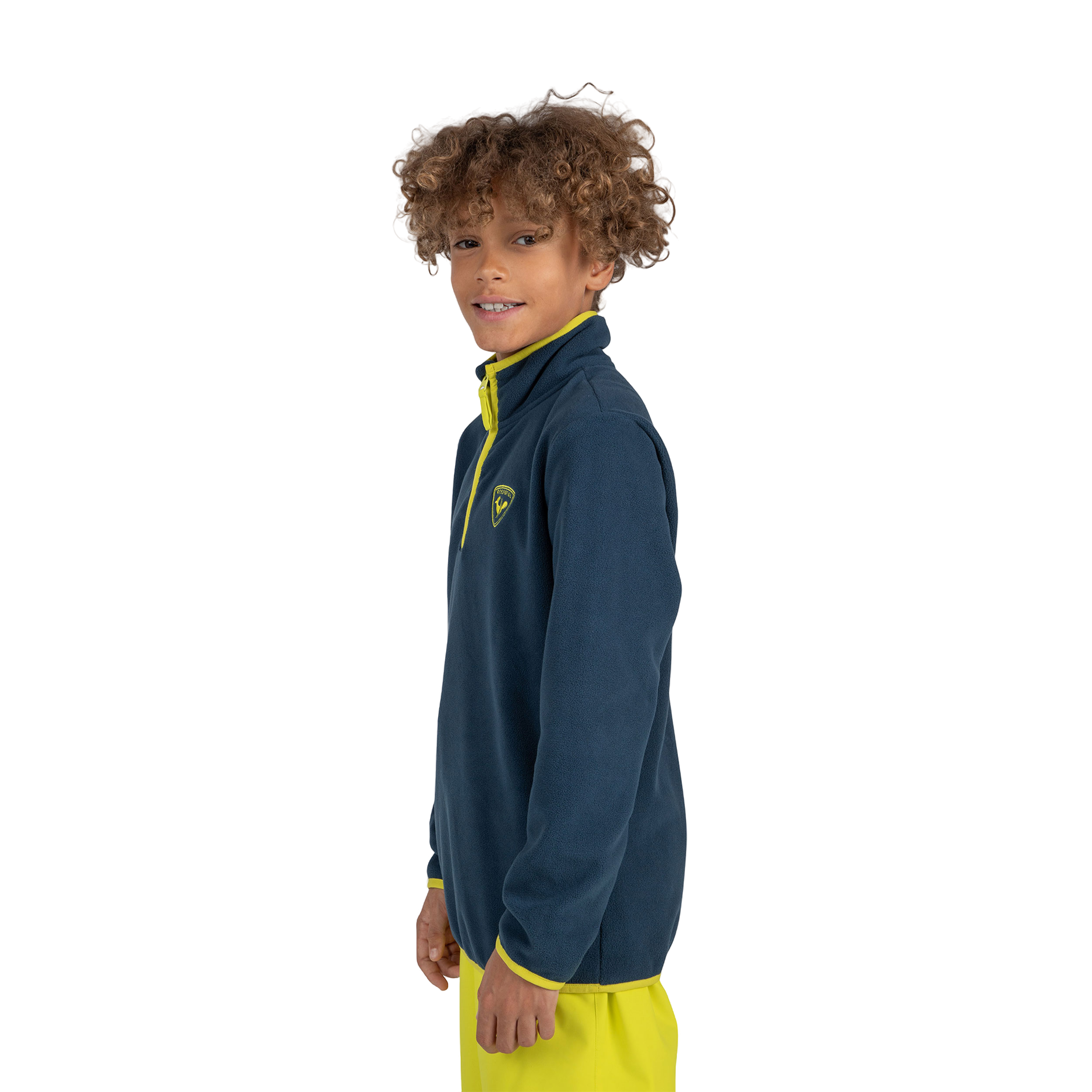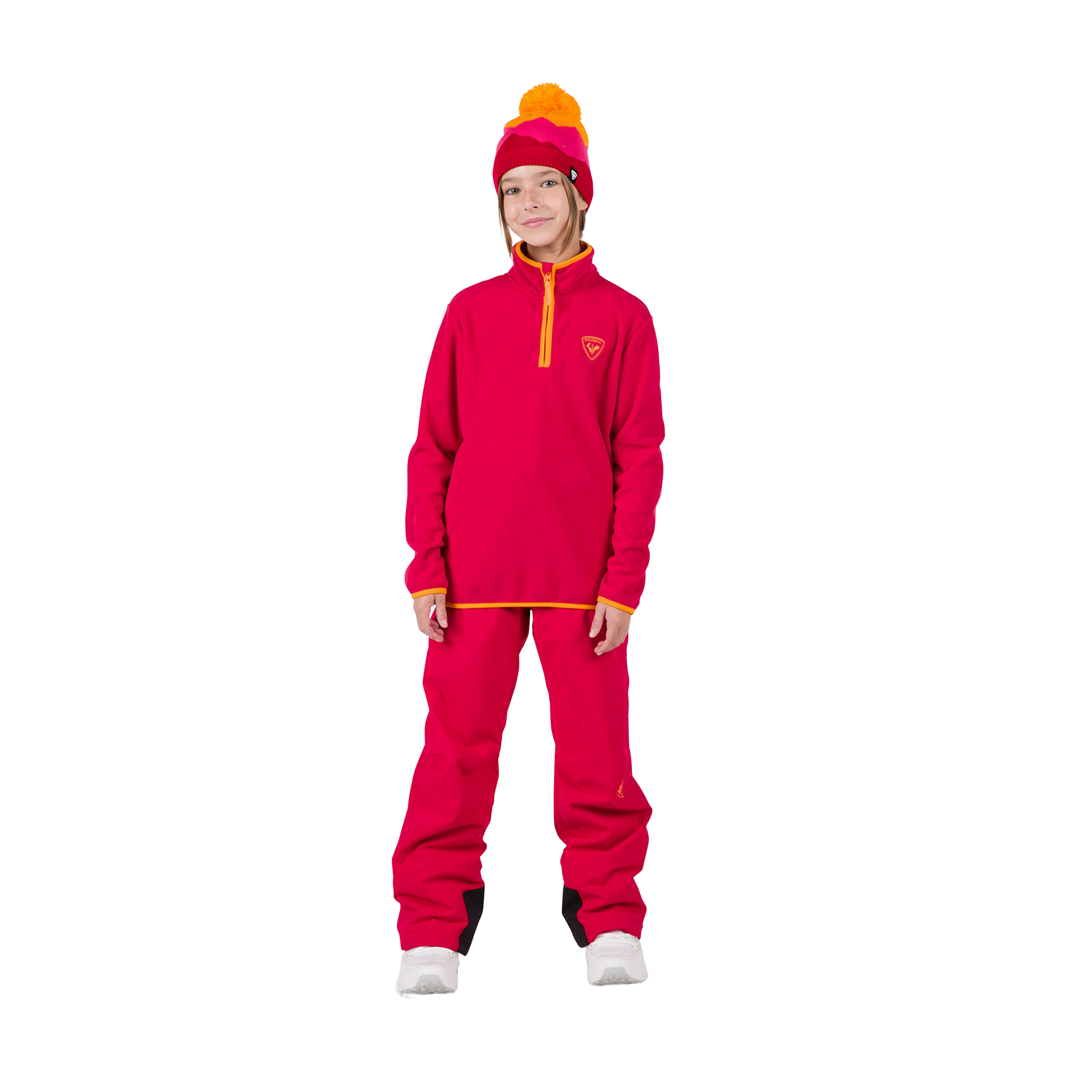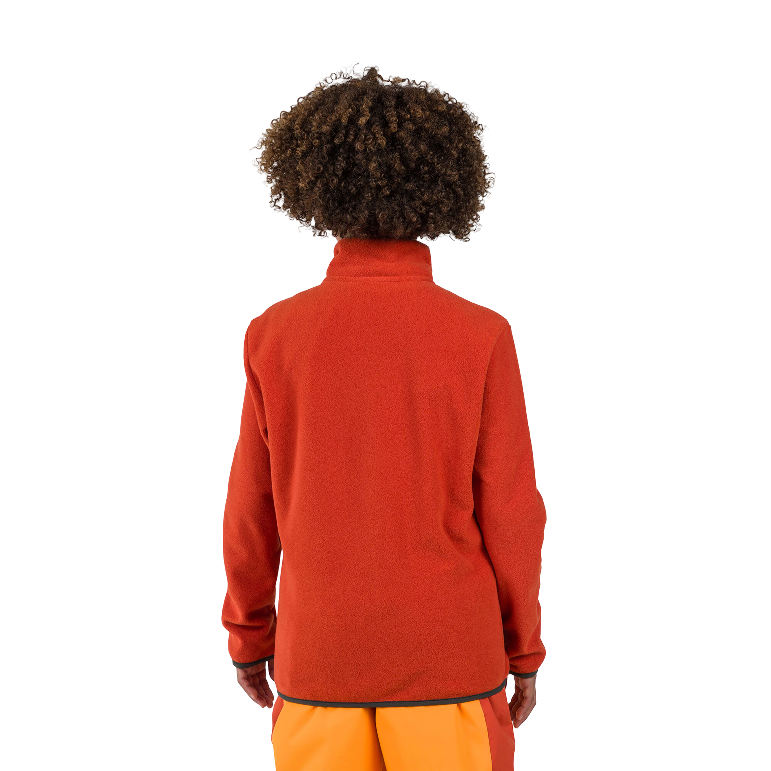 Layering helps kids stay warm and focused on skiing. The juniors' Rossignol Strawpile Half-Zip Fleece top works as a mid-layer under a ski jacket on the mountain and a versatile fleece for the everyday. It offers the familiar warmth of fleece and all-around versatility for active kids. Pair it with the Strawpile ski jacket for a complete color-matched look.
