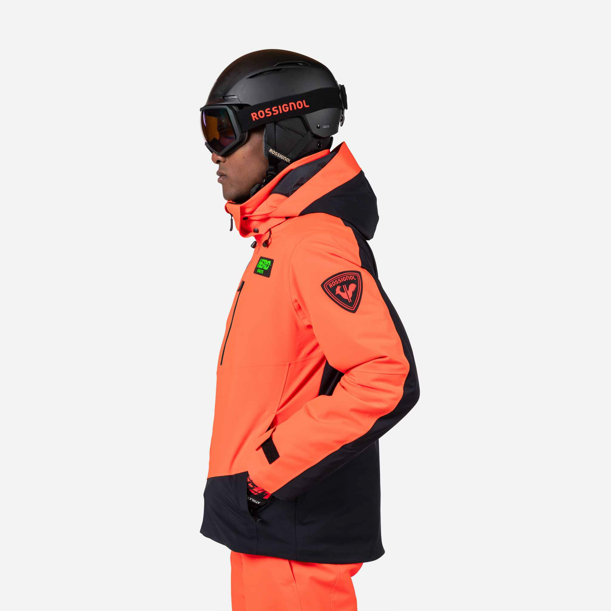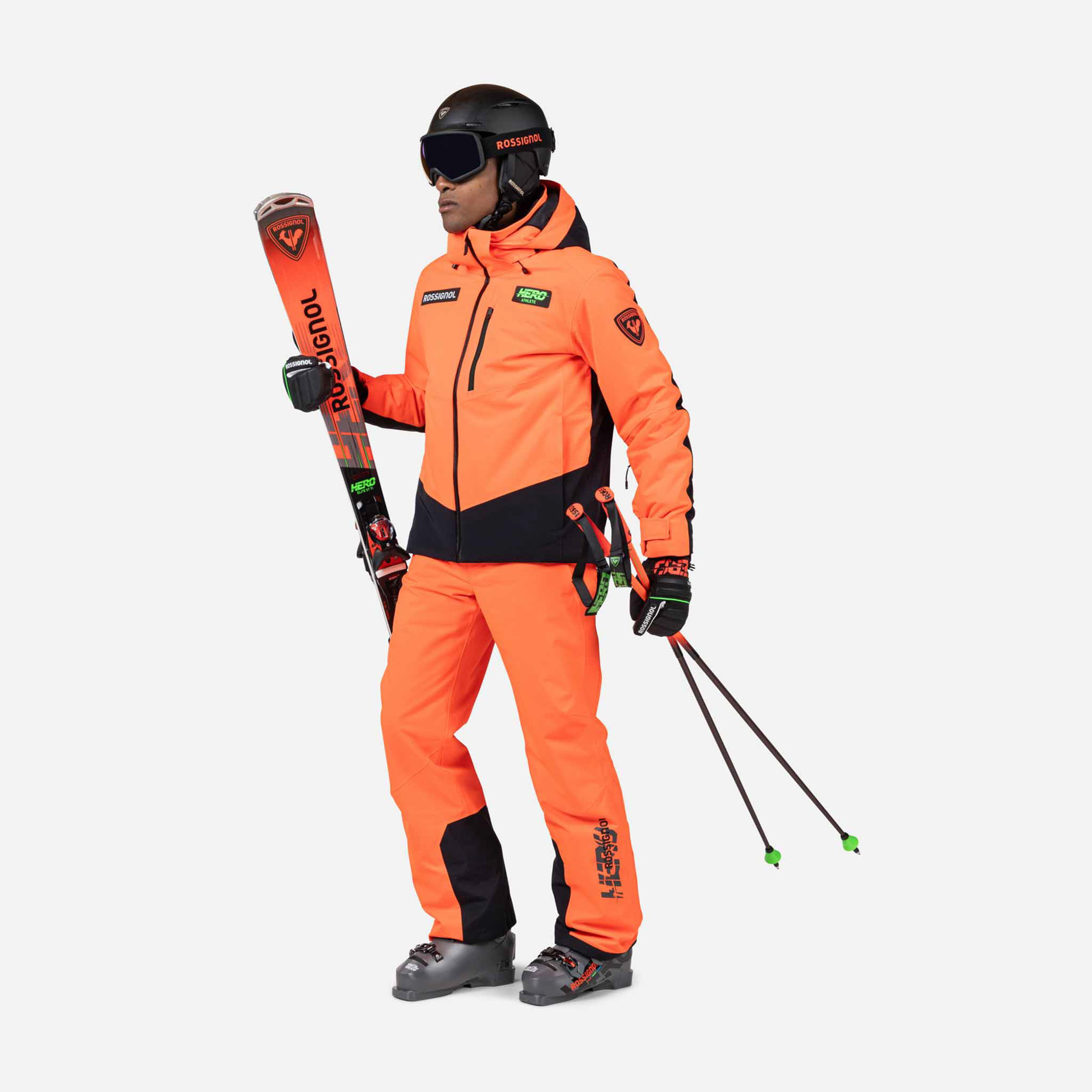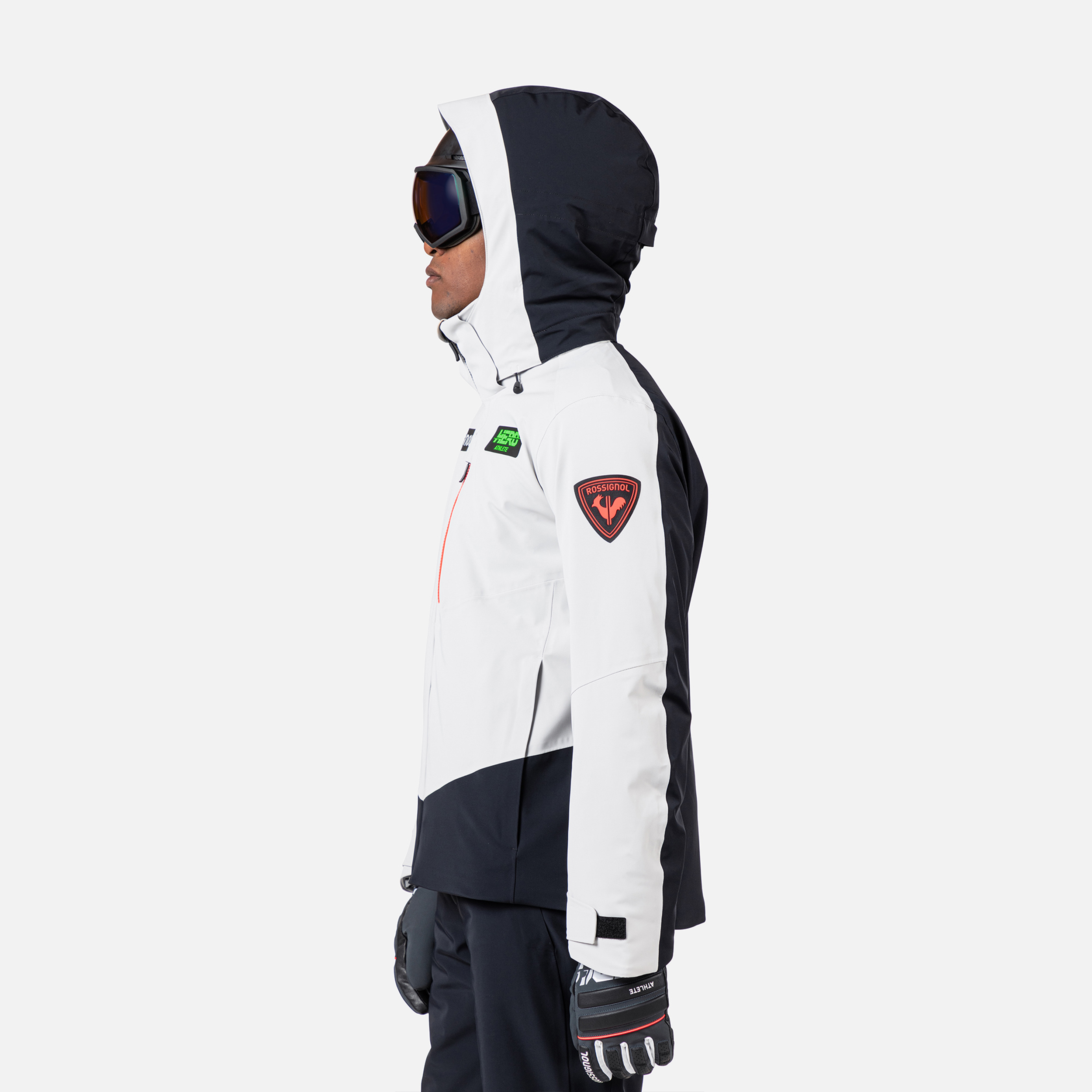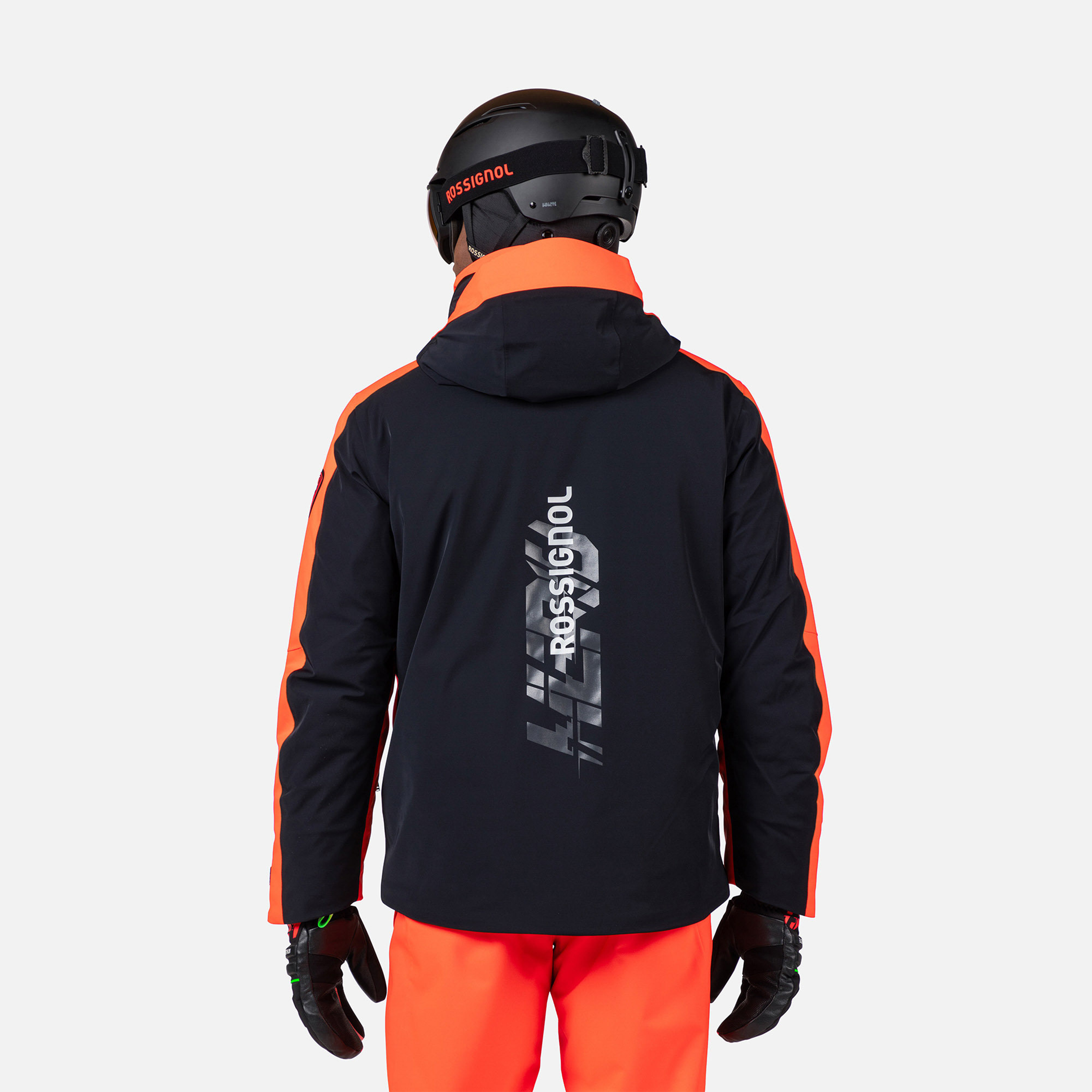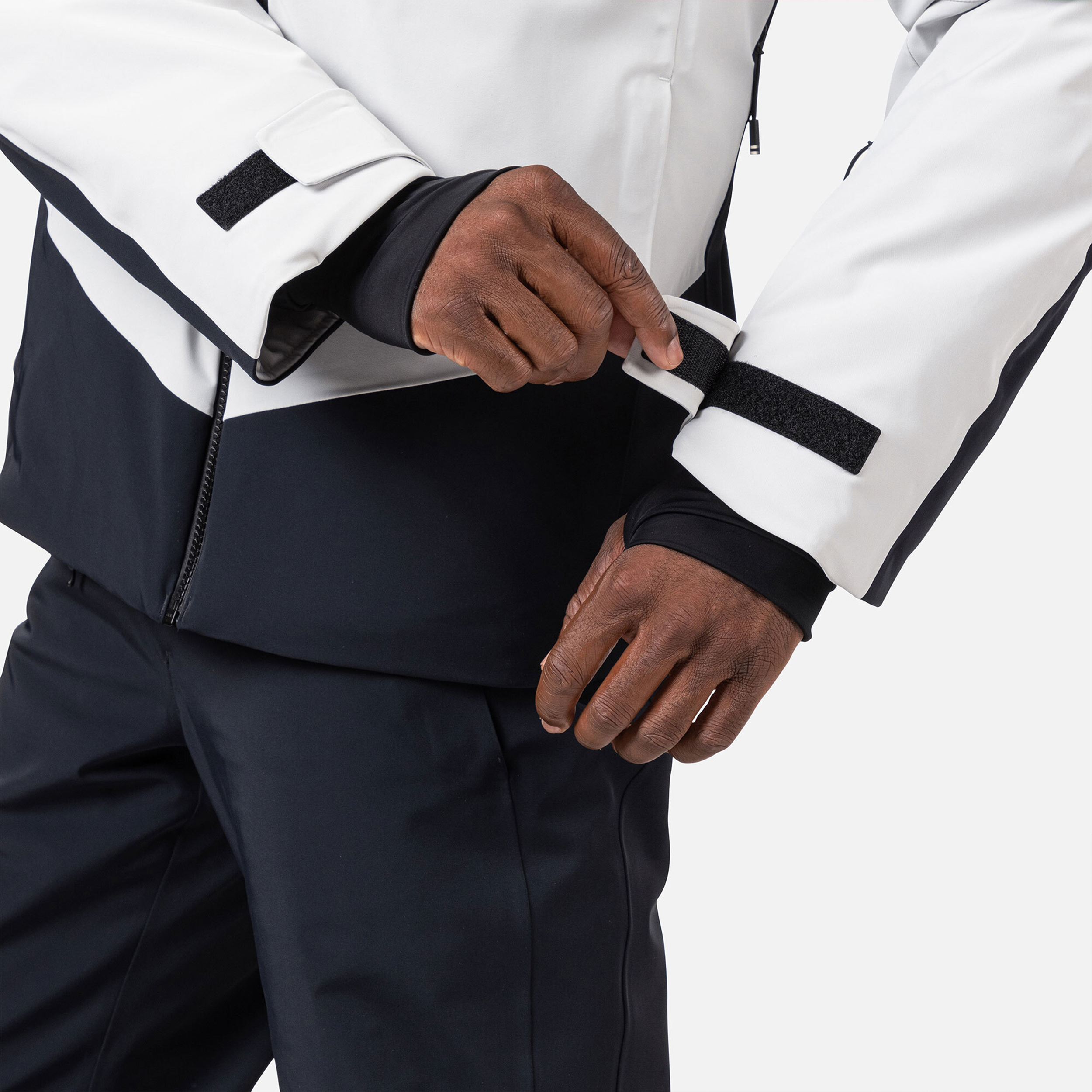 High-performance storm coverage with an elevated fit and feel for charging on the mountain. The men's Hero Blackside Insulated Ski Jacket combines the easy-moving feel of a four-way stretch shell with the latest waterproof, breathable technology to keep you dry, comfortable and skiing your best. HeiQ Smart Temp technology manages comfort by auto-adjusting breathability to match your changing body temperature, while low-profile synthetic insulation turns up the heat on cold lift rides. Fully-taped seams enhance storm protection, keeping you dry and comfortable through the stormiest weather. Ski day details like stretch cuffs with thumb loops, an attached goggle cloth and a built-in powder skirt extend your comfort range on cold days. Hero graphics pay tribute to Rossignol's legacy for speed, and a removable hood lets you customise your look.