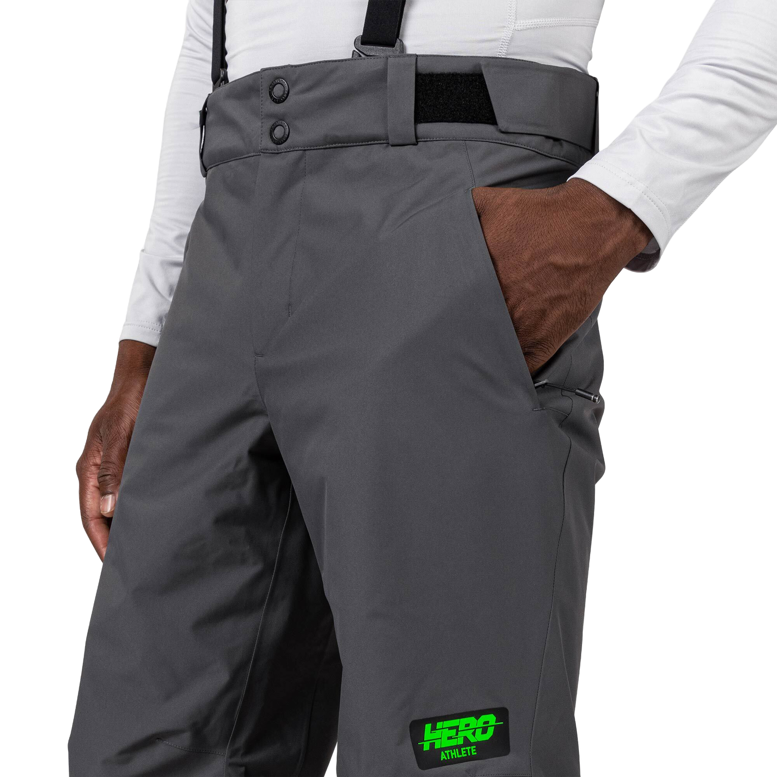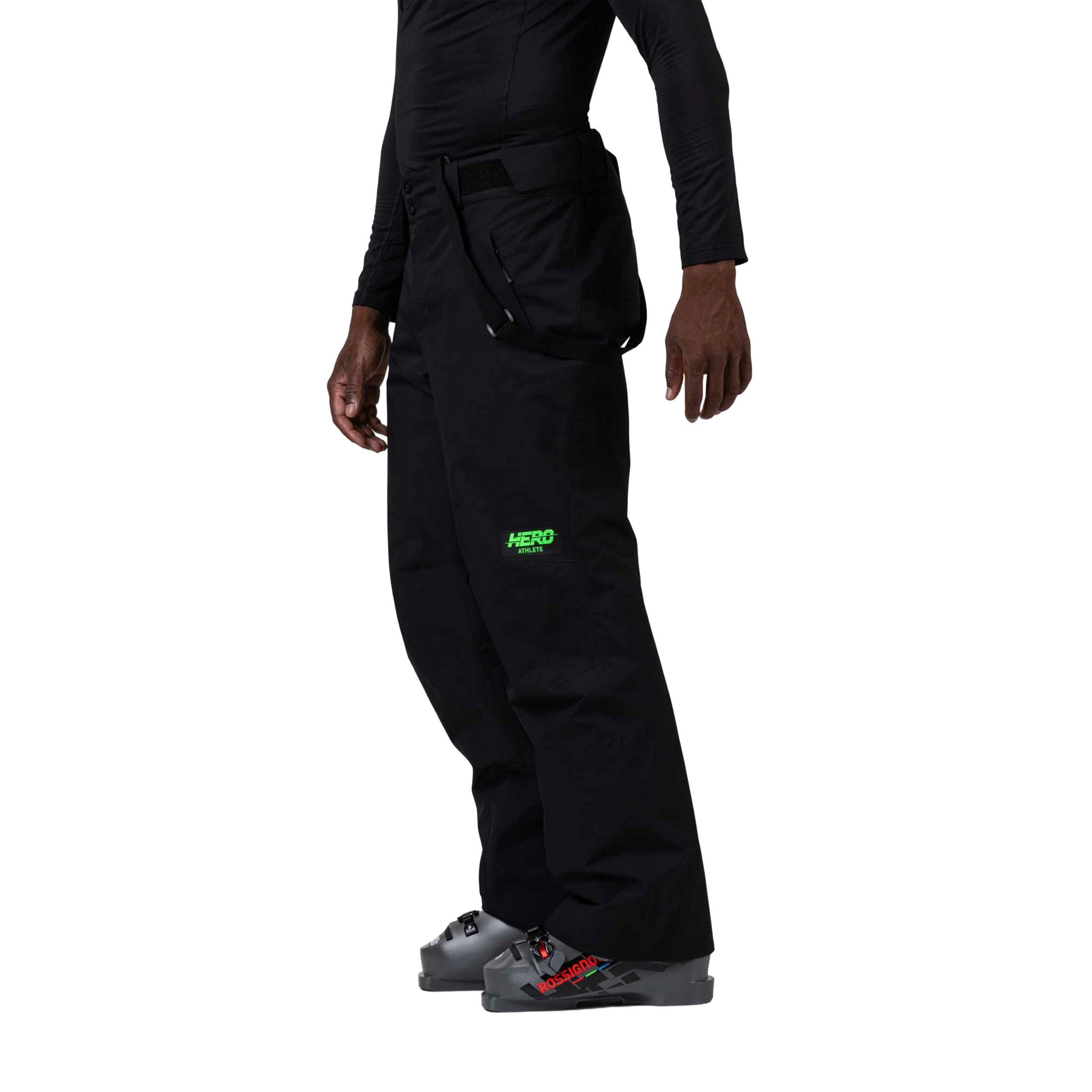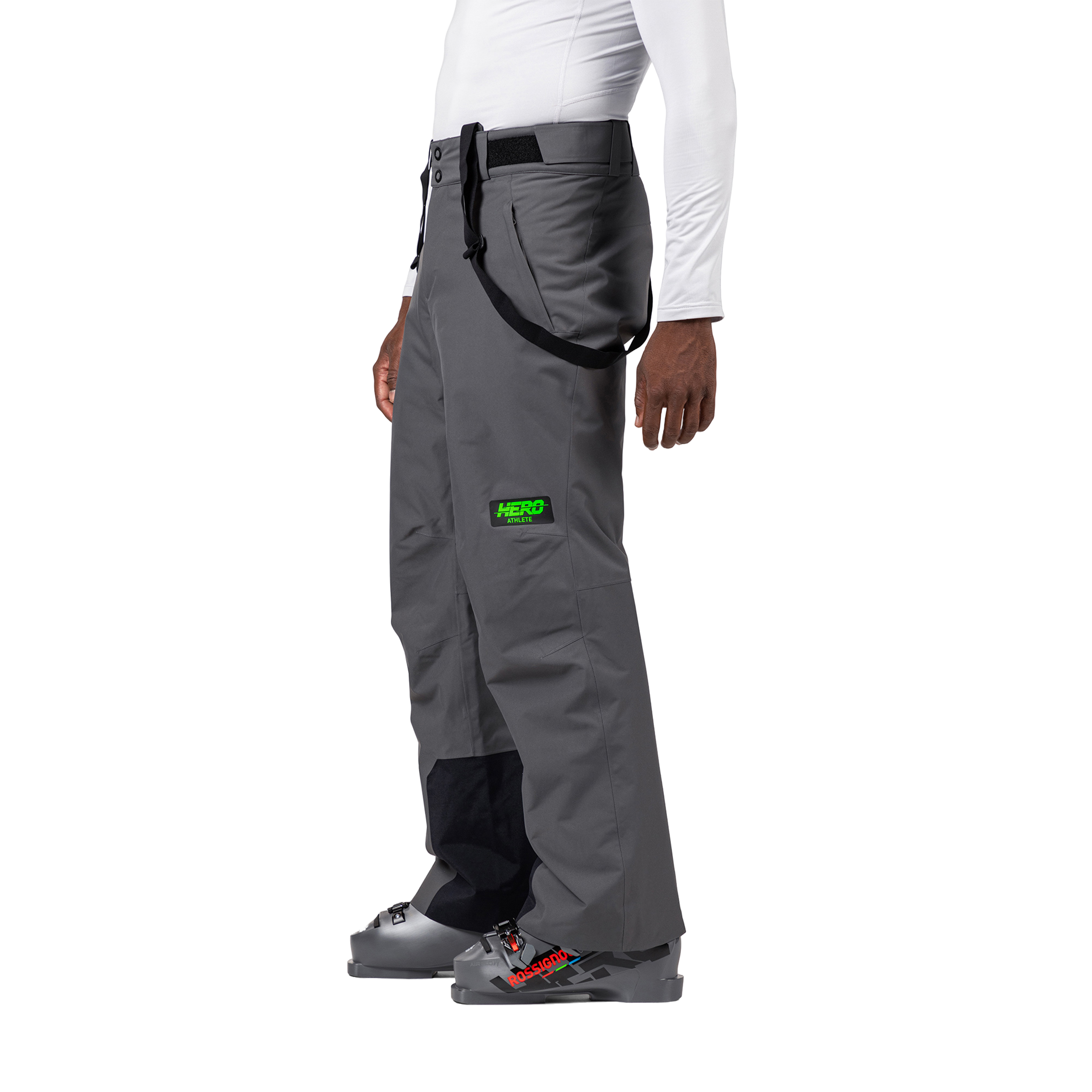 The men's Rossignol Hero Insulated Ski Pants celebrate the pursuit of speed. Stormproof and insulated, they offer maximum protection against the wind, weather and cold. Primaloft® synthetic insulation adds warmth without adding bulk. Removable suspenders and an adjustable waist let you dial in the fit to match your layers. Taped seams enhance weather resistance, and built-in gaiters create a snug seal around your boots. Hand pockets keep small essentials within easy reach.
