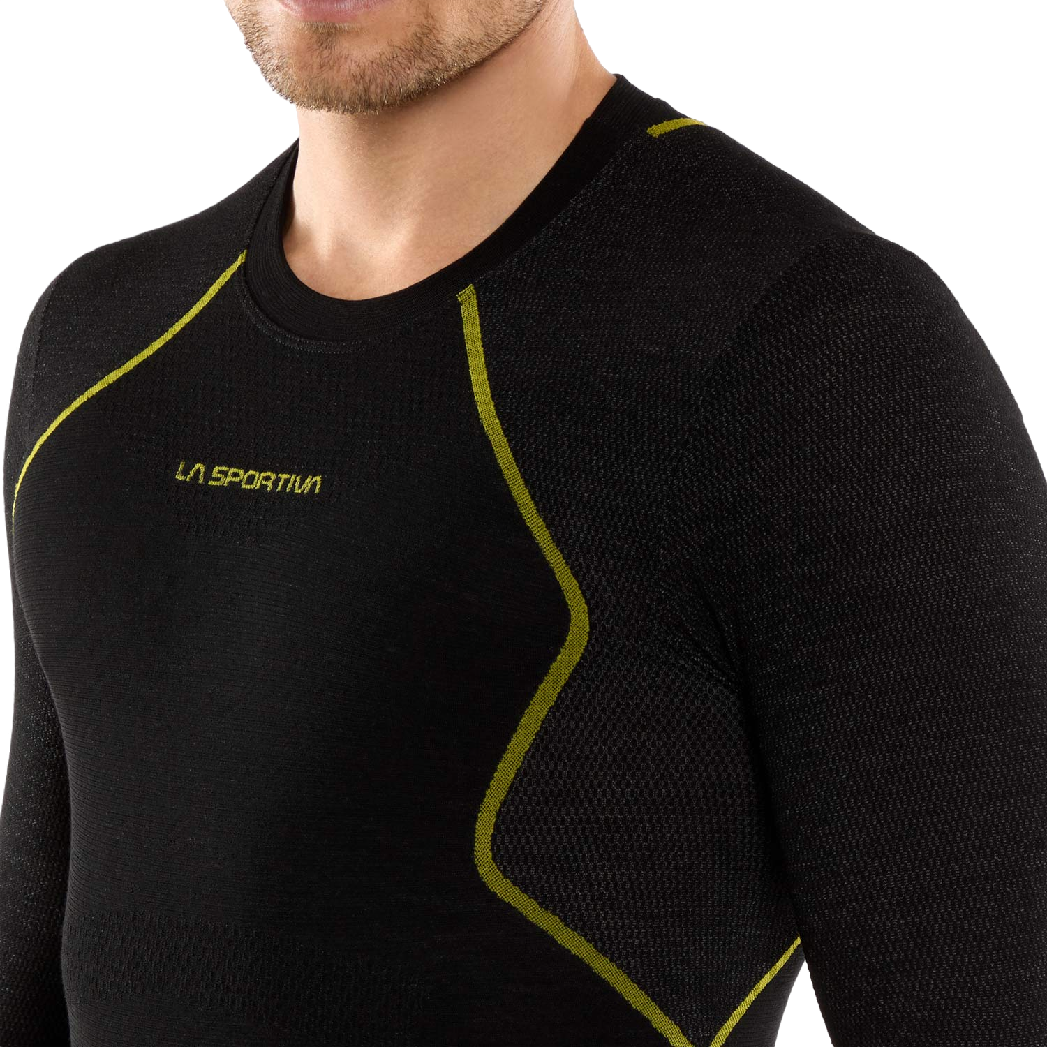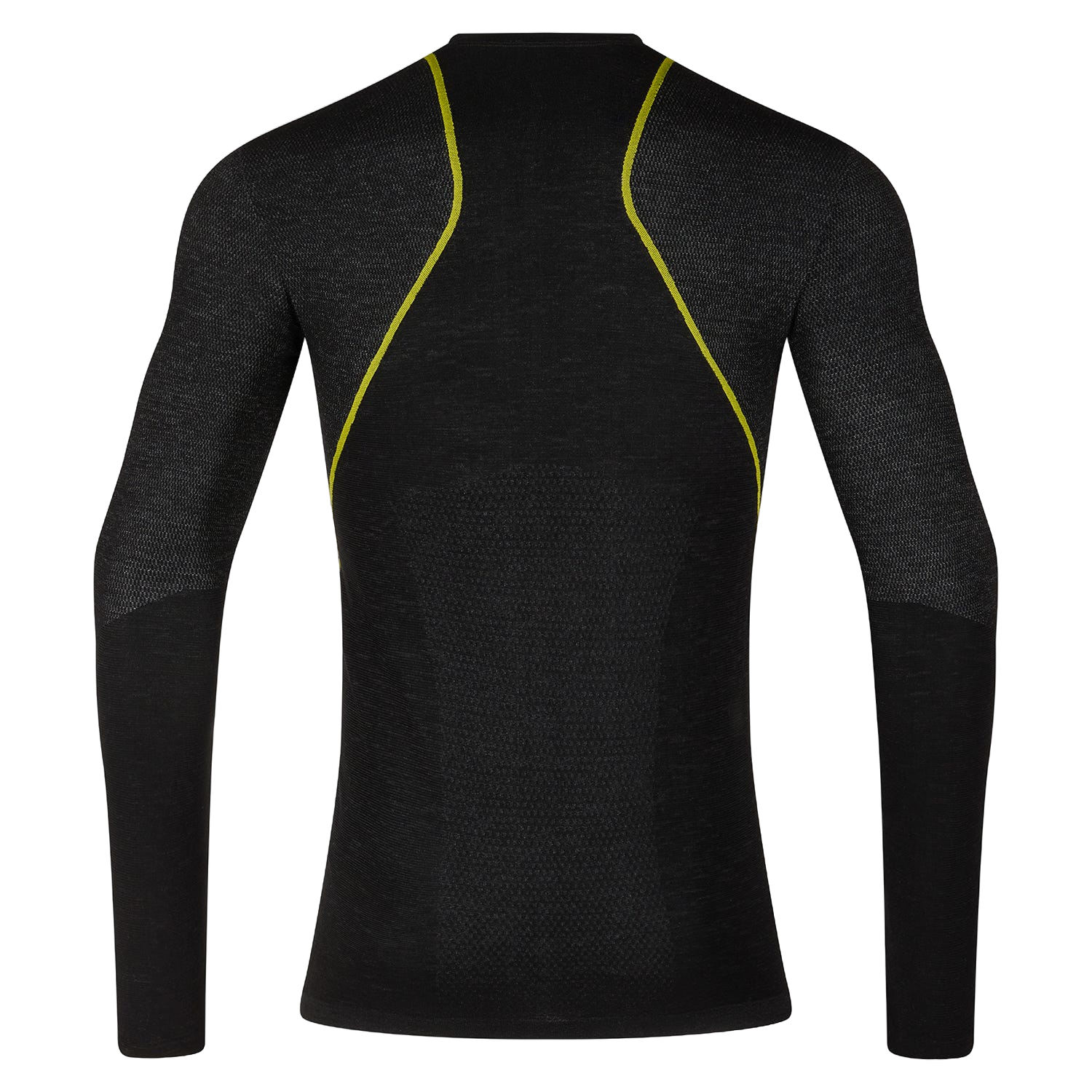 Crew neck long-sleeve made of merino wool, designed for technical use and suitable for winter aerobic and leisure activities.