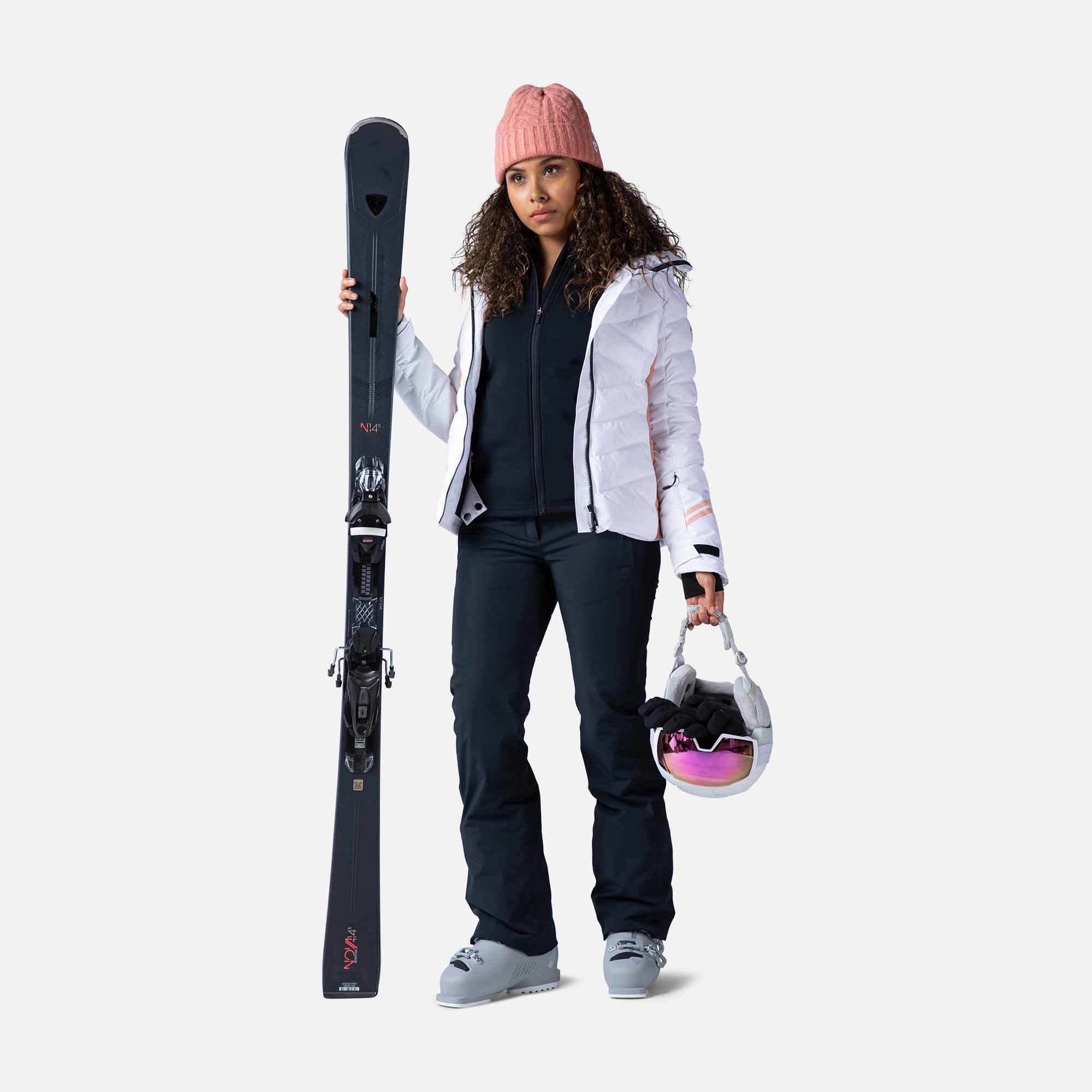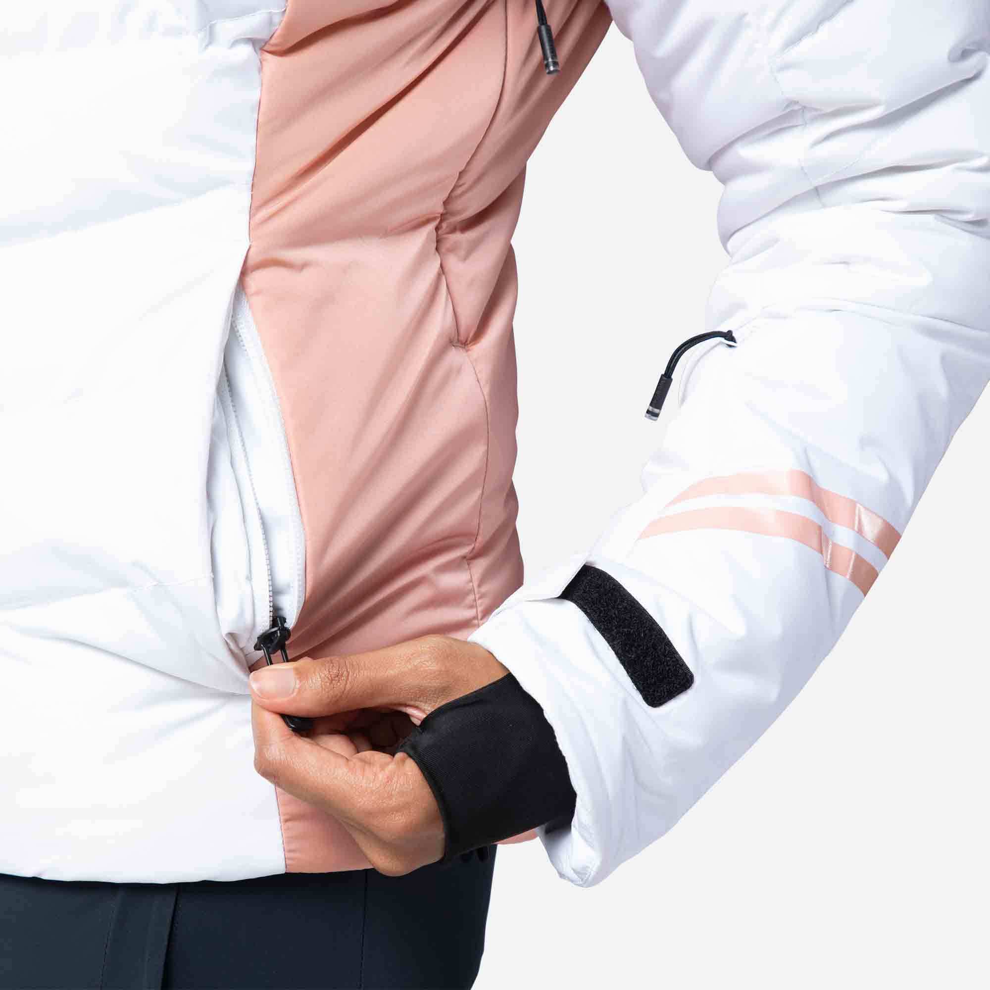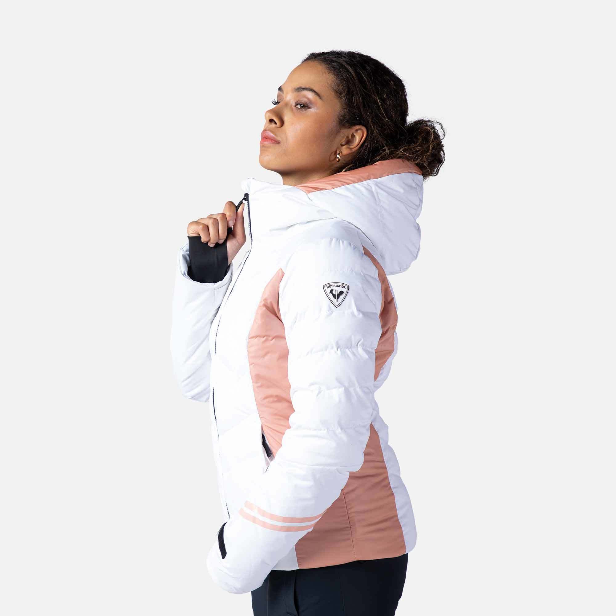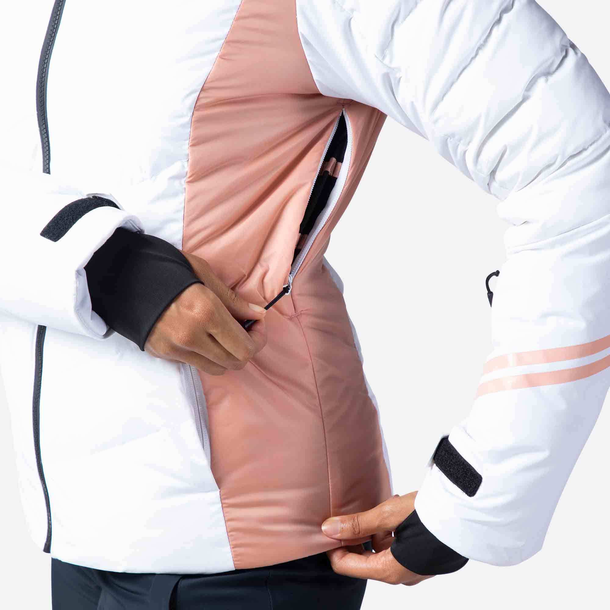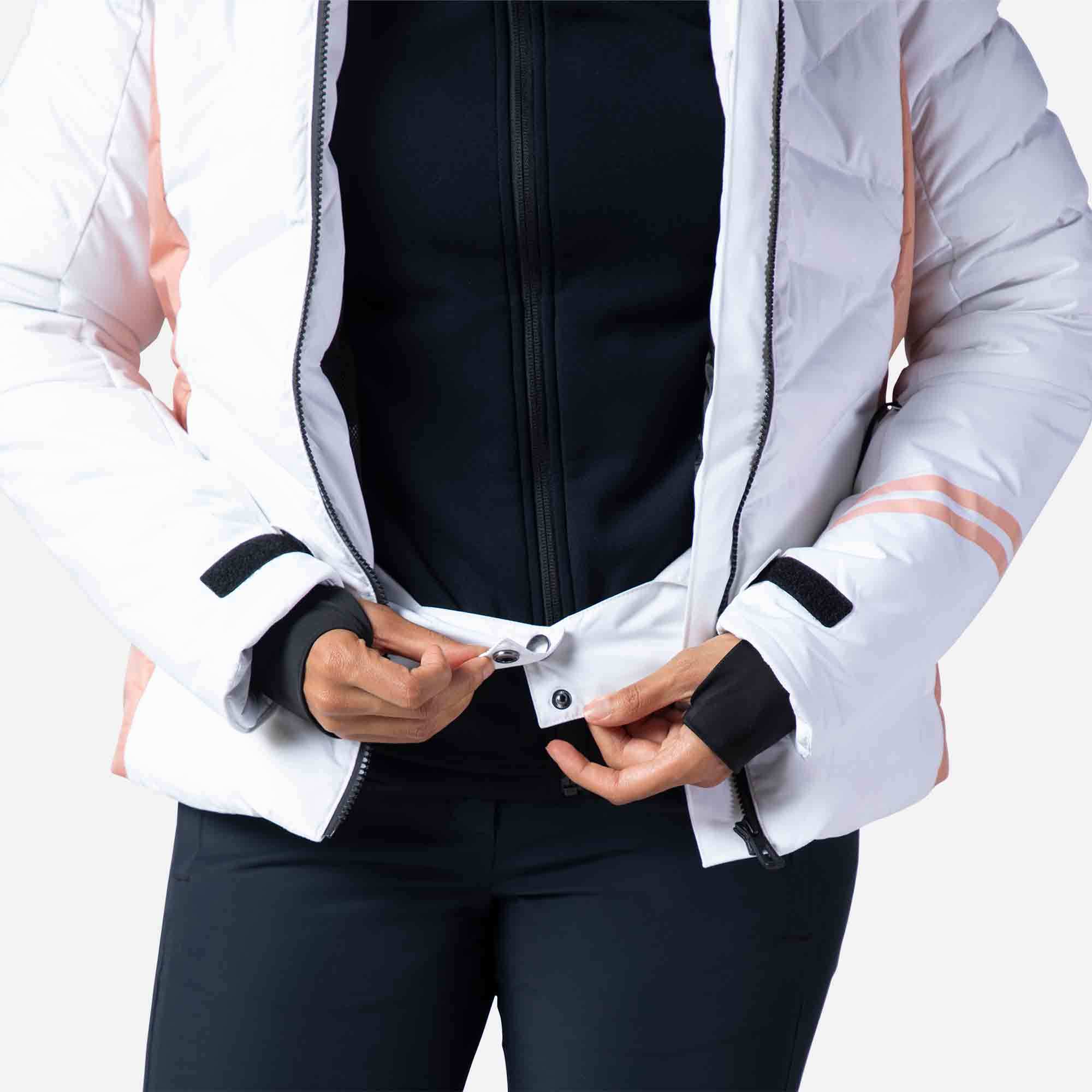 Stay warm and cozy as you carve the piste or explore untracked aspen glades in the women's Rossignol Courbe Ski Jacket. A combination of high-loft synthetic insulation in the body and low-bulk synthetic fill in the sleeves provides premium warmth and easy mobility, while zip vents let you regulate your temperature as needed. The waterproof, breathable design seals out stormy weather while letting your body breathe as you warm up. Features like stretch cuffs with thumb loops, a dedicated pass pocket and a built-in powder skirt ensure all-day comfort on the mountain. Design details include contrasting panels and ski-track-inspired stripes on the sleeves. A signature rooster logo patch reflects Rossignol's alpine legacy.