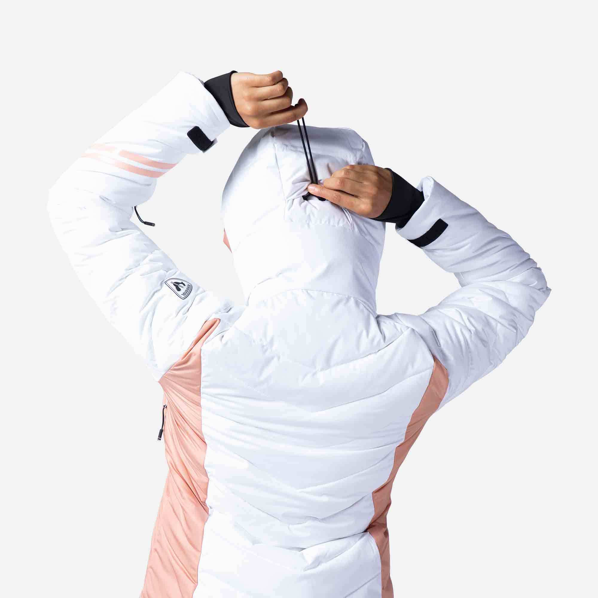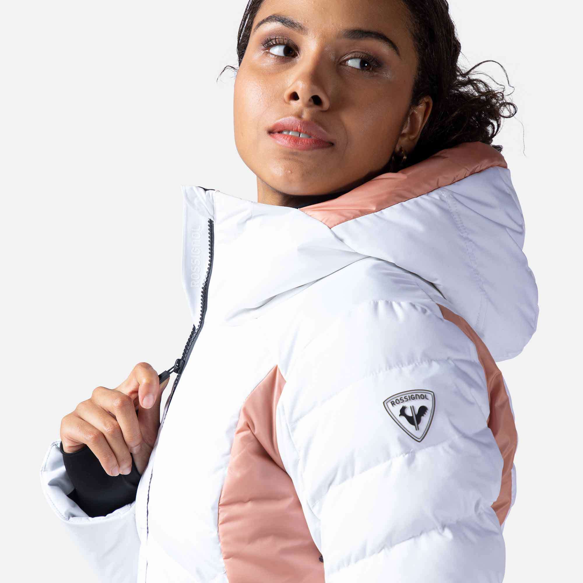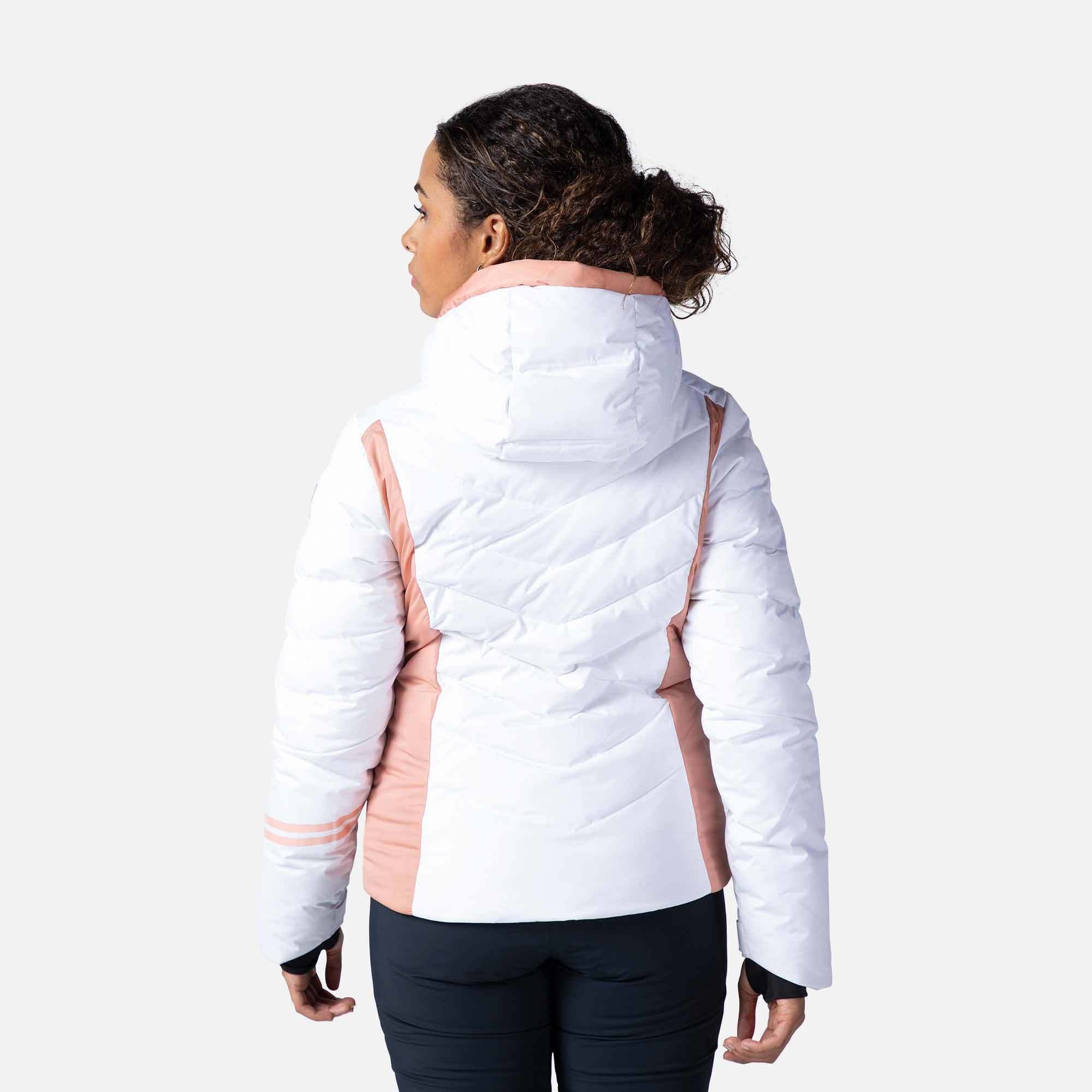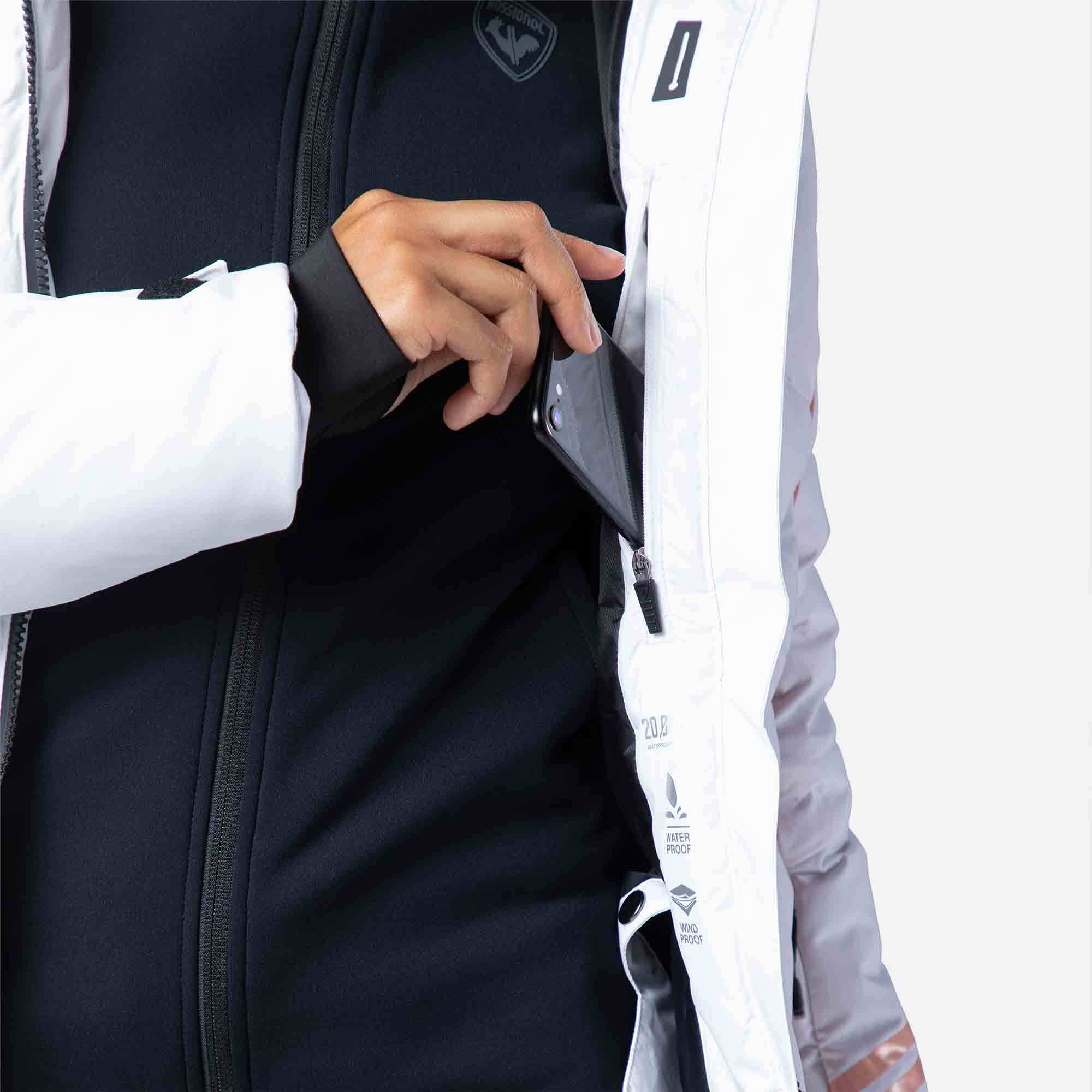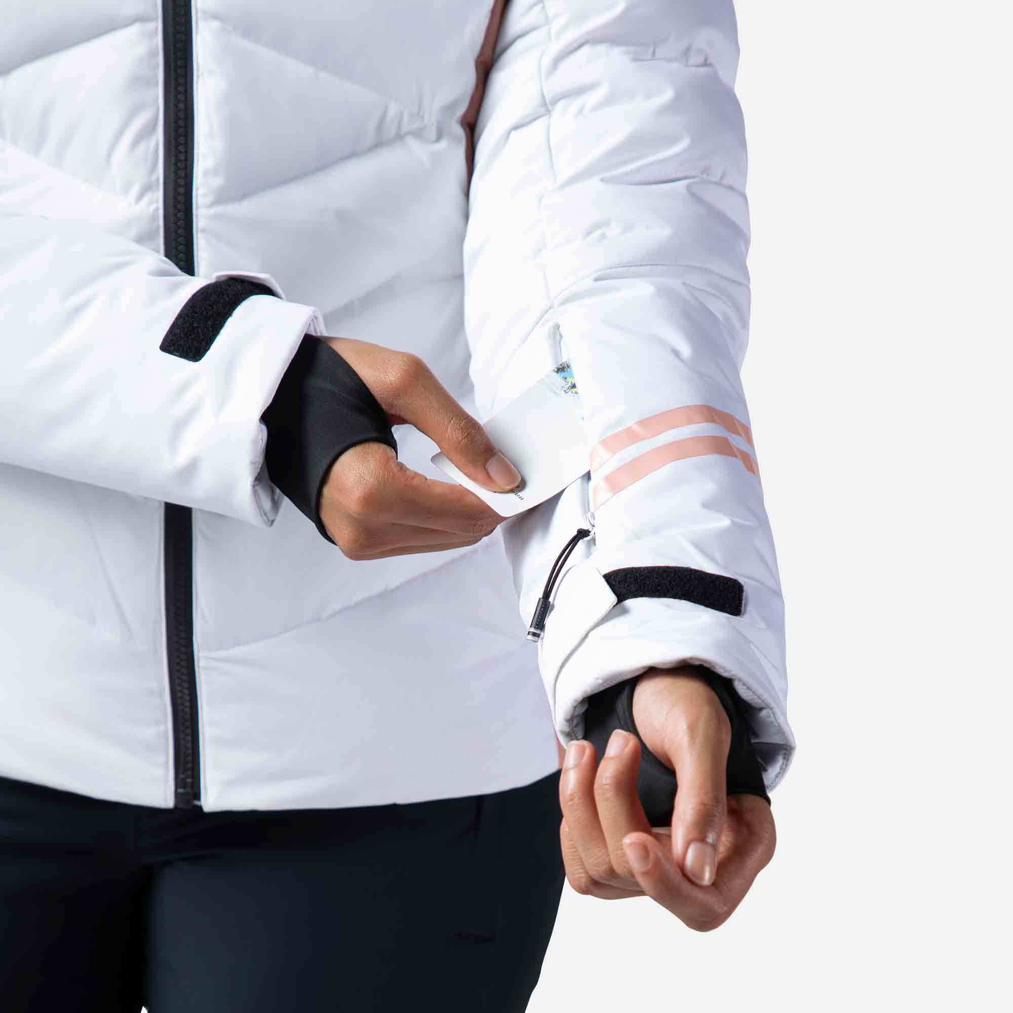 Stay warm and cozy as you carve the piste or explore untracked aspen glades in the women's Rossignol Courbe Ski Jacket. A combination of high-loft synthetic insulation in the body and low-bulk synthetic fill in the sleeves provides premium warmth and easy mobility, while zip vents let you regulate your temperature as needed. The waterproof, breathable design seals out stormy weather while letting your body breathe as you warm up. Features like stretch cuffs with thumb loops, a dedicated pass pocket and a built-in powder skirt ensure all-day comfort on the mountain. Design details include contrasting panels and ski-track-inspired stripes on the sleeves. A signature rooster logo patch reflects Rossignol's alpine legacy.