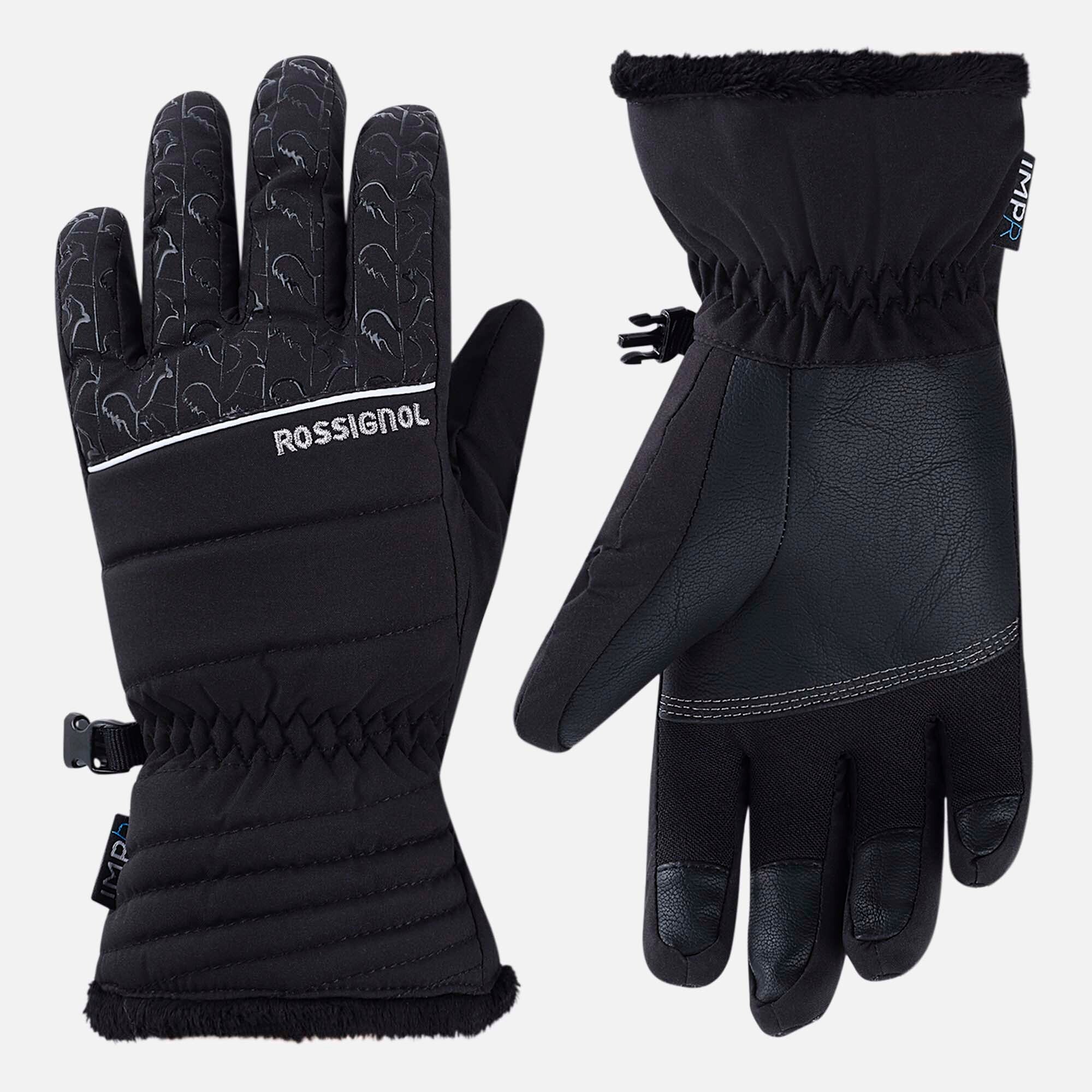 A combination of topstitching and silicone embossing add style and highlight the iconic Rossignol rooster logo on the women's Temptation IMP'R Ski Gloves. Lightweight synthetic insulation and a waterproof, breathable build keep your hands warm and dry for all-conditions comfort. Their precurved shape and synthetic palms afford a natural range of motion and positive grip on your poles. A fleece cuff welcomes your hands with a soft feel and adds the final style touch.