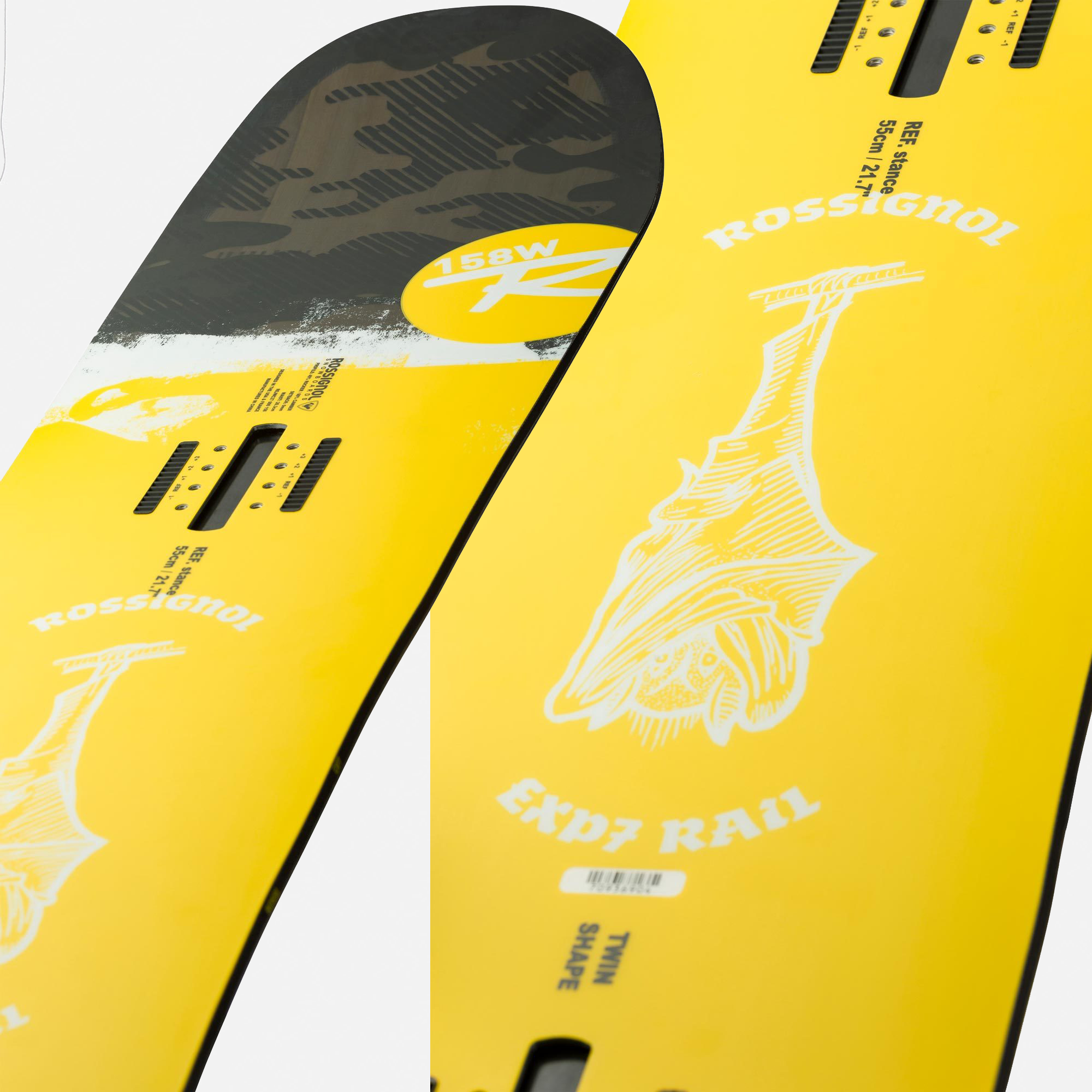 The EXP3 Rail is a softer version of the EXP7 Rail in which the Basalt and Aramid fiber reinforcement were swapped with RadCut, AmpTek Elite rocker with AmpTek AutoTurn and Serrated Edges 7S with 3S to maintain premium performance for riders who are less demanding.