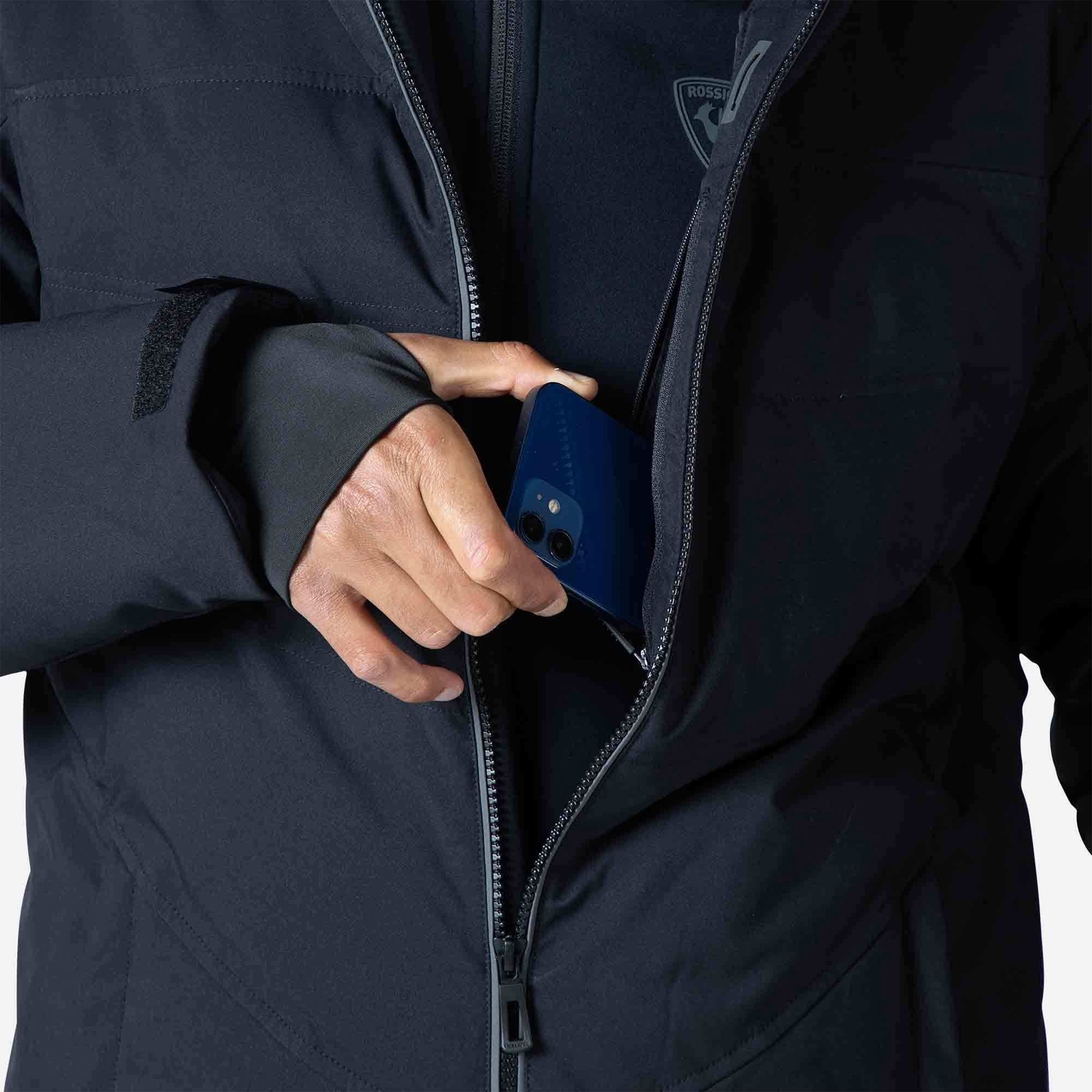Zip up warmth you can feel with the men's Siz Ski Jacket, designed to provide all-conditions warmth and protection. This jacket features down-like synthetic insulation that effectively seals in heat, while a waterproof, breathable membrane keeps cold, stormy weather at bay, ensuring you stay dry and comfortable. Thoughtful details like a built-in powder skirt and integrated stretch cuffs with thumb loops add extra defense against the cold. The removable hood, complete with a detachable faux-fur trim, offers customizable style and functionality. Finished with Rossignol's signature rooster logo patch, this jacket embodies the brand's alpine legacy and commitment to performance.
