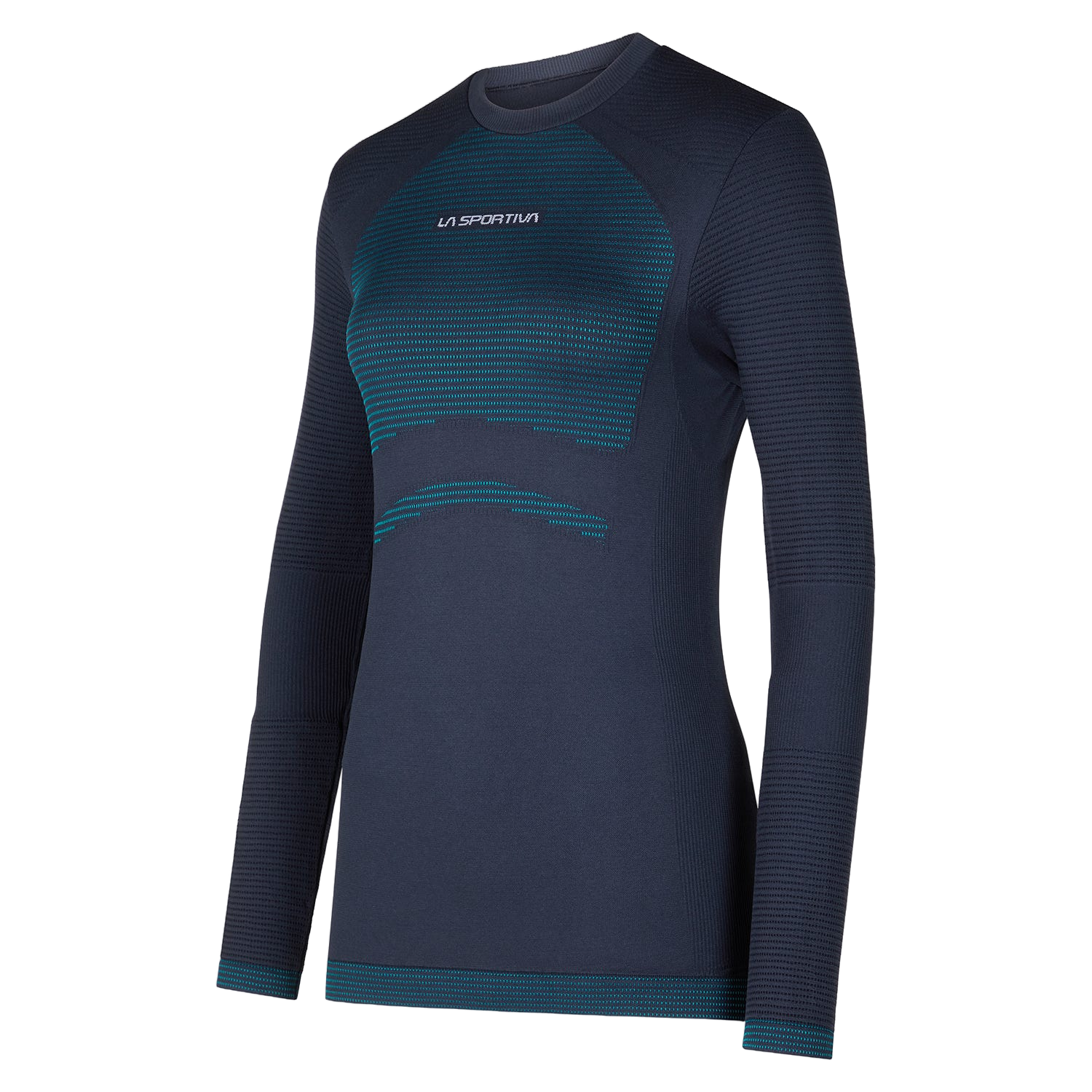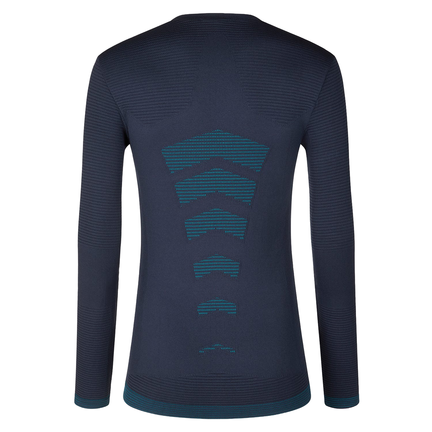 Versatile synthetic long-sleeve with anatomical fit, warm and breathable, designed for technical use, suitable for winter aerobic and leisure activities.