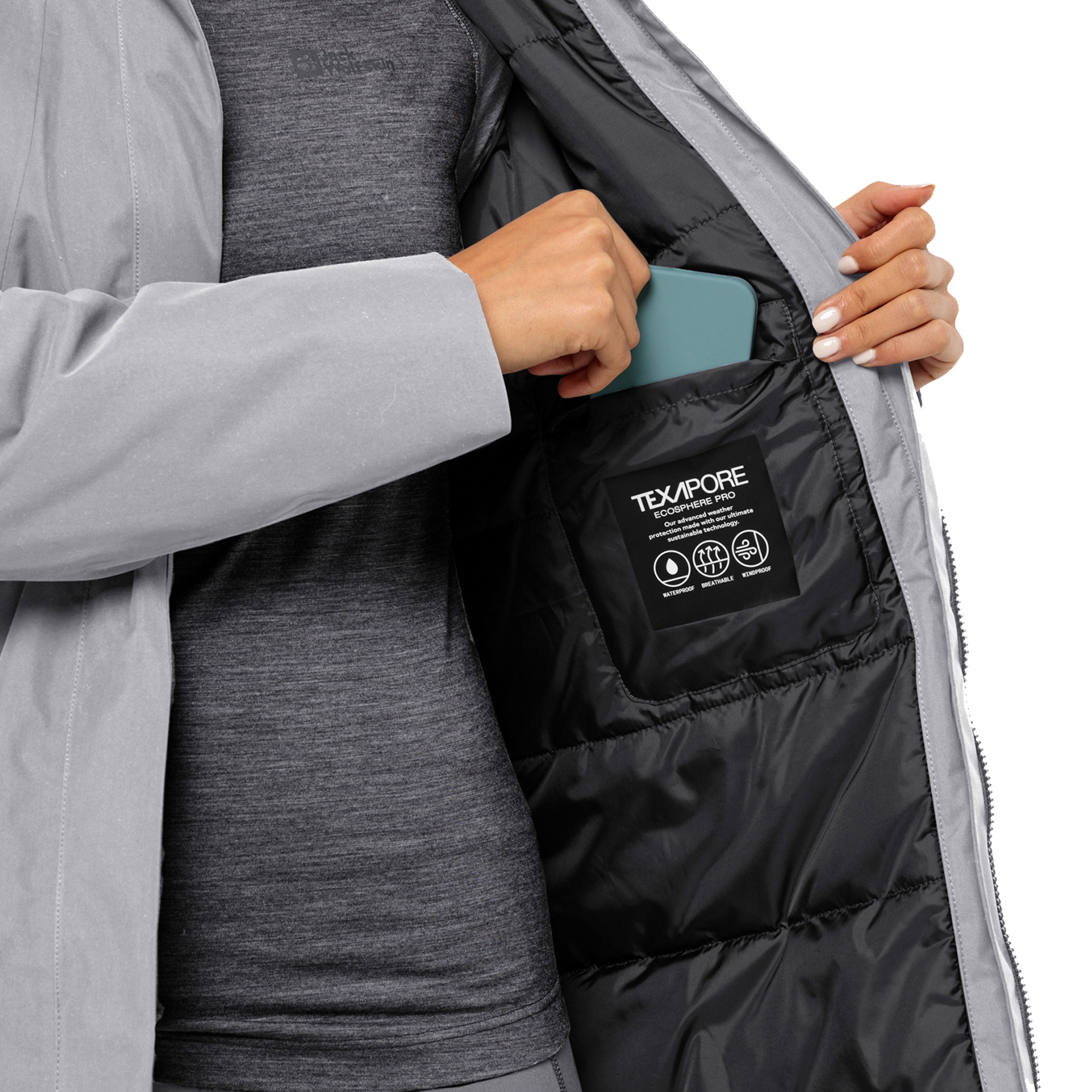 Lining: The inside of Jack Wolfskin's TEXAPORE ECOSPHERE jackets is also made from completely recycled material and is certified according to the Global Recycling Standard.