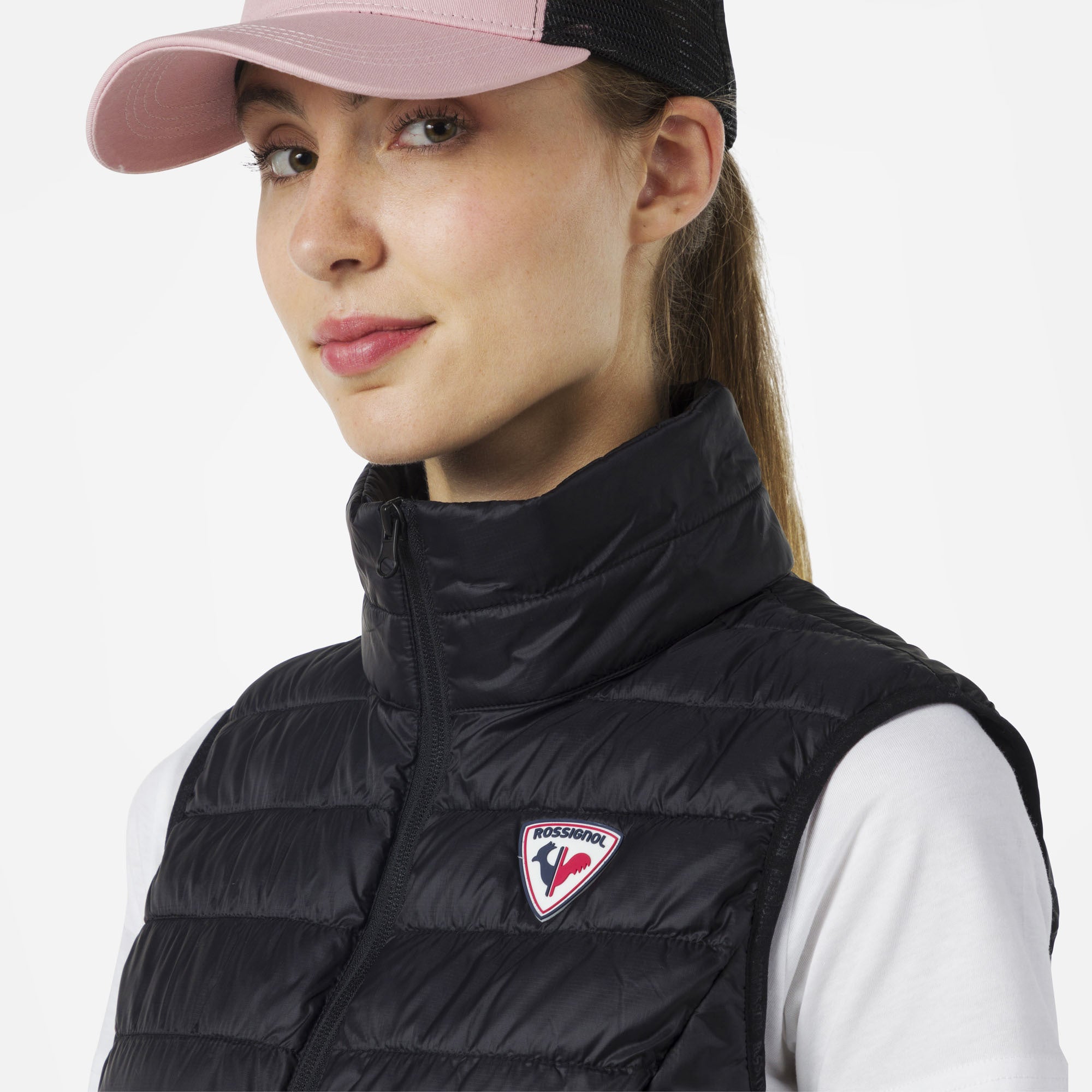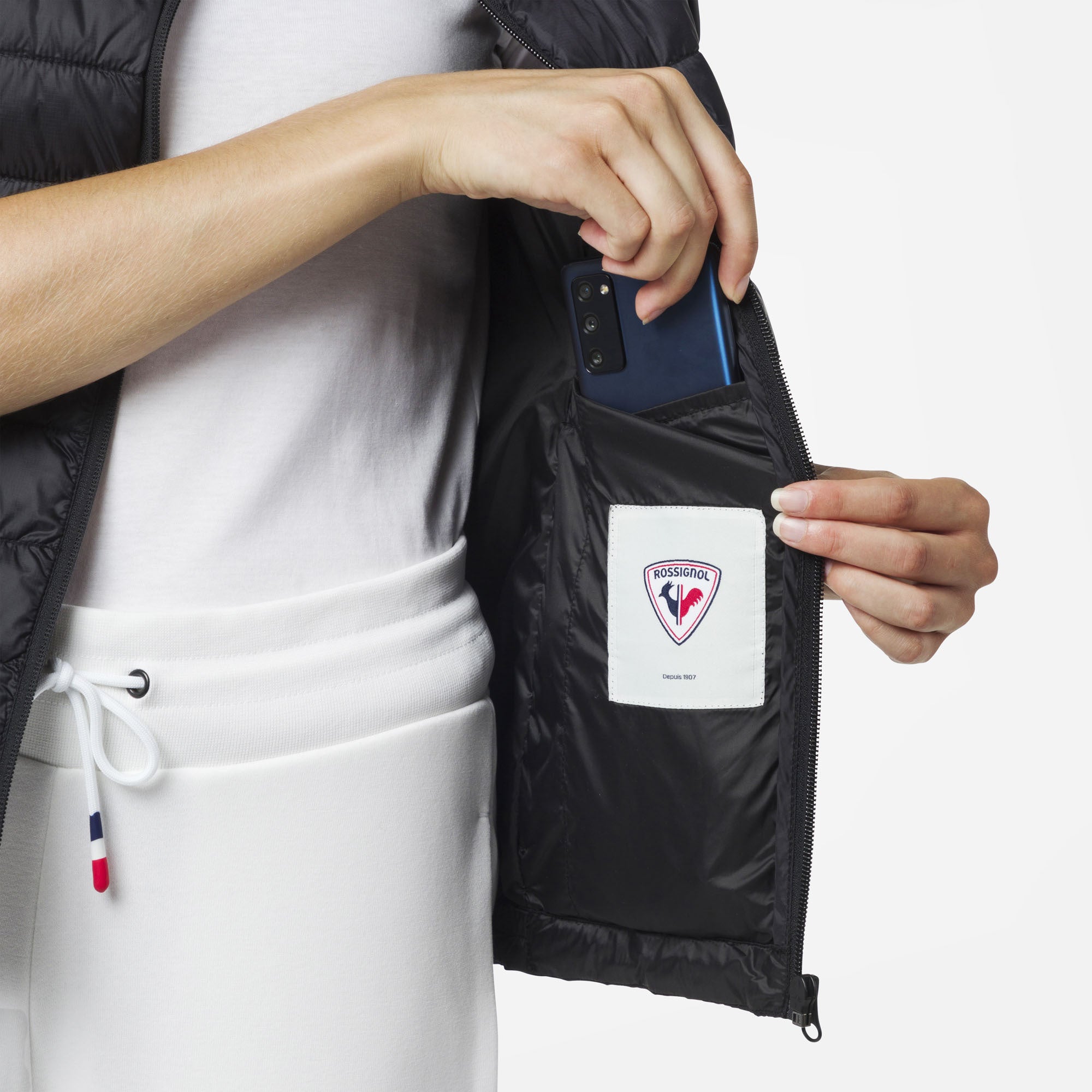 Layer up against cool weather. The low-bulk synthetic insulation of this women's gilet warms your core when the temperatures take a dip. Tricolor details and the iconic Rossignol rooster flash alpine heritage in the city or mountains.