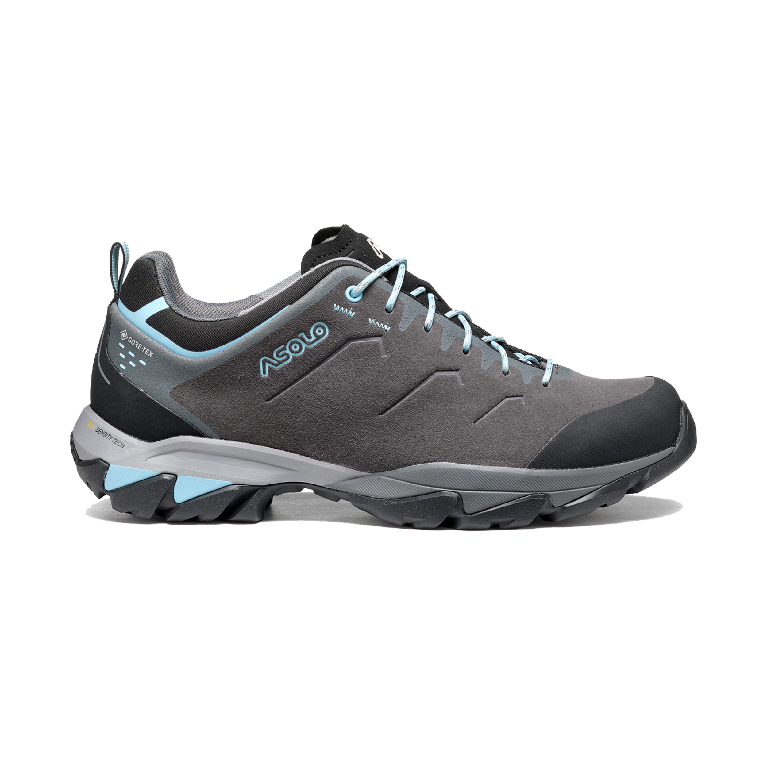 Water-resistant leather suede upper offers protection and comfort while the Gore-Tex Extended Comfort Footwear lining guarantees waterproofness and breathability. The mono-density Eva midsole offers the best stability, support, comfort and cushioning and a softer Eva is co-injected in the rear part for assuring a shock absorbption function. The Asolo Acadia outsole has a self cleaning design and it uses the Sigma Grip compound which guarantees the best traction, grip, durability. To complete the model a rubber toe cap for protection and the hardware lacing system for a fast and precise lace up.