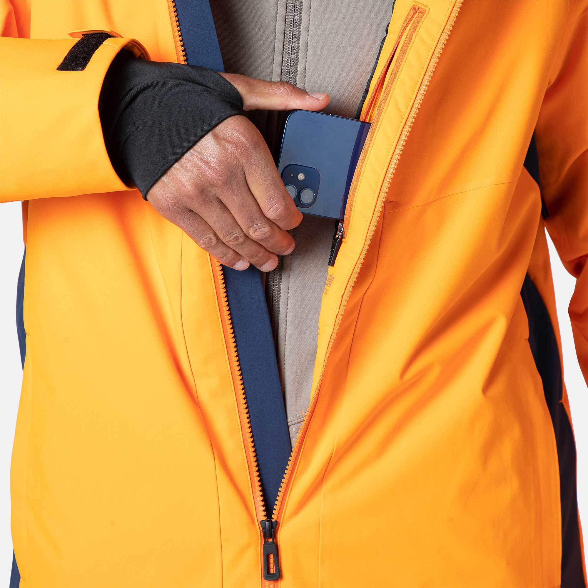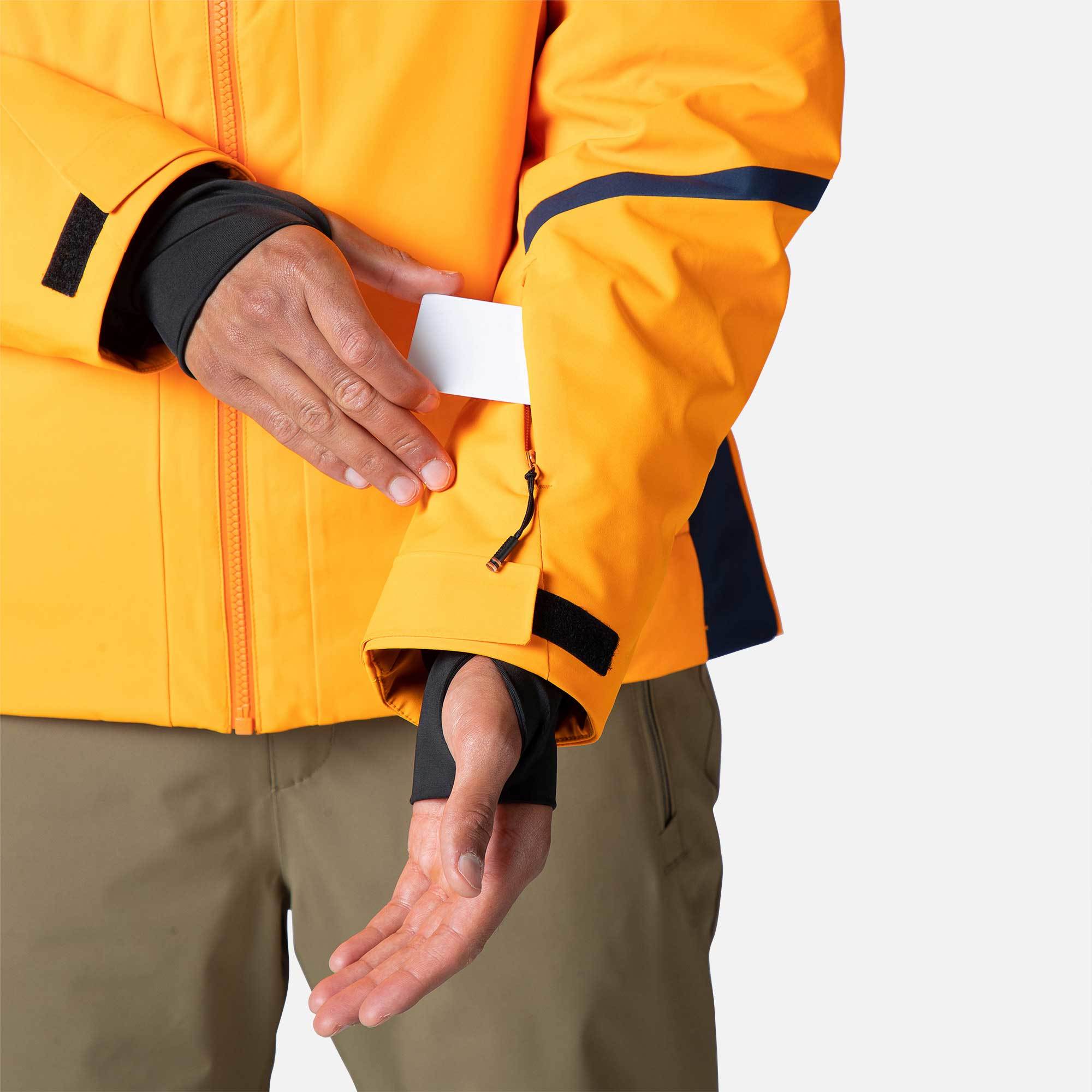 This ski jacket is thoughtfully designed with a dedicated, zippered ski pass pocket on the left sleeve, ensuring quick and easy access at lift gates. This convenient feature allows skiers to move smoothly through checkpoints without the hassle of removing gloves or unzipping main pockets, enhancing both efficiency and comfort on the slopes. With this functional detail, the jacket is tailored for the avid skier who values practicality and streamlined experiences in winter gear.