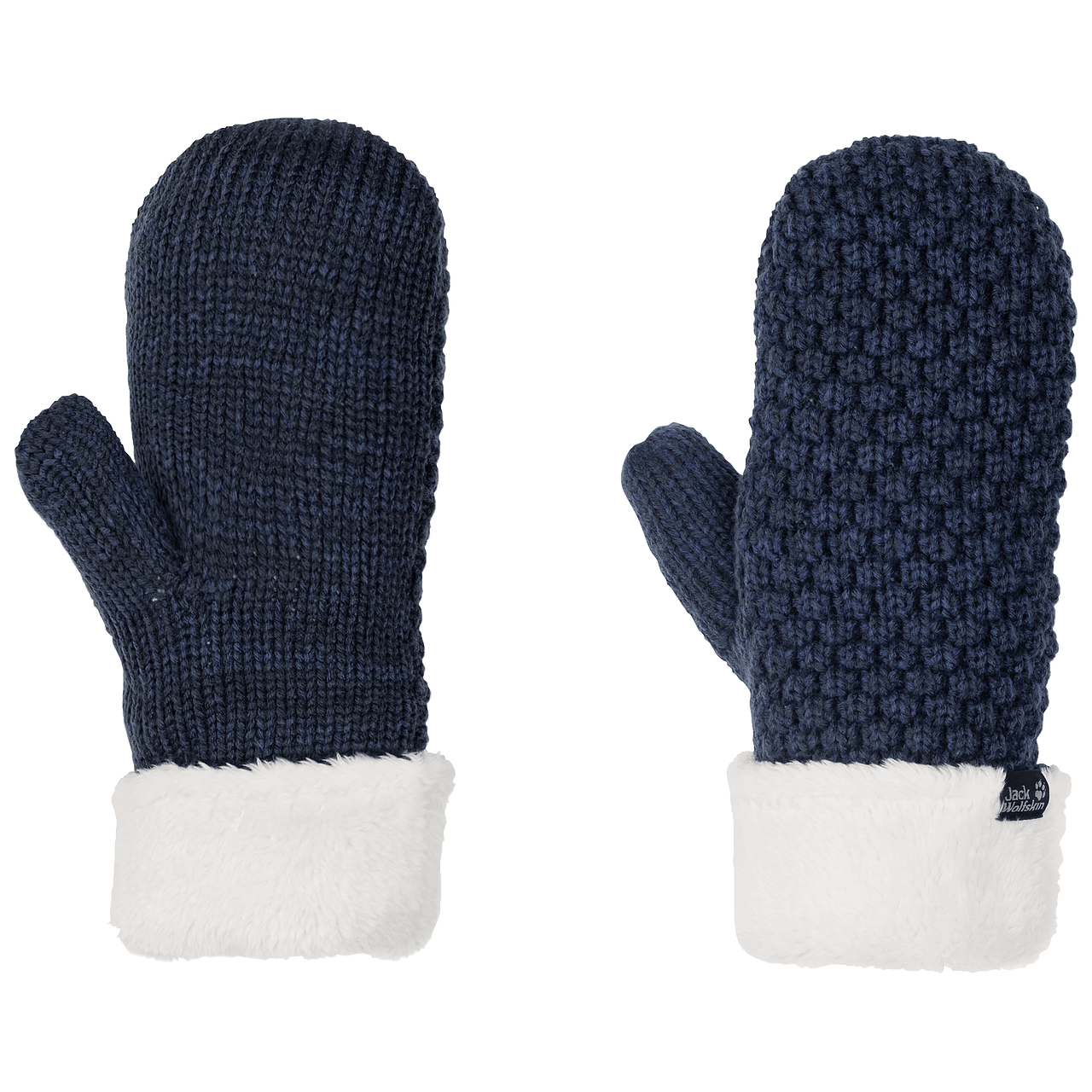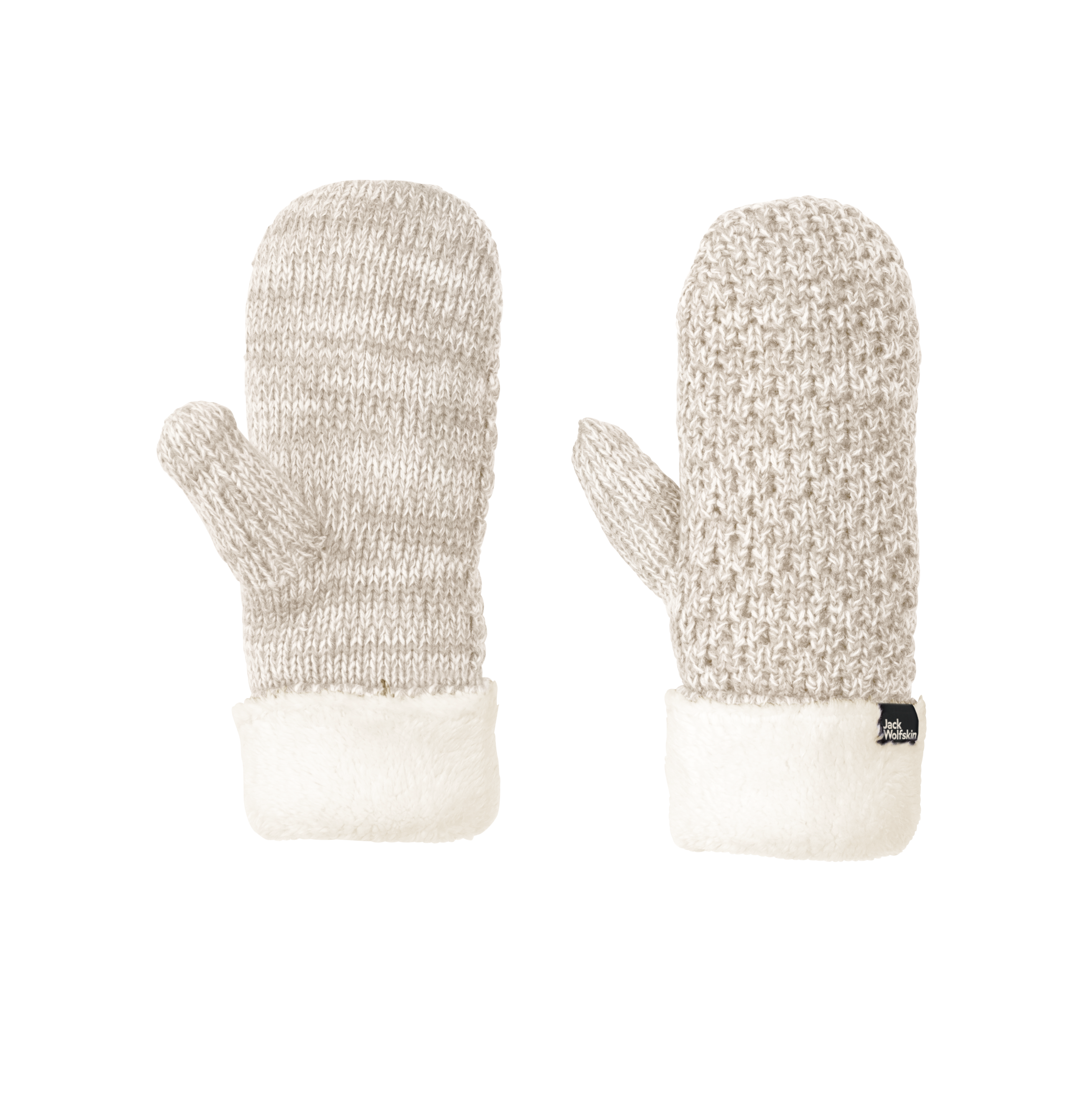 Knitted mittens with synthetic lambswool lining.