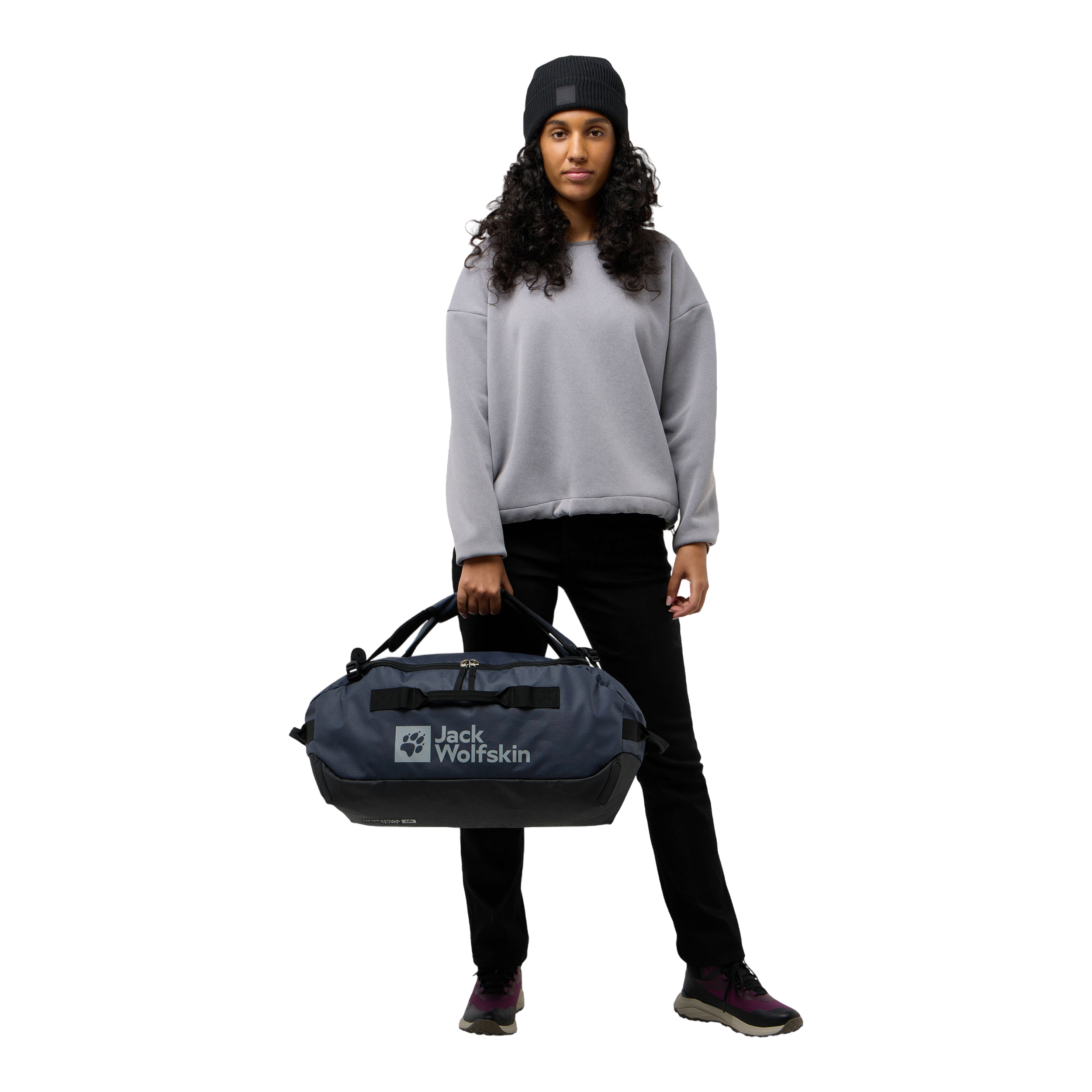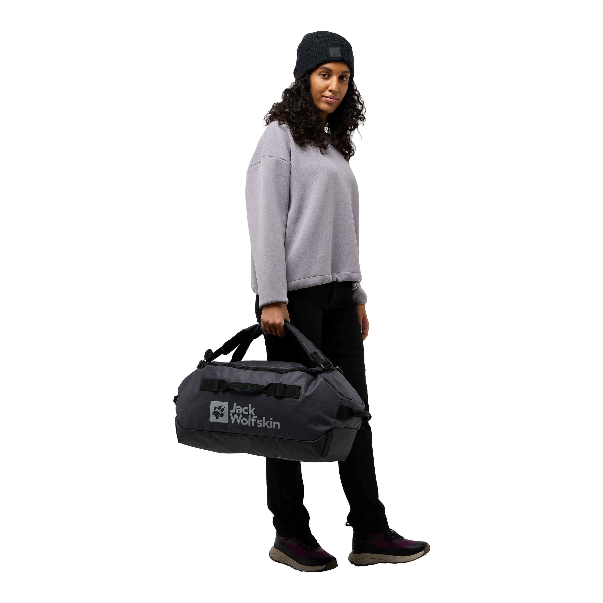 Made from a durable, waterproof and abrasion resistant Cross Rip 300D recycled polyester, the ALL-IN DUFFEL 35 is ready for global adventures. It's PFC and PVC free, GRS and Bluesign certified, and coated on both sides of the fabric to ensure maximum waterproofness. Its external dimensions fit airline cabin bag size limits, and detachable shoulder straps offer multiple carrying options. It also packs into an included packing bag.