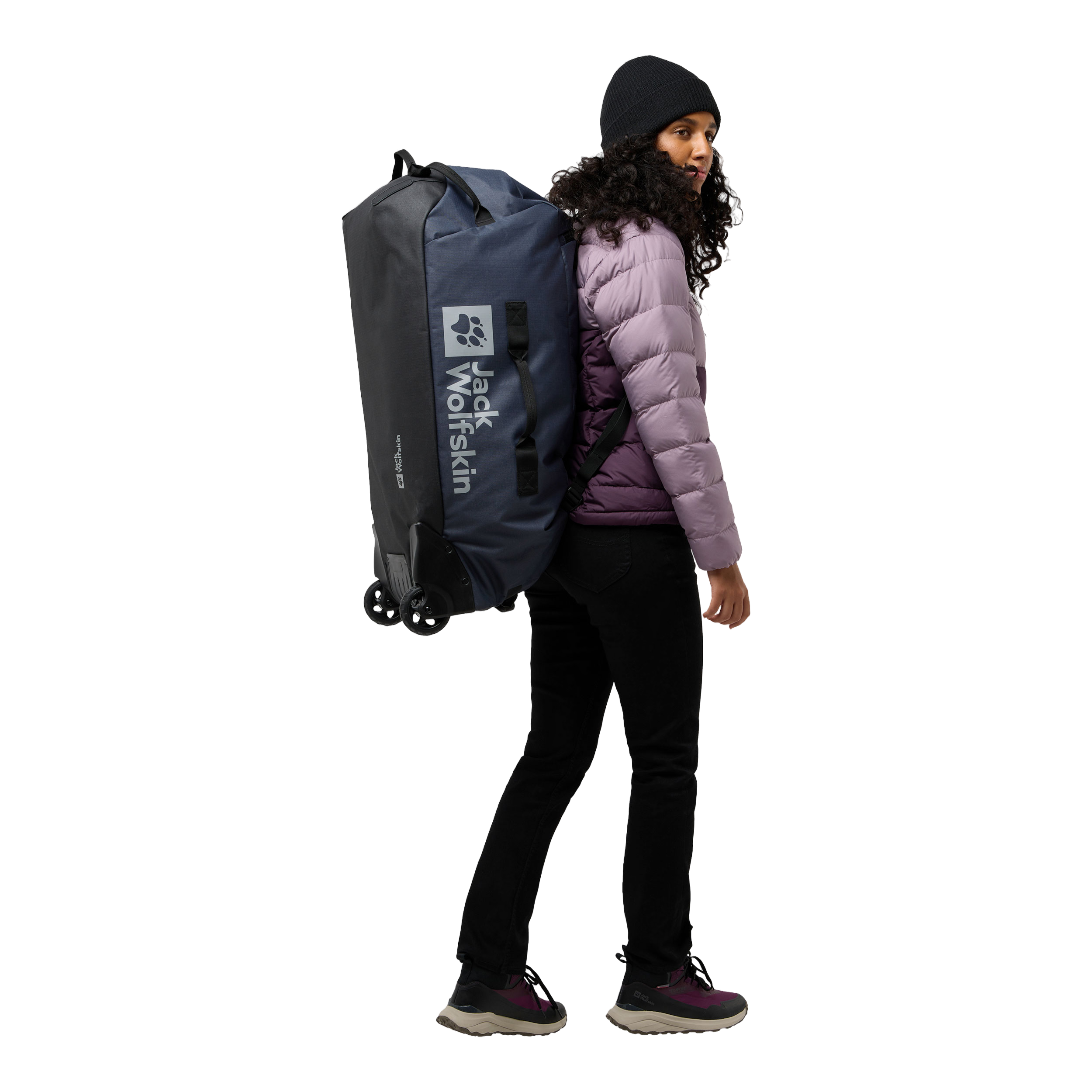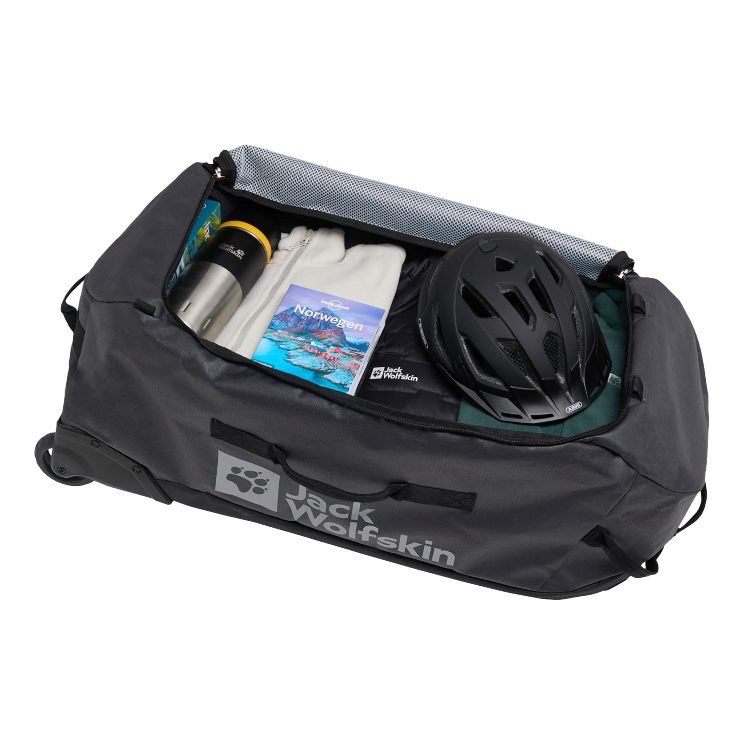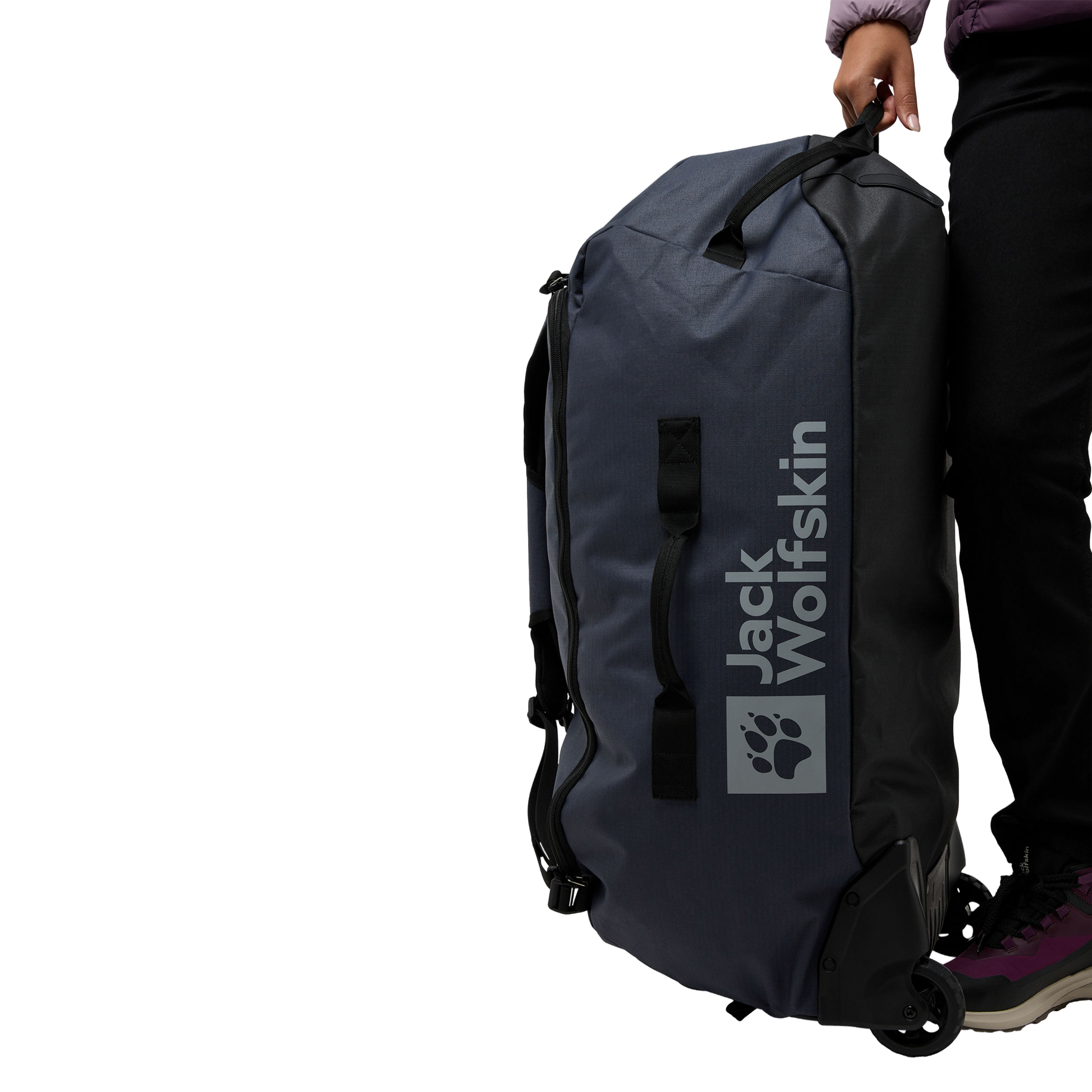 This duffel is designed for effortless manoeuvrability with smooth-rolling wheels and a reinforced handle, ensuring ease across airports, stations, and even rugged terrain. For added versatility, its standard wheels can be swapped for oversized off-road options, enhancing durability and adaptability for any travel environment.