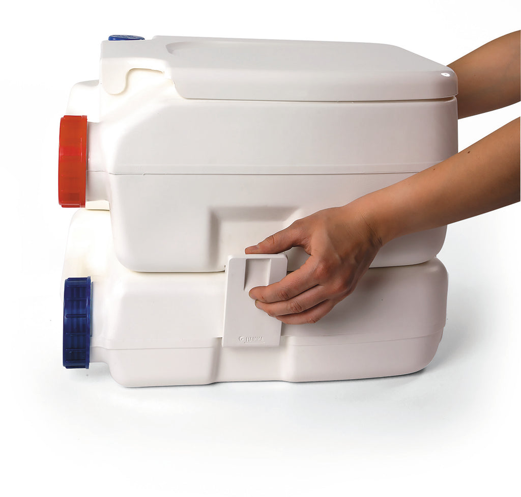 Fiamma Bi-Pot is a simple, strong self-contained fresh water flush portable toilet. A very simple system that is both strong and easy to clean. Compact, it can be completely dismantled, including the valve, for thorough and total cleaning.Sturdy and solid handle for easy transportation. Large waste cap: no drainpipe, emptying is easy and hygienic, no clogging. Handy side clips to connect the upper and lower tanks.