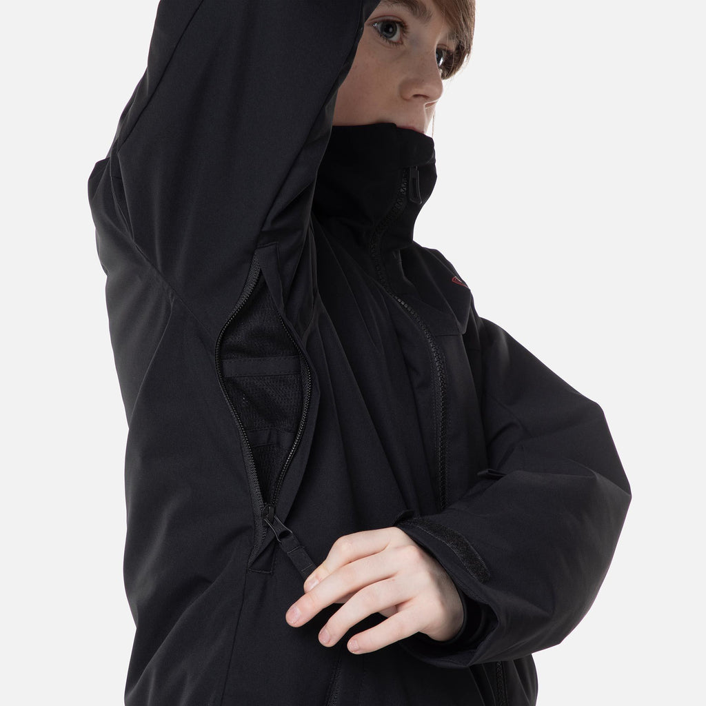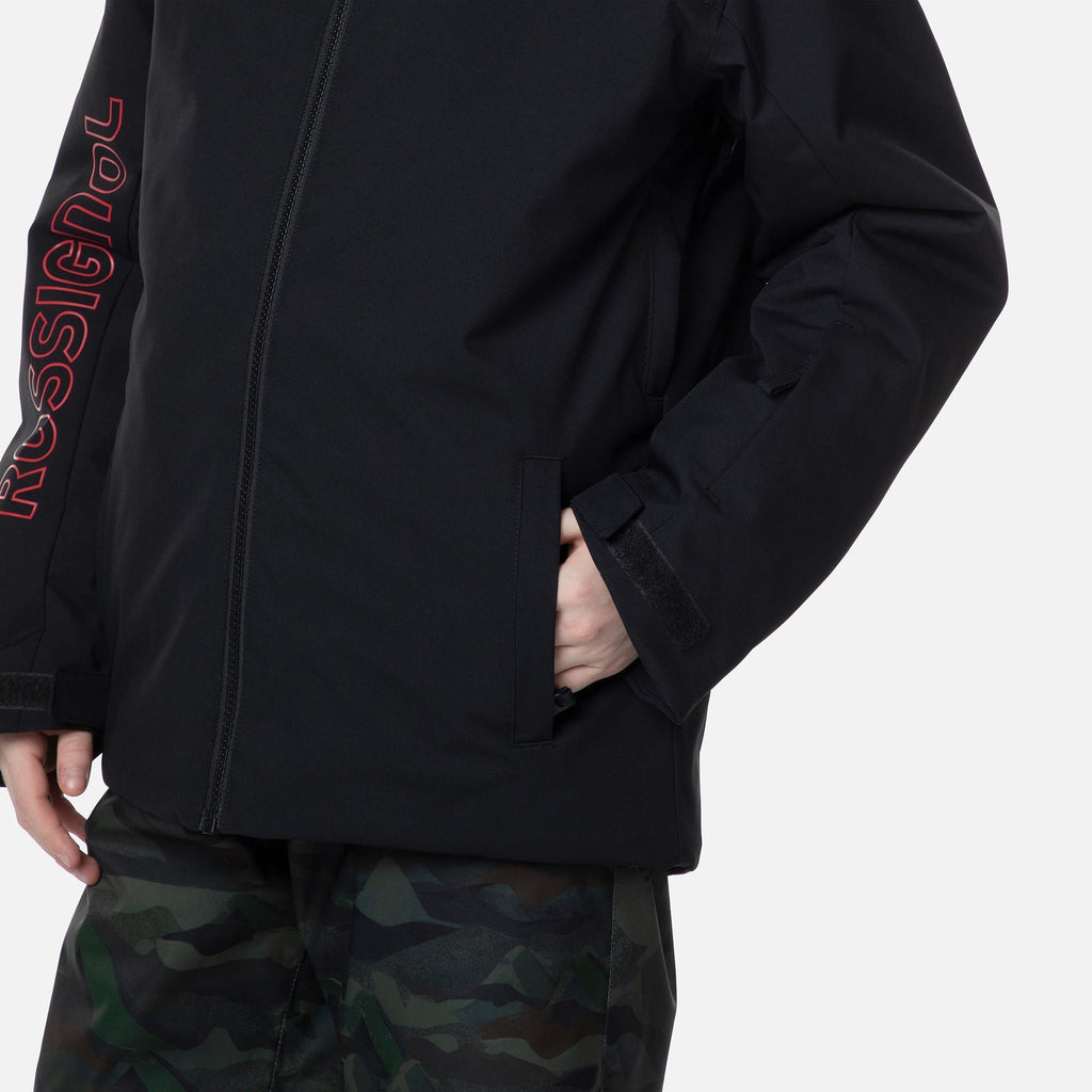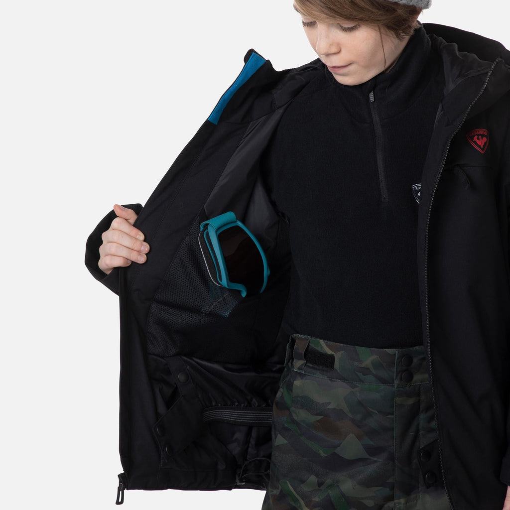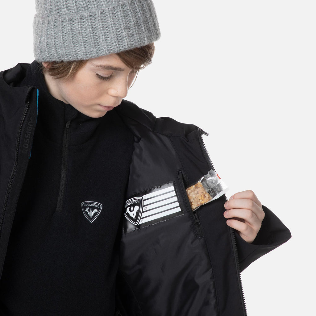 Exploring the mountain becomes more enjoyable when young adventurers stay warm and dry. The boy's Rossi Ski Jacket is designed to block out cold air and heavy precipitation, allowing them to carve up the slopes for longer periods. Featuring a breathable-waterproof membrane and sealed seams, it effectively keeps the elements at bay, while synthetic insulation retains body heat for lasting warmth. Practical details such as a dedicated pass pocket, storm-proof hood, and adjustable cuffs add extra protection and convenience, making this jacket an ideal companion for any mountain adventure.