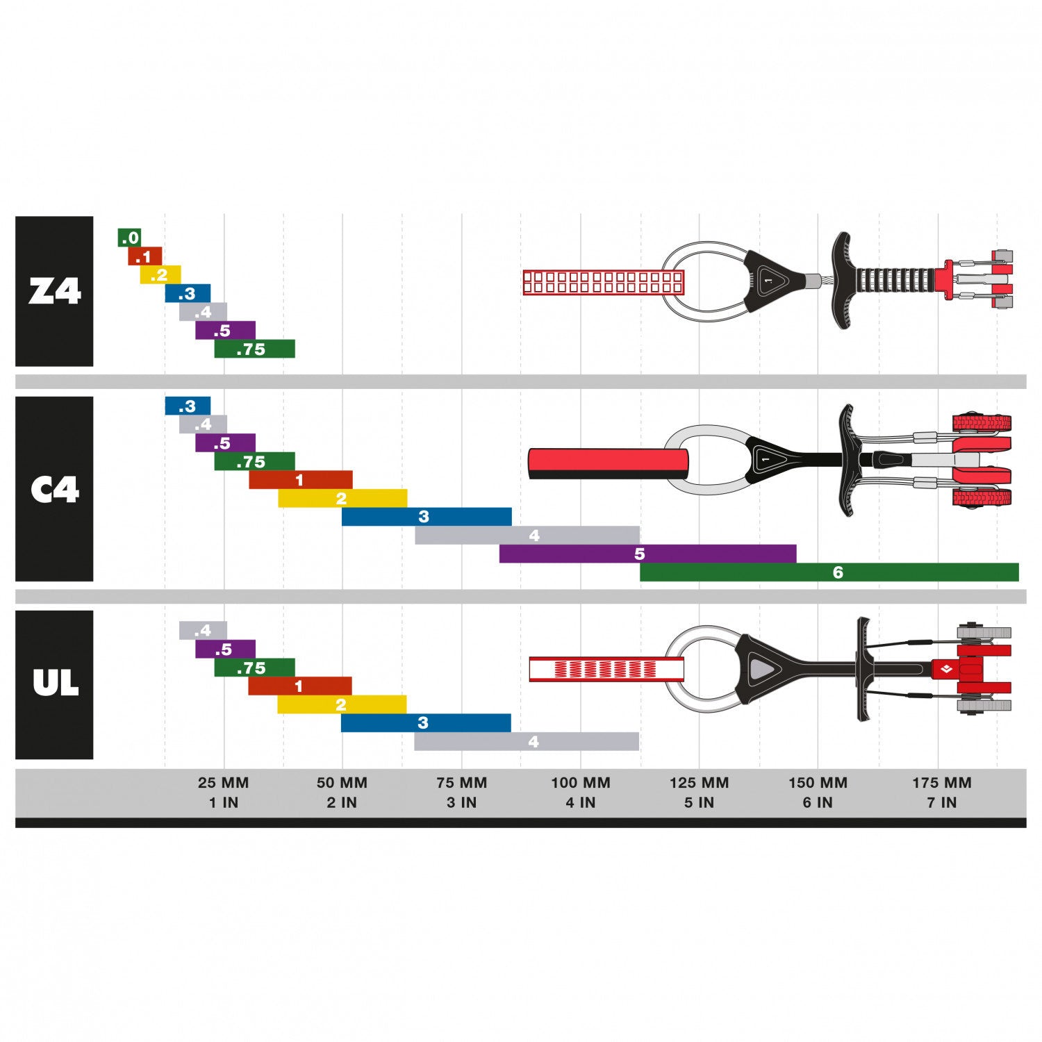 The gold standard for camming units, Black Diamond Camalots' double-axle design allows retraction of larger cam lobes, giving them a much larger expansion range than traditional single-axle units. They are lightweight, the cable loop and trigger are easy to grab, and our patented slings are large enough to manipulate with gloves. Accept no substitutes.