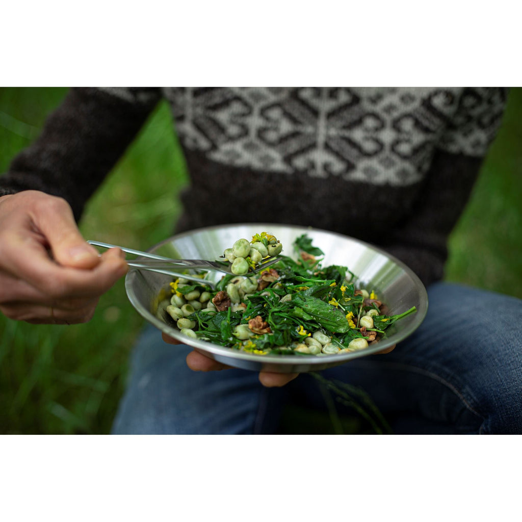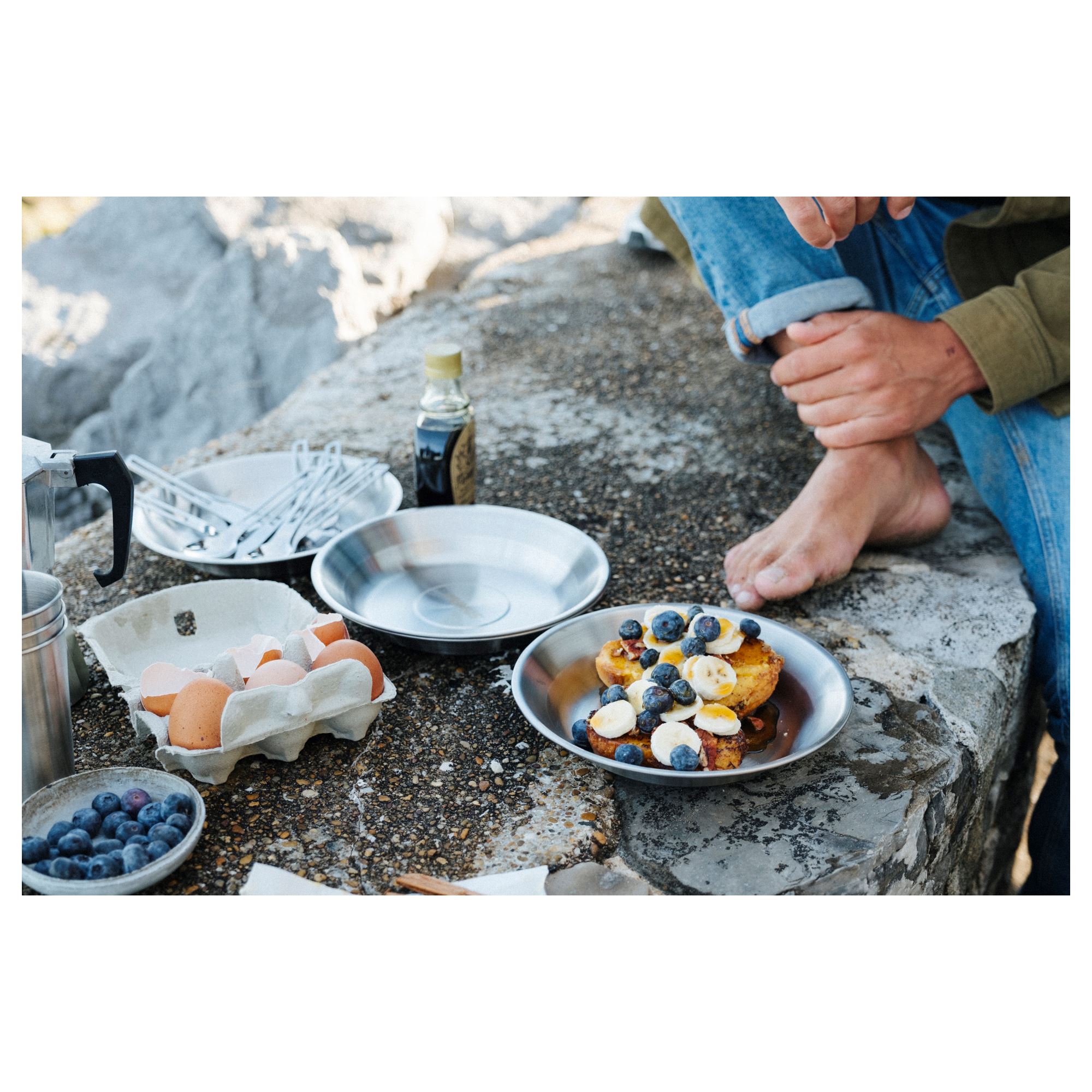 Durable and everlasting Campfire plates in food grade 18/8 stainless steel. 21 cm in diameter with high sides to make outdoor eating more comfortable. Doesn’t retain or impart flavors.