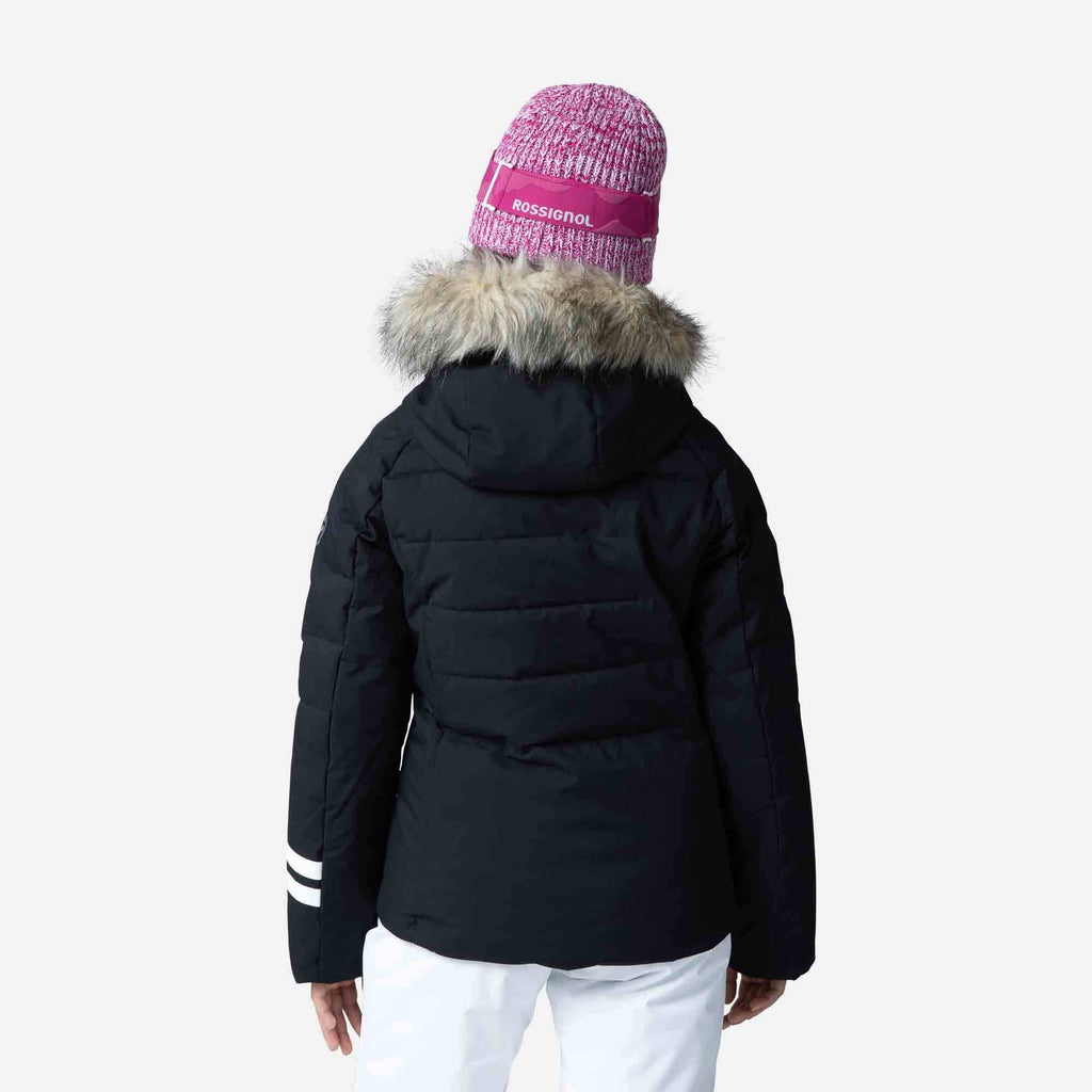 This ski jacket offers an adjustable fit with a versatile design featuring a removable hood and detachable fur trim, allowing users to customize their style and comfort for varying weather conditions. Ideal for both on and off the slopes, this jacket combines functionality with refined aesthetics, providing the flexibility needed for high-performance skiing and après-ski activities alike.