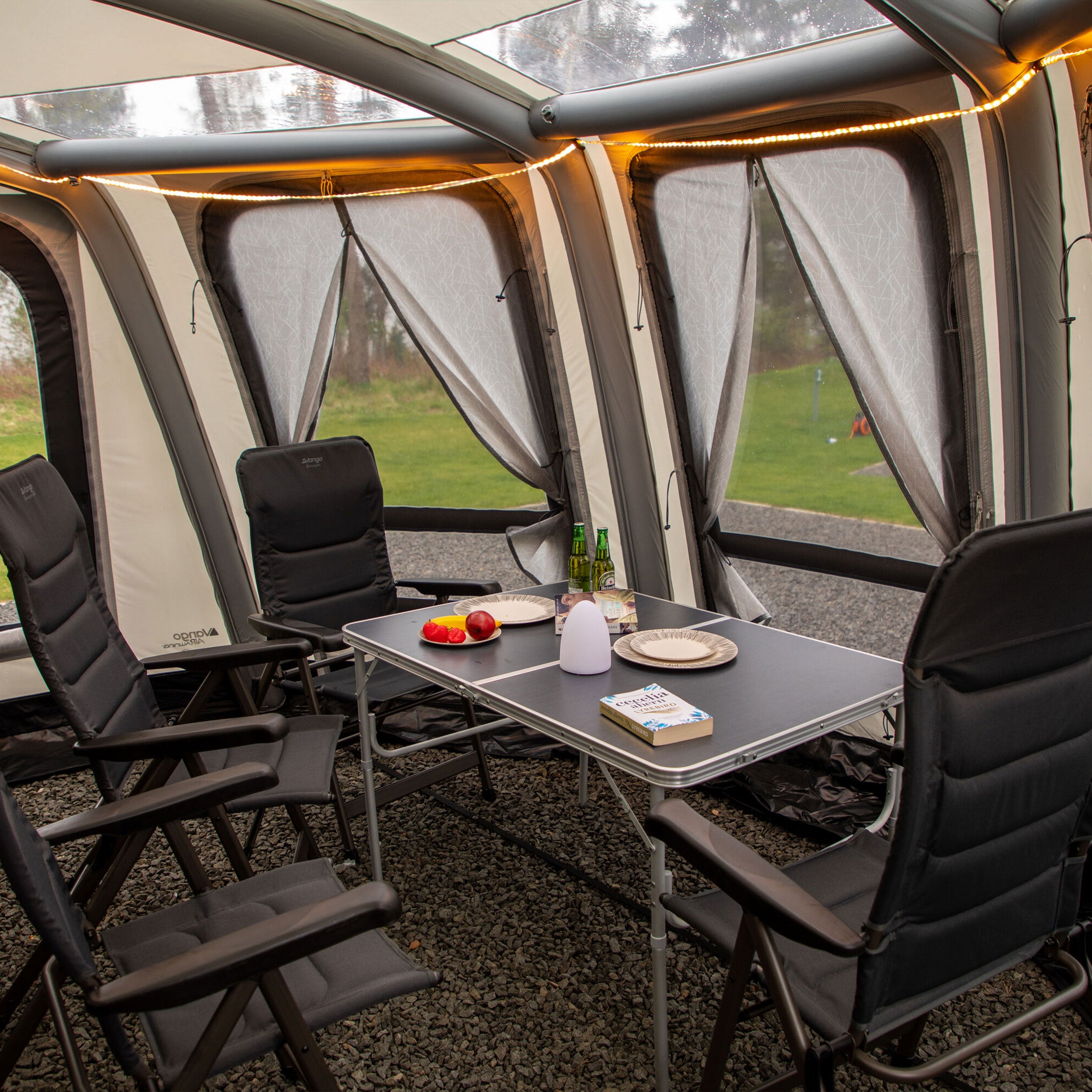 The Granite Duo 120 has a large granite effect table top and can seat up to 6 people comfortably. Simply adjust the legs to stand at coffee or dining table height and alter the feet to ensure a stable surface on uneven ground. It's ideal for use in your garden or camping as it's lightweight and compact, making it easy to store and transport to and from the campsite.