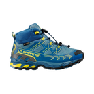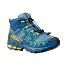 The Kid's Ultra Raptor II Mid GORE-TEX® Boots bring the performance of La Sportiva’s iconic Ultra Raptor series to young adventurers. Built with a waterproof GORE-TEX membrane for colder conditions, they feature a breathable mesh upper with thermo-adhesive microfiber reinforcements and anti-abrasion protection for lightweight durability. A recycled Ortholite® Hybrid insole and vegan-friendly materials enhance comfort and sustainability, while the FriXion® Blu sole provides reliable grip and durability on trails and dirt paths — perfect for everyday exploration.