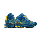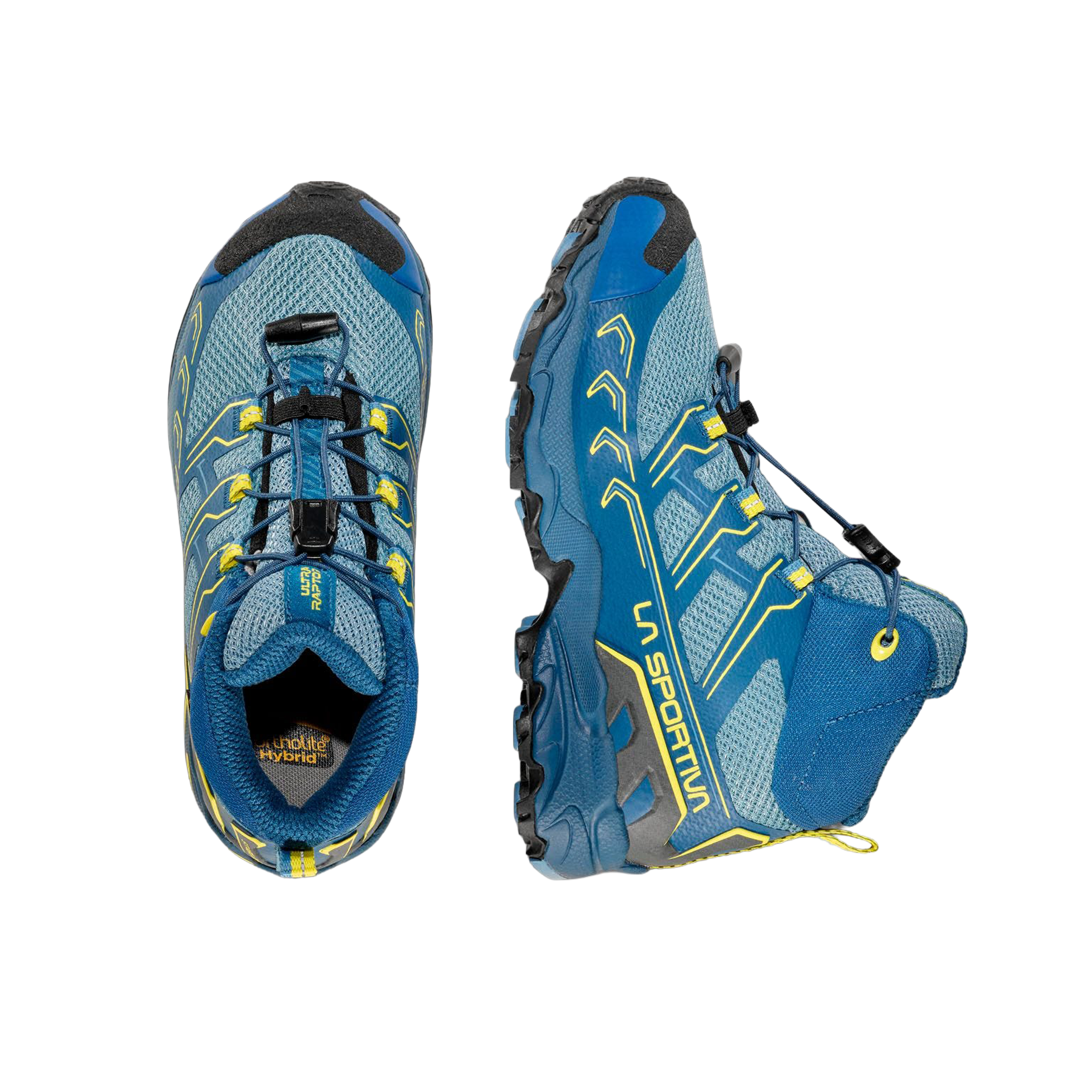 Hiking boot realized with GORE-TEX membrane belonging to the Ultra Raptor series designed specifically for kids. Perfect for daily use in the colder months and for walking on dirt roads. The upper is in breathable mesh with thermo-adhesive microfiber reinforcement and anti-abrasion edge for lightness and maximum impact protection. The Ortholite® Hybrid insole is made with recycled components from the manufacturing cycle and each material of the shoe is vegan friendly. The FriXion® Blu compound sole allows excellent grip and durability. Dedicated to our little Velociraptors.