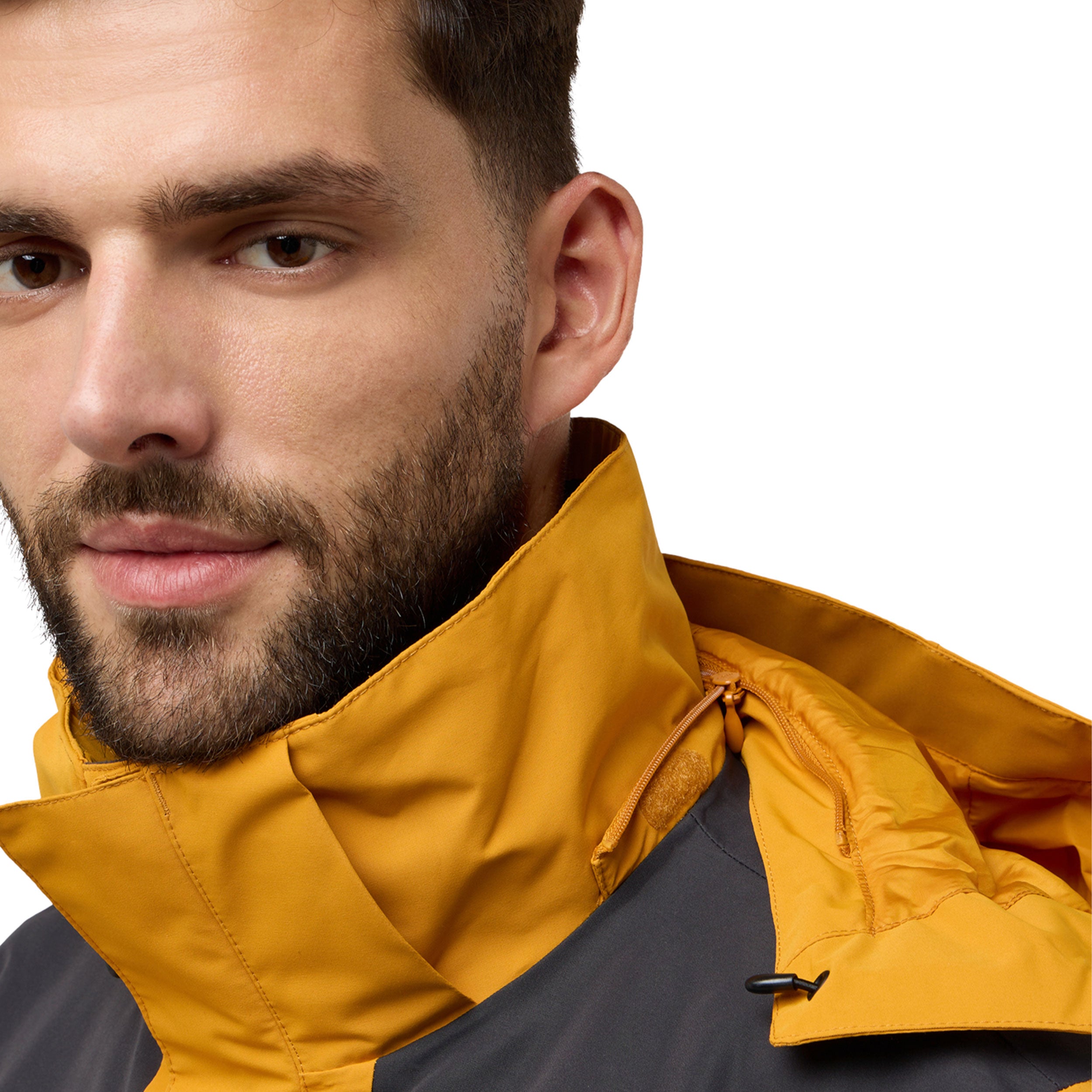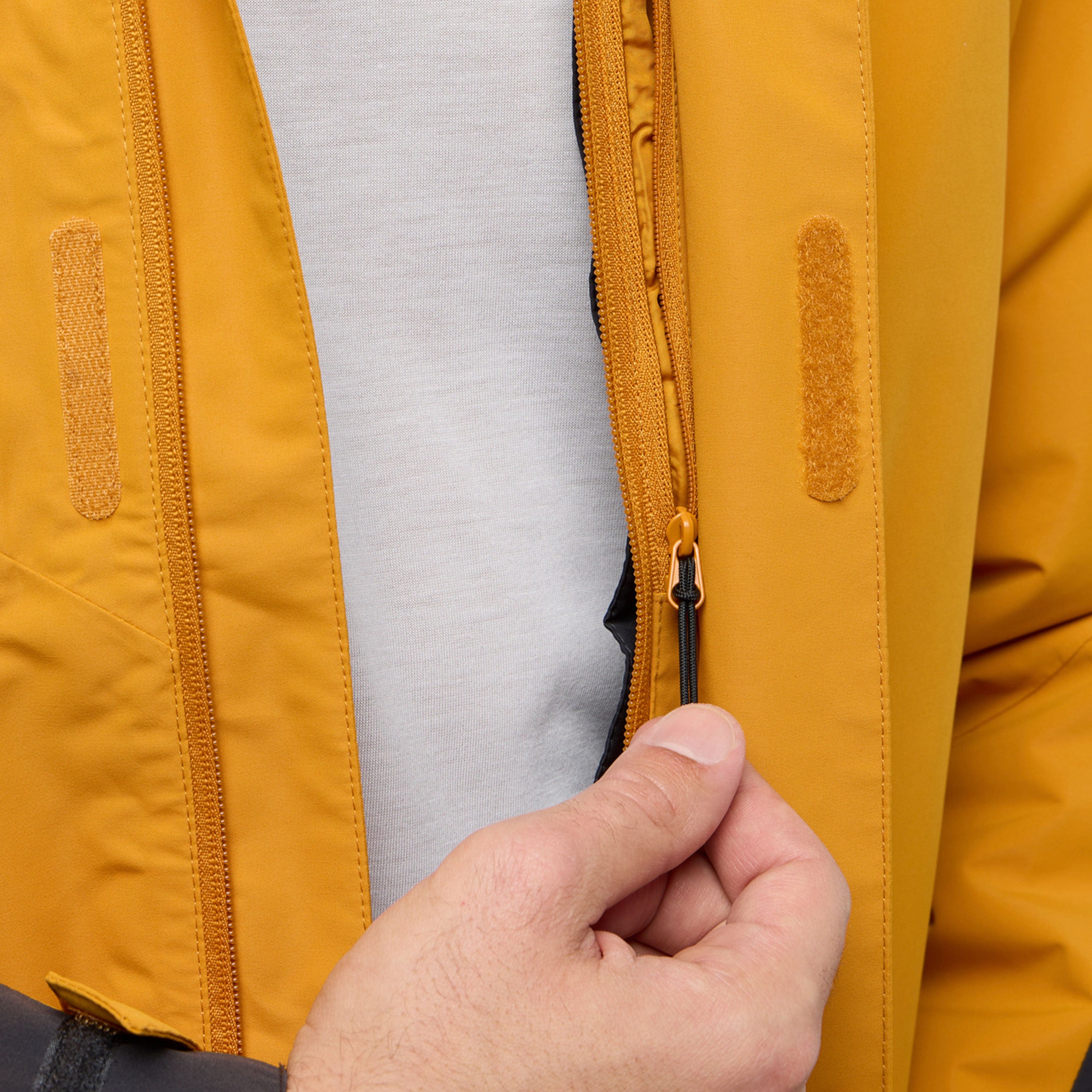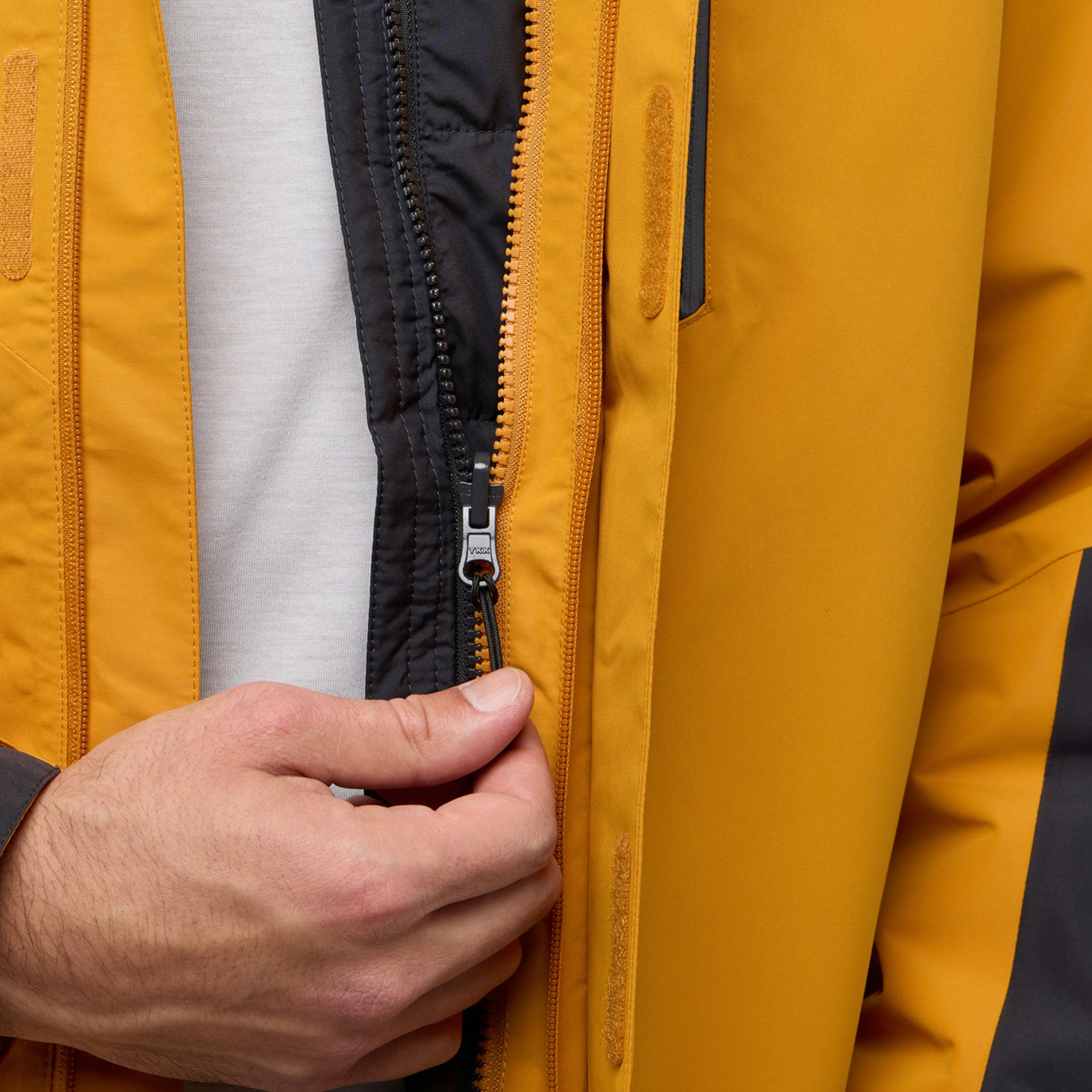 The easy integrated layering system stems from 1983 and was completely revamped in 2022, in order to be lighter, stronger and ever more weatherproof. Jack Wolfskin's 3-in-1 system combines two jackets with zip system: a weatherproof jacket to protect against the rain and an insulating layer that provides warmth and breathability. The jackets can be worn either together or separately, depending on your preference. The front zip on the inner jacket is attached to the second zip on the outer jacket; fastening loops on the sleeves and at the neck prevent it from slipping.