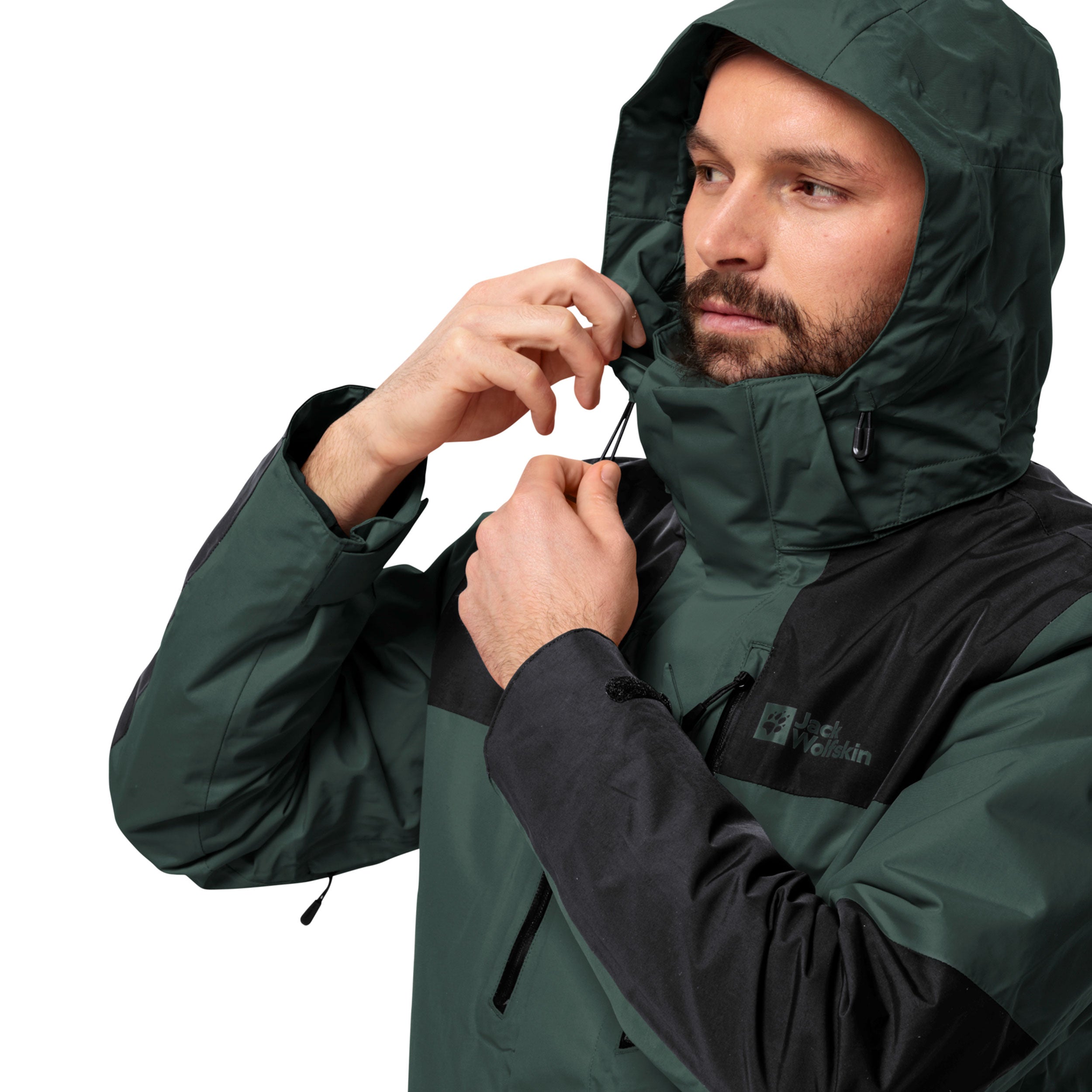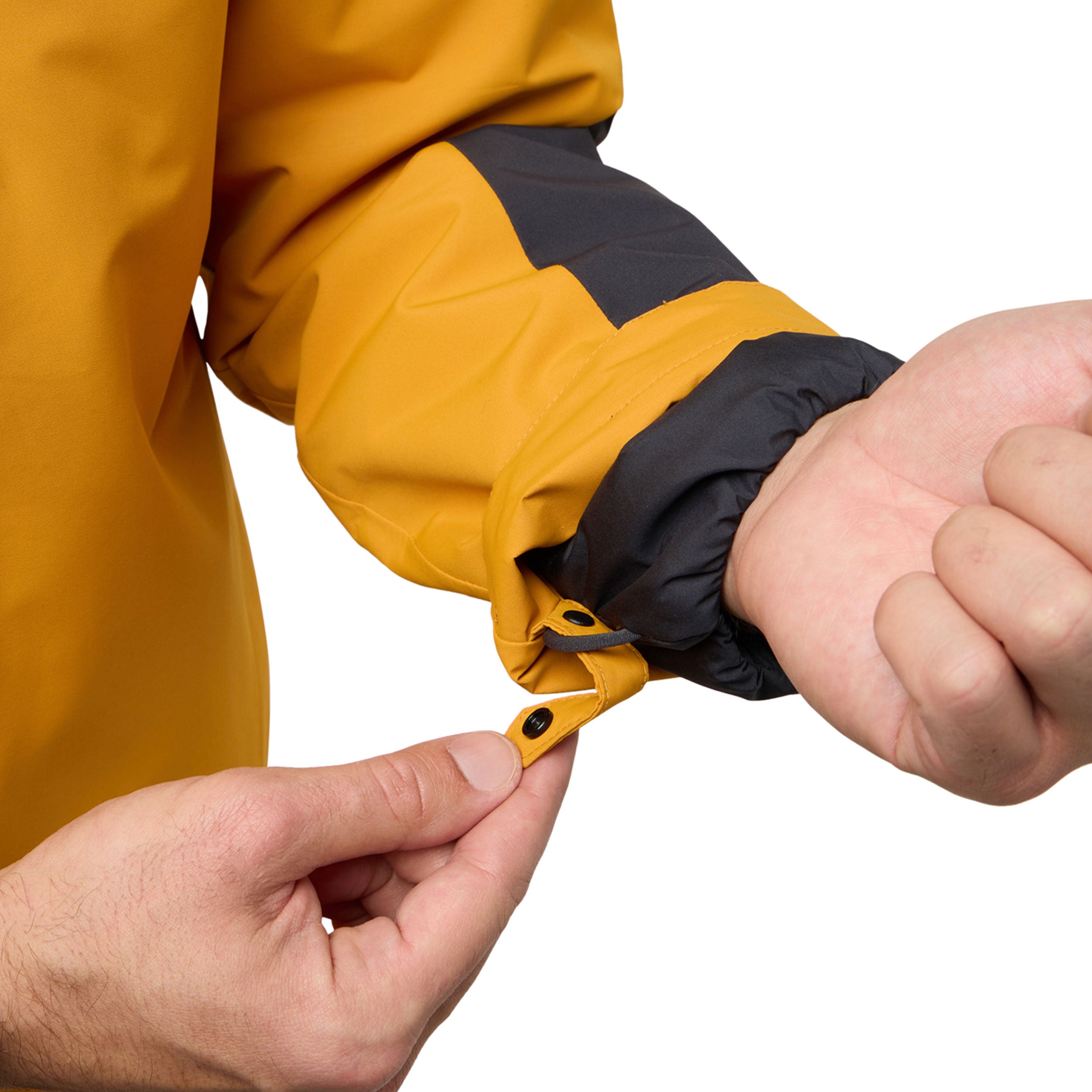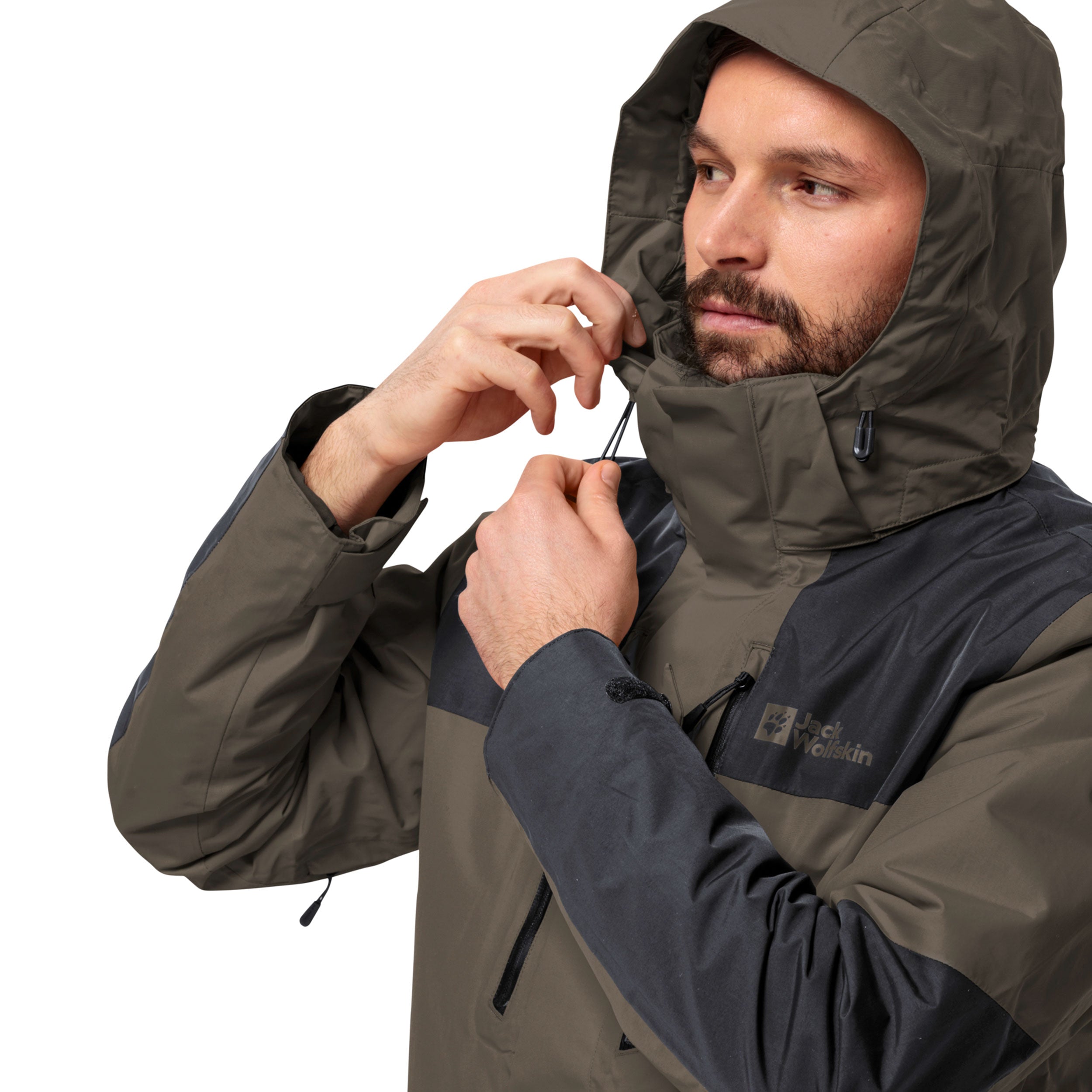 The easy integrated layering system stems from 1983 and was completely revamped in 2022, in order to be lighter, stronger and ever more weatherproof. Jack Wolfskin's 3-in-1 system combines two jackets with zip system: a weatherproof jacket to protect against the rain and an insulating layer that provides warmth and breathability. The jackets can be worn either together or separately, depending on your preference. The front zip on the inner jacket is attached to the second zip on the outer jacket; fastening loops on the sleeves and at the neck prevent it from slipping.