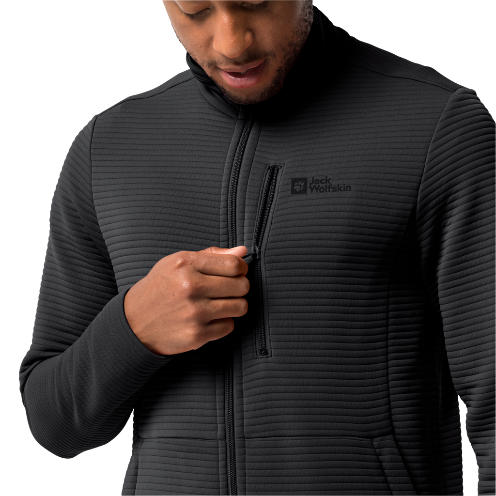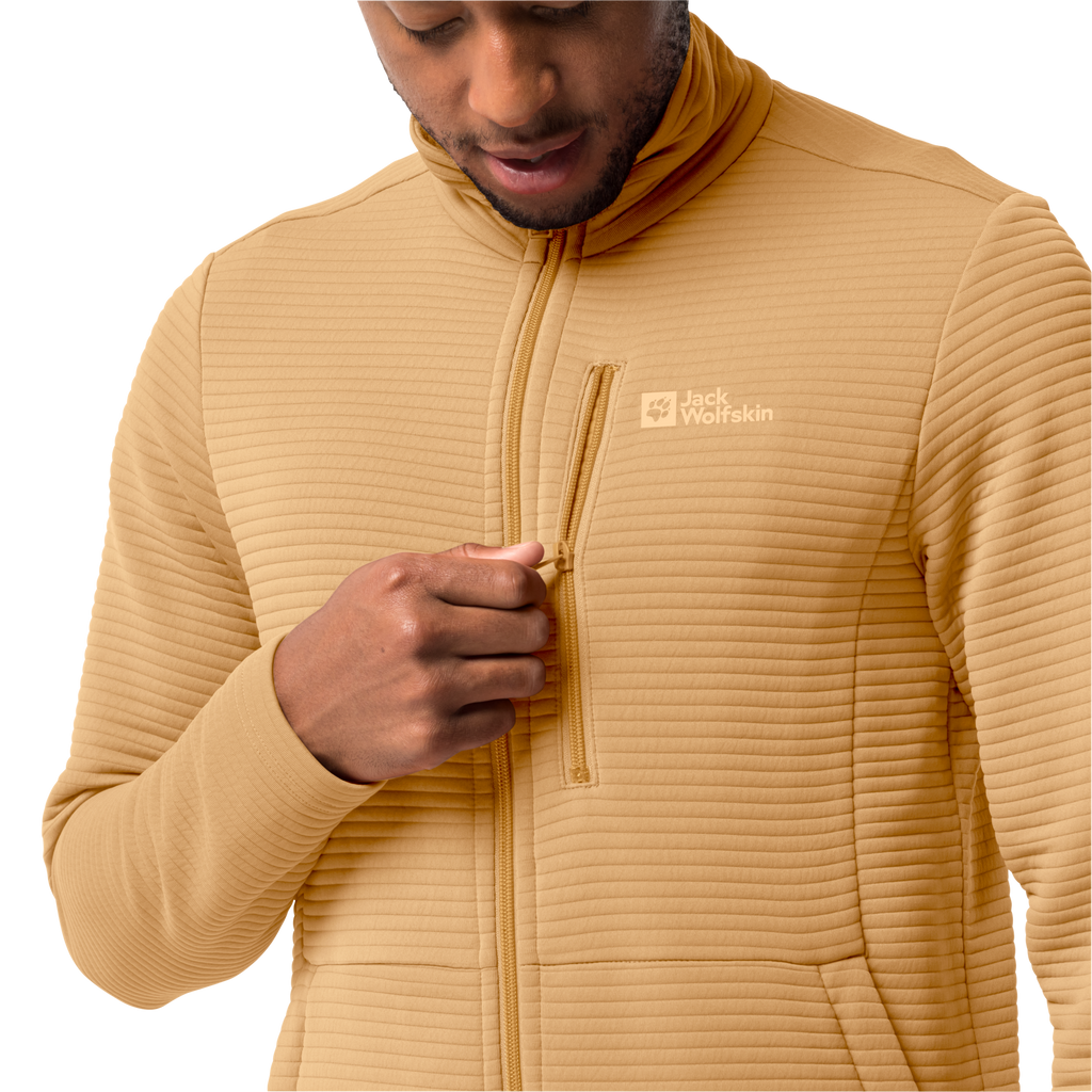 As daylight fades, you sit by your tent and look forward to a dawn start and another great summer’s day. At times like these, your MODESTO FULL-ZIP FLEECE JACKET will keep you snug and warm. This stretch fleece jacket has a stylish ribbed exterior.
