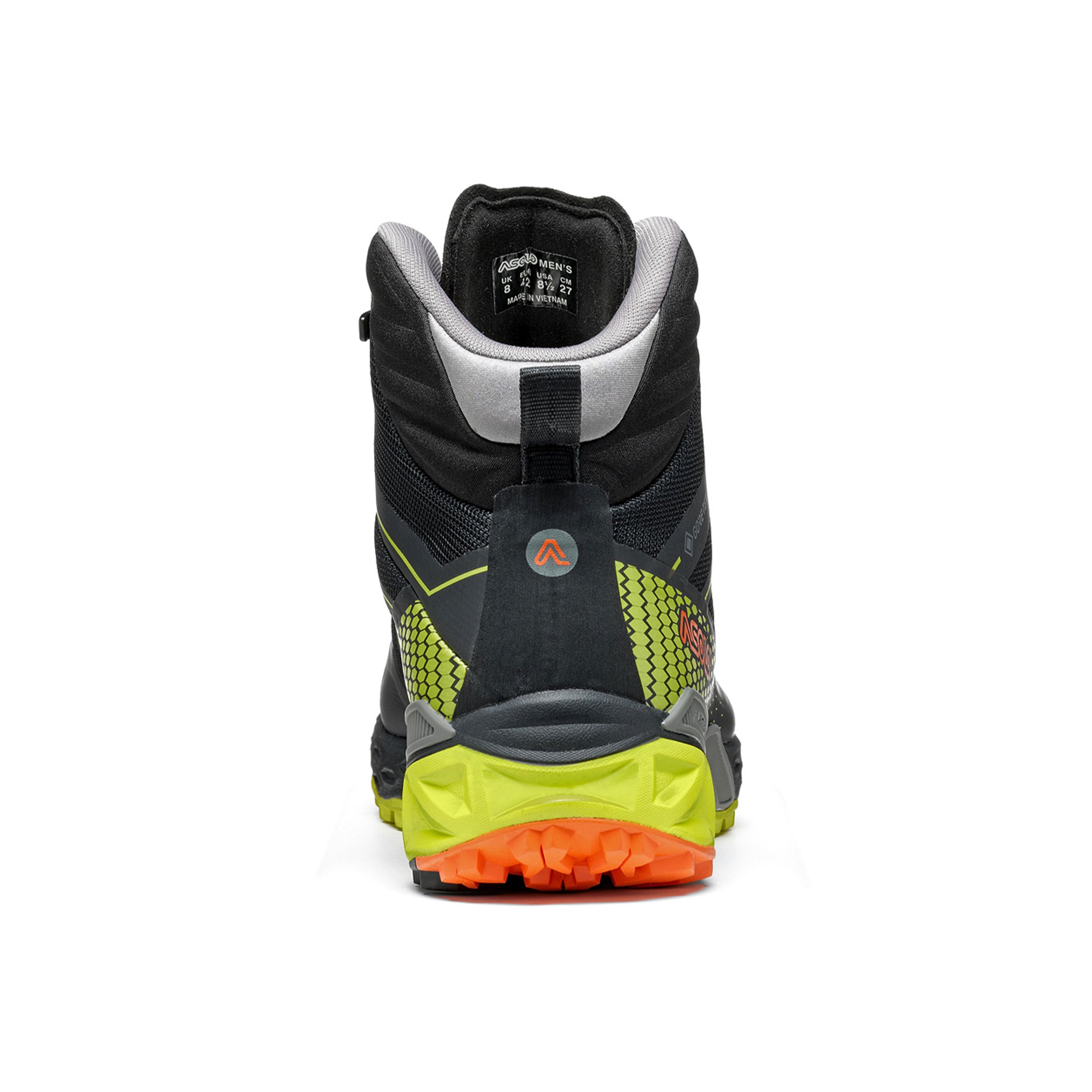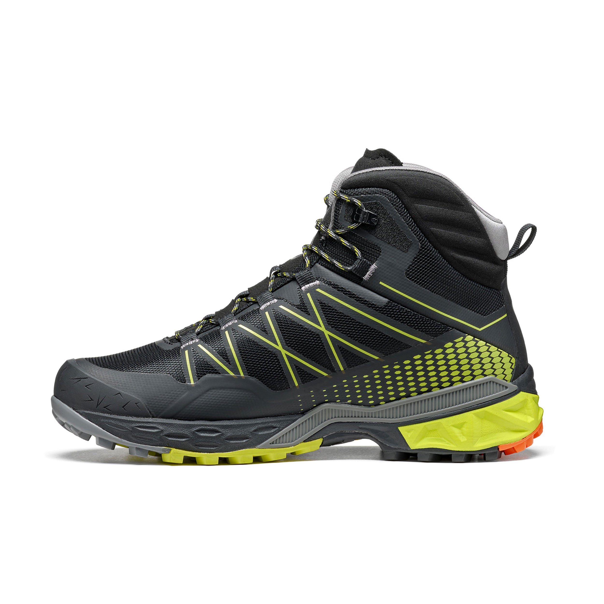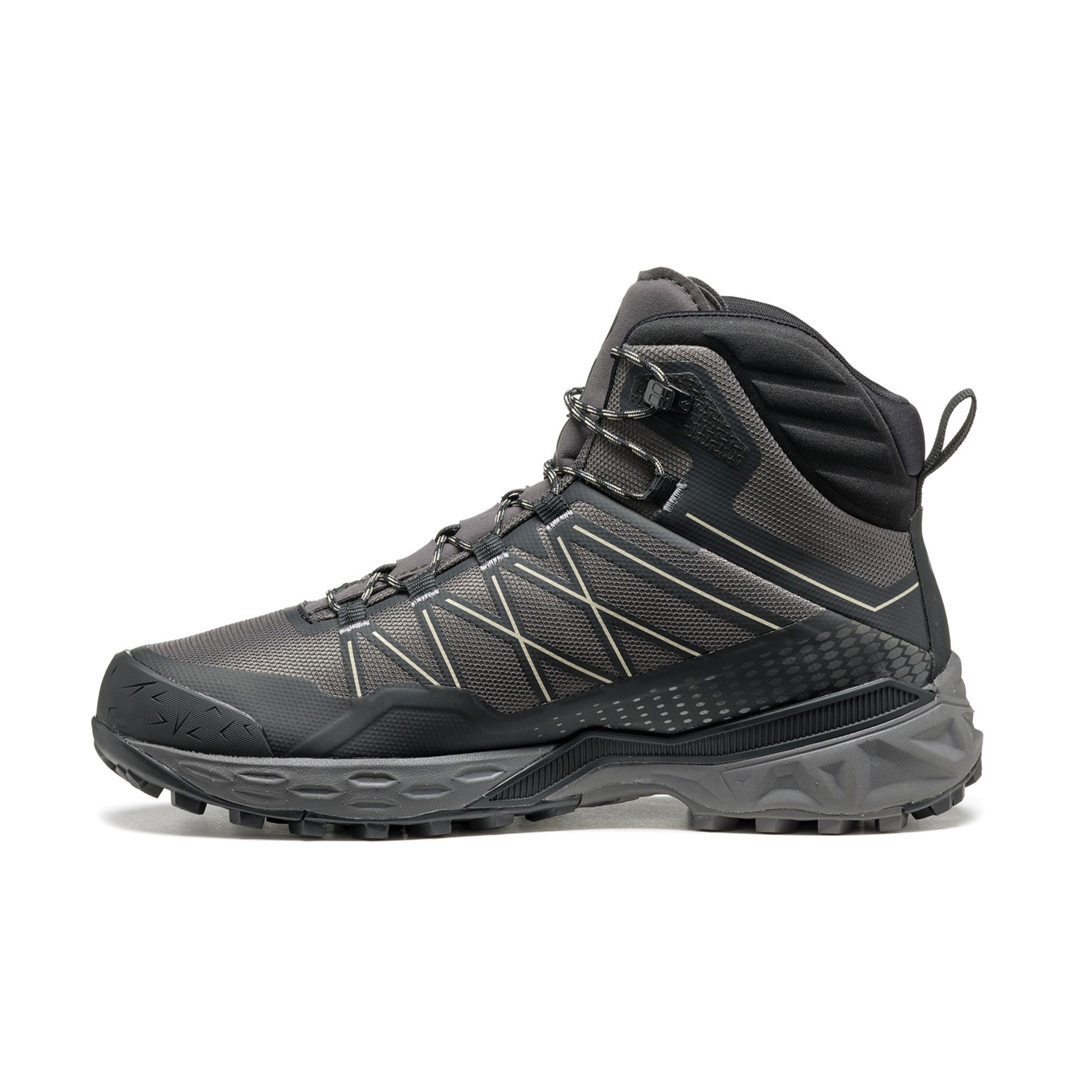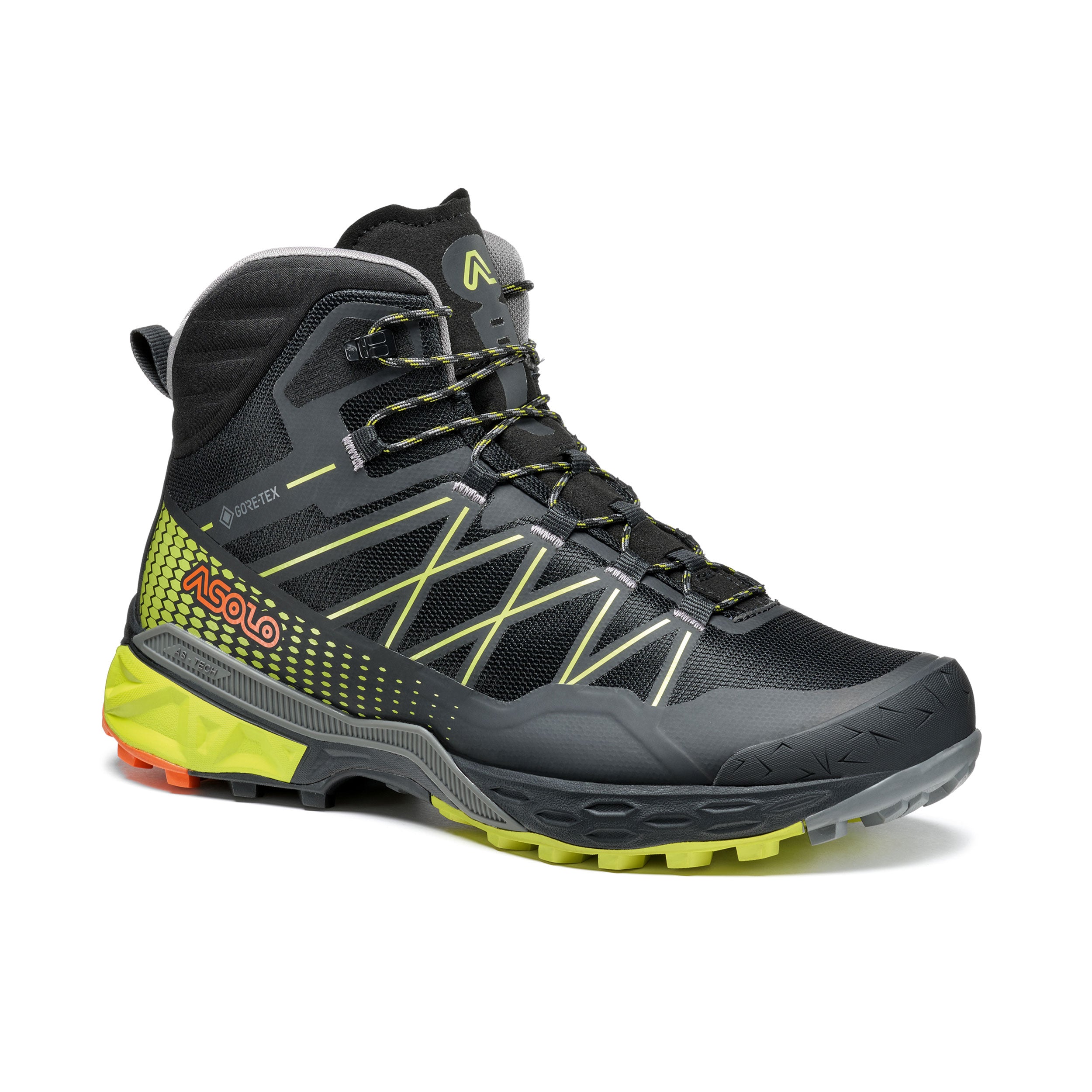 Mid-cut Tahoe Gtx in polyester upper reinforced with Tpu material offers protection and comfort while the Gore-Tex Extended Comfort Footwear lining guarantees waterproofness and breathability. The mono-density Eva midsole assures the stability, support, comfort and cushioning. The AS-Tech technology is designed and incorporated to give structure and torsion stability. The Asolo Cross outsole has a self cleaning design and assures the best traction and grip, thanks to the Sigma Grip compound, developed by Asolo. To complete the model a Tpu cap for an additional protection, the thermo-shaped tongue to guarantee the best fit and the webbing lacing system to assure a precise and fast lace up.