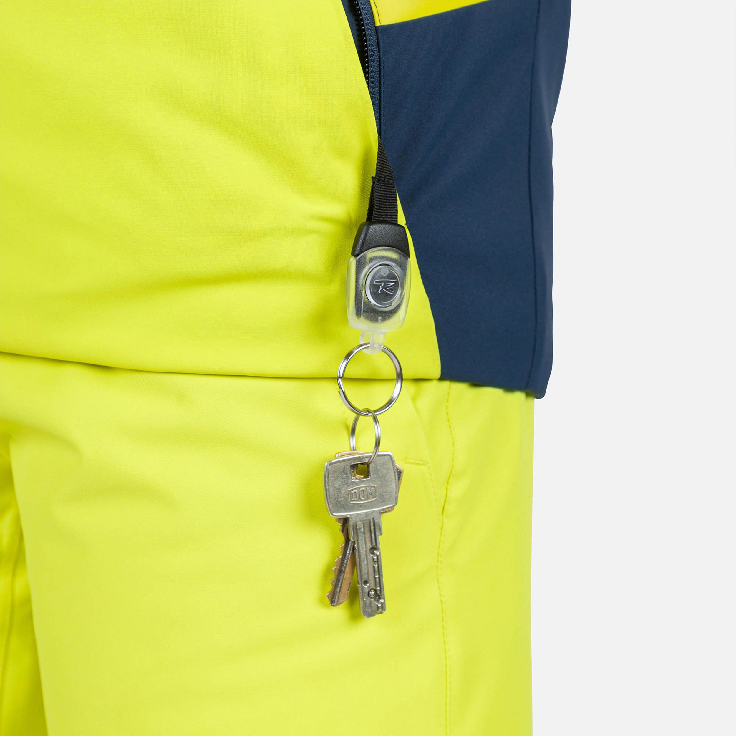 This ski jacket features a built-in key holder conveniently located within the hand pockets, designed with a secure clip for easy attachment and removal. This practical addition ensures that keys remain safe and accessible while offering the flexibility to detach them when needed. Combining thoughtful design with reliable functionality, this jacket provides added convenience for skiers, making it an ideal choice for winter adventures.