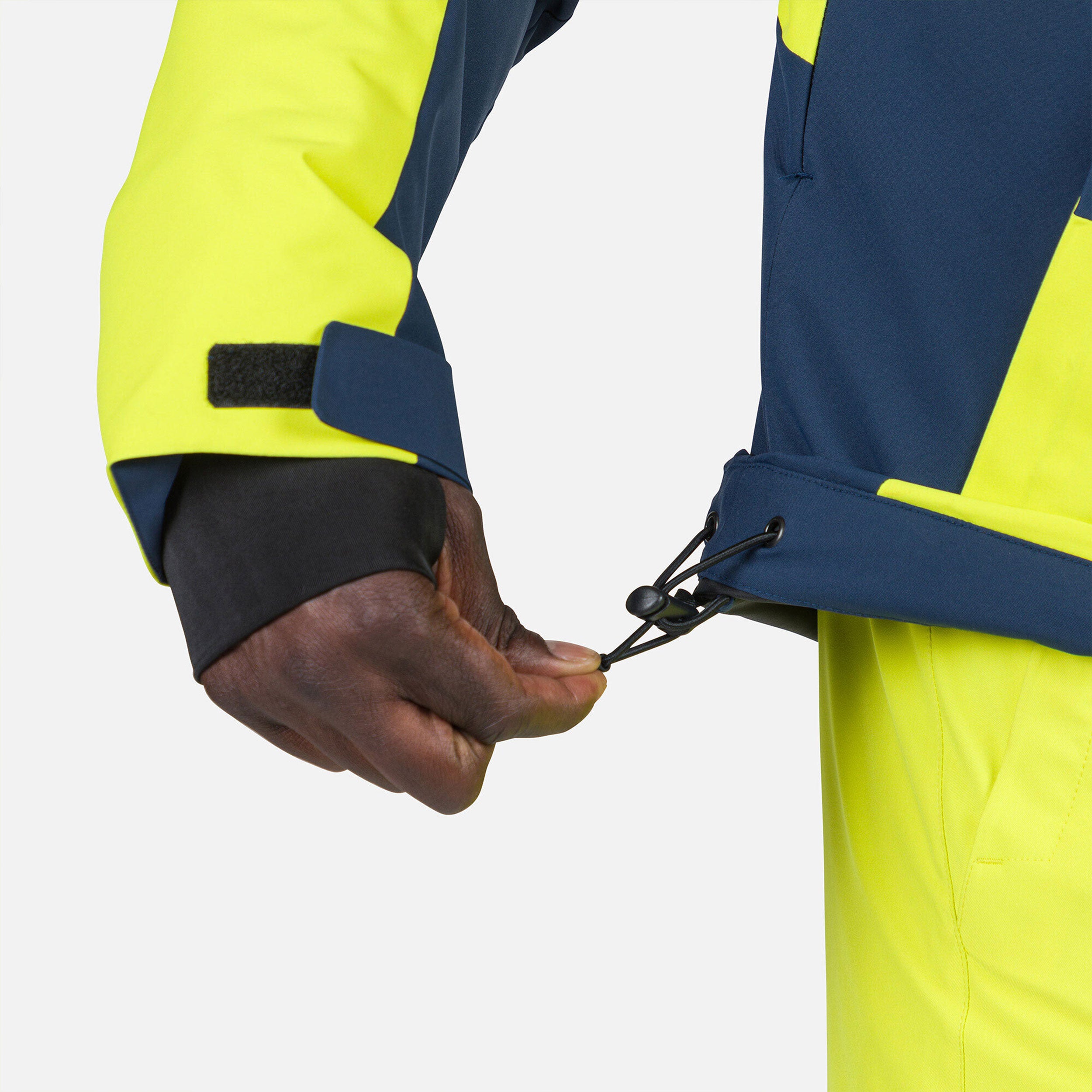 Storm-day aspen glades or bluebird groomers, the men's Rossignol Wispile Ski Jacket combines insulated warmth and storm-shedding protection to keep you comfortable in all weather. Low-profile synthetic insulation focuses warmth around your core to maintain an unrestricted feel. A waterproof, breathable membrane with critically taped seams keeps you dry. Skier-designed details include watertight zippers, a built-in powder skirt, and thumbhole cuffs to further seal out the cold. Zip underarm vents let you regulate your temperature as needed. A signature rooster logo patch reflects Rossignol's alpine legacy.