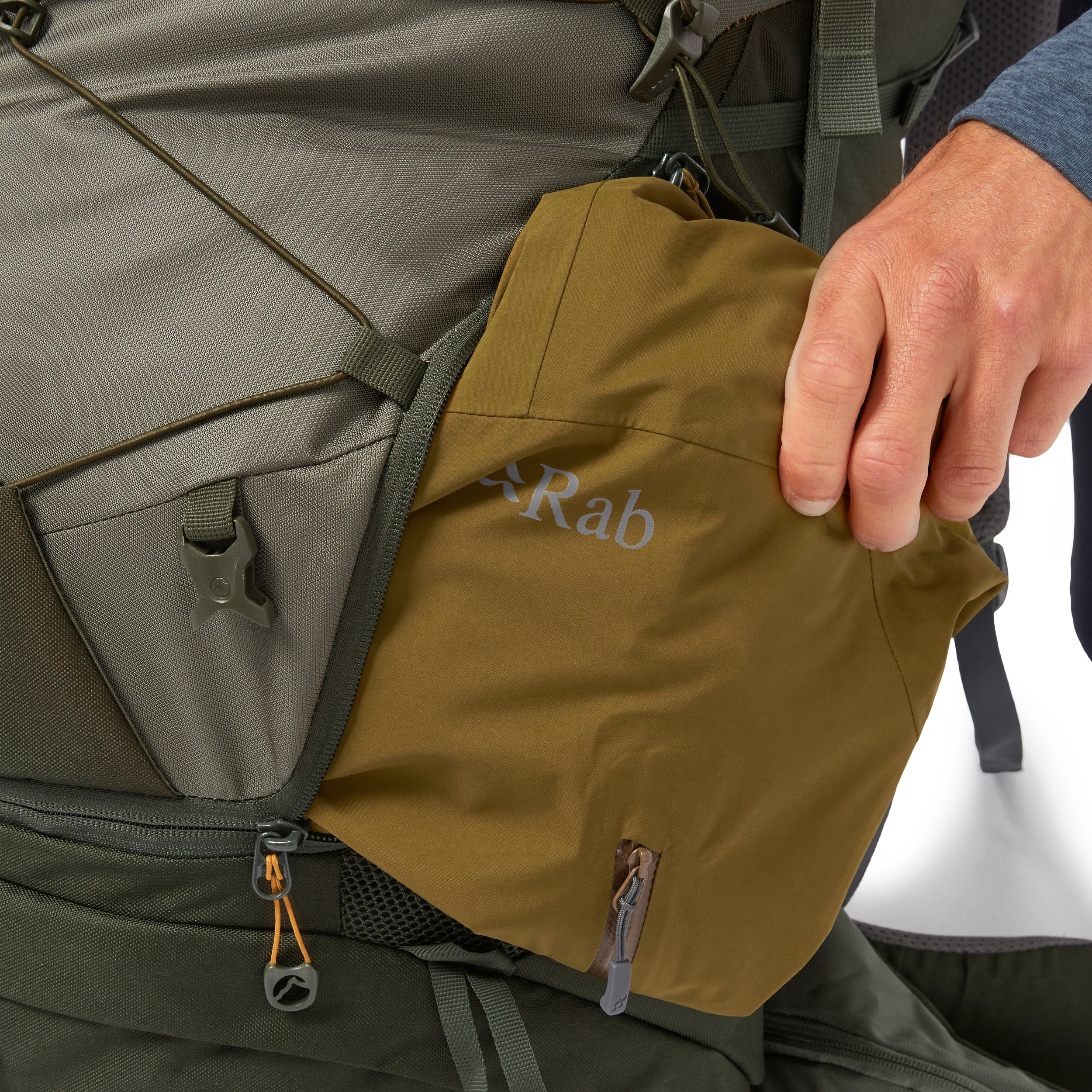 The pack offers easy access to all your kit using the zipped front and lower entry, with an internal divider panel to keep everything organised. The padded hip belt has easy-access pockets which are perfect for keeping snacks or a compass close to hand, while the elastic front bungee is the ideal place for stashing your wet gear. On extended trips you’ll be glad of the base and side compression, which you can cinch to secure your carry as supplies decrease.