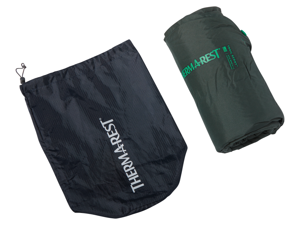Looking for a first pad or a step up in comfort from closed cell foam? Look no further than the 1-inch (2.5 cm) thick, self-inflating Trail Scout. Its 3.1 R-Value will give users three-season warmth, while the premium foam core wrapped in woven-fabric is the same fundamental construction of some of our most durable and high-performance designs. Fitted with our one-way WingLock™ Valve to minimize inflation and deflation time so more time is spent enjoying the great outdoors. This pad is compact enough for forays into the backcountry and thick enough for next-level comfort for those car-camping weekends. Like all Therm-a-Rest pads, the Trail Scout is made in market to minimize the environmental impact of the manufacturing cycle and to ensure the Therm-a-Rest standard of quality that has been the foundation for thousands of rejuvenating nights under the stars. Comes with a compact stuff sack.