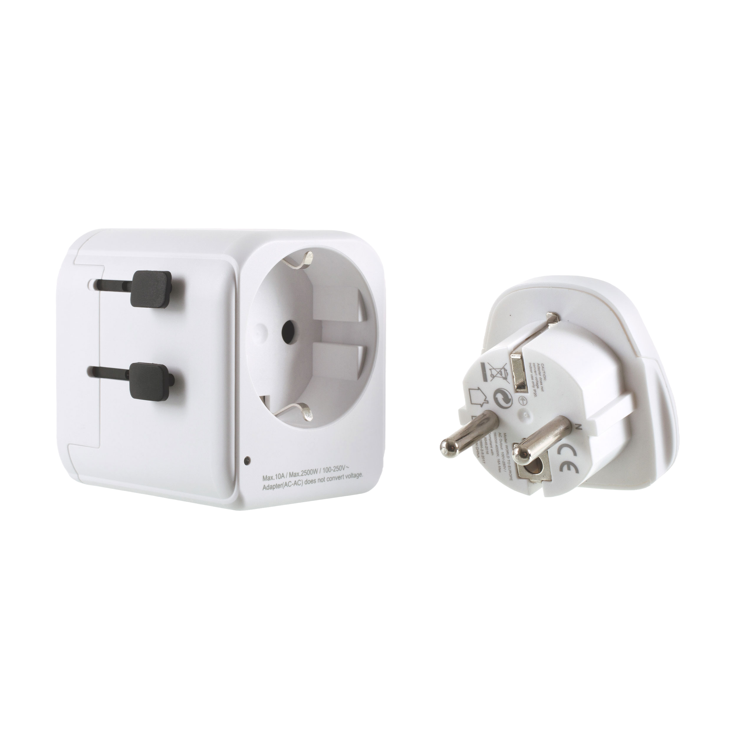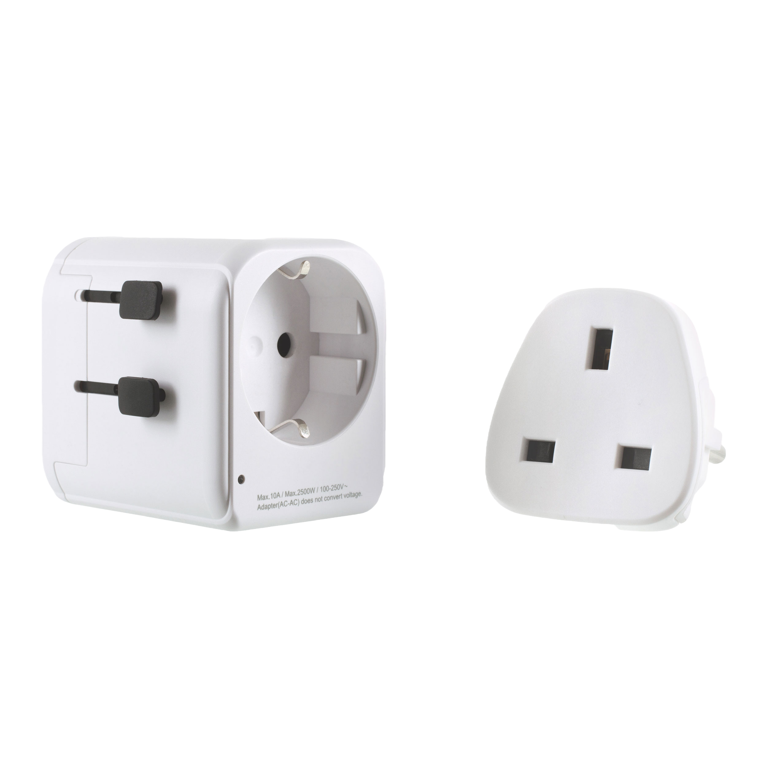 - Converts UK/EU plugs for use in power outlets worldwide