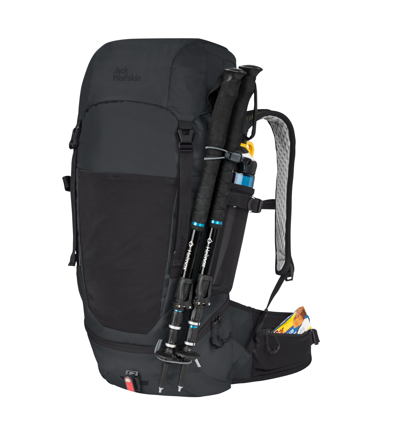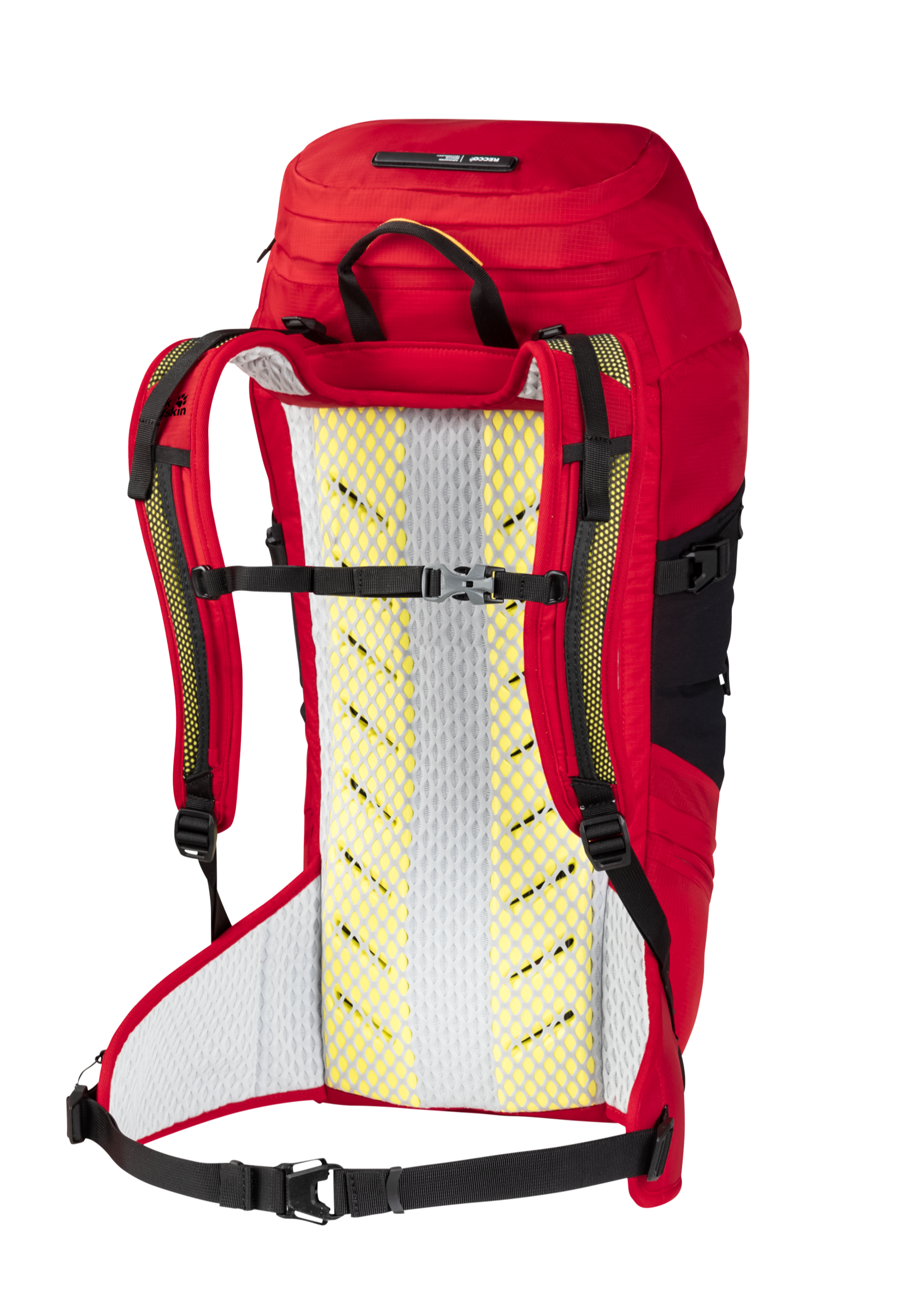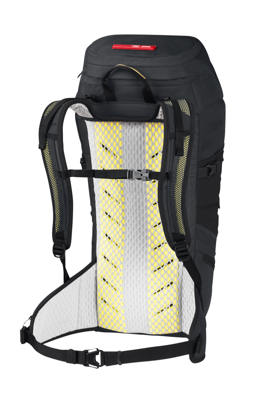 The pack features our lightweight and super comfortable AEROSHAPE back system. The central ventilation channel and the air permeable back padding cool your back as you move. The innovative one-piece construction has the additional advantage of keeping production waste to an absolute minimum. The mesh material is completely recycled, just like the main material and the lining.