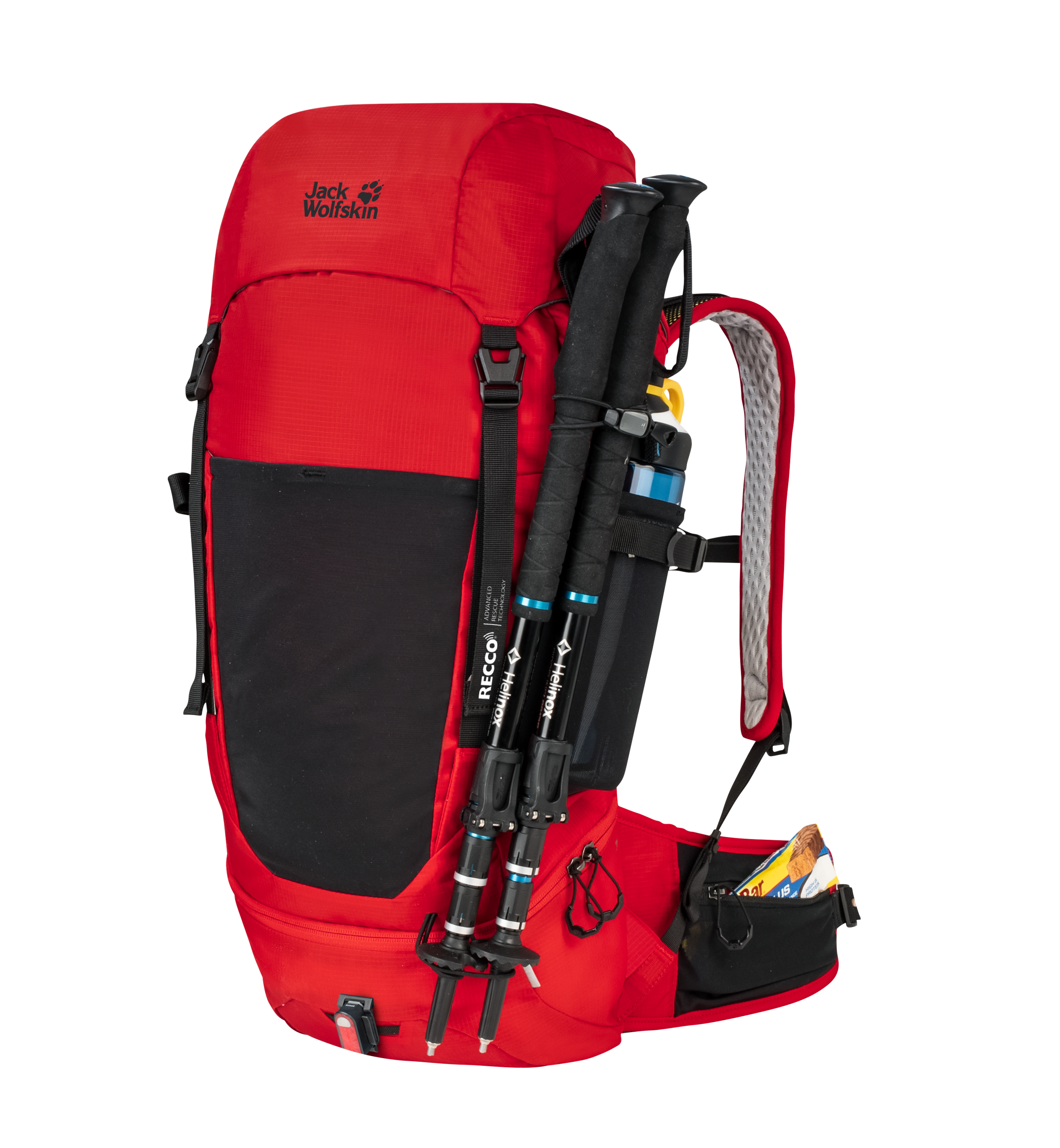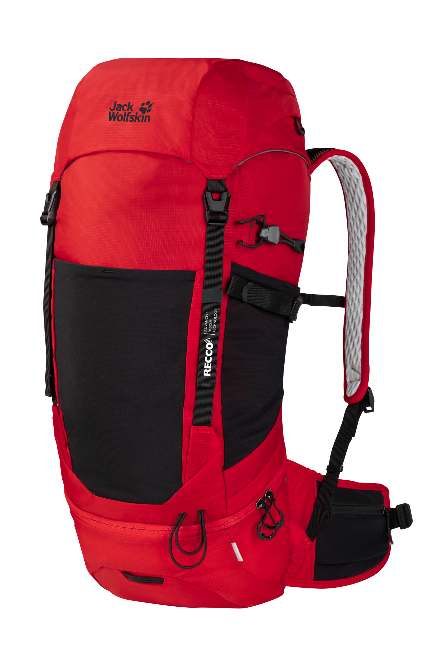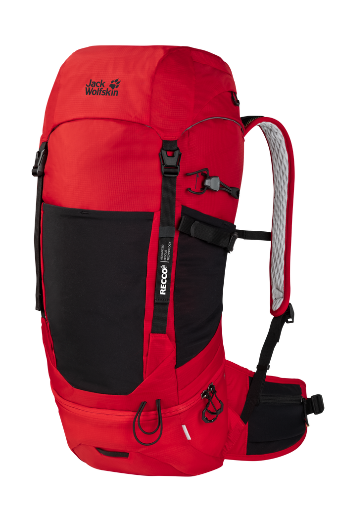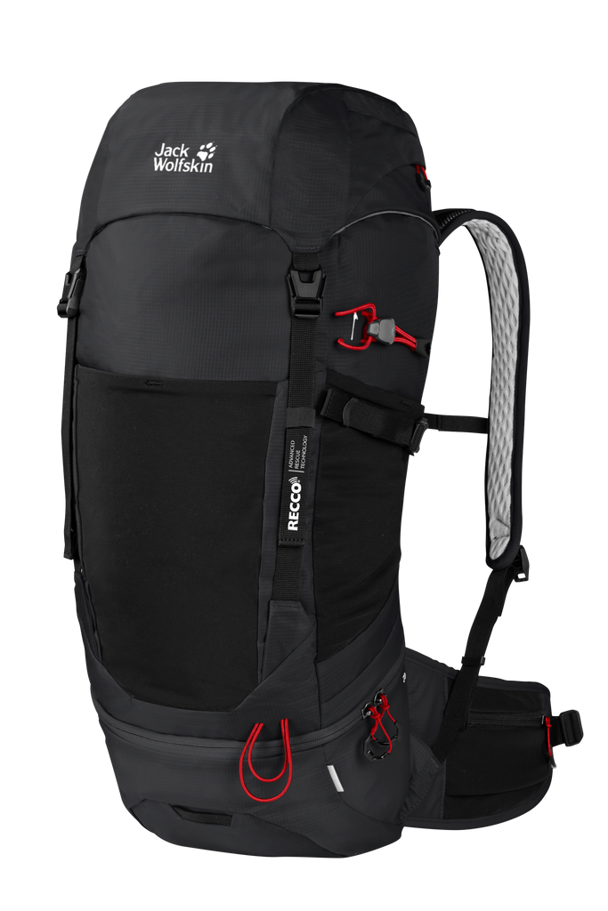 The roomy WOLFTRAIL 28 RECCO pack is made of recycled materials and is equipped with a RECCO tracking chip.